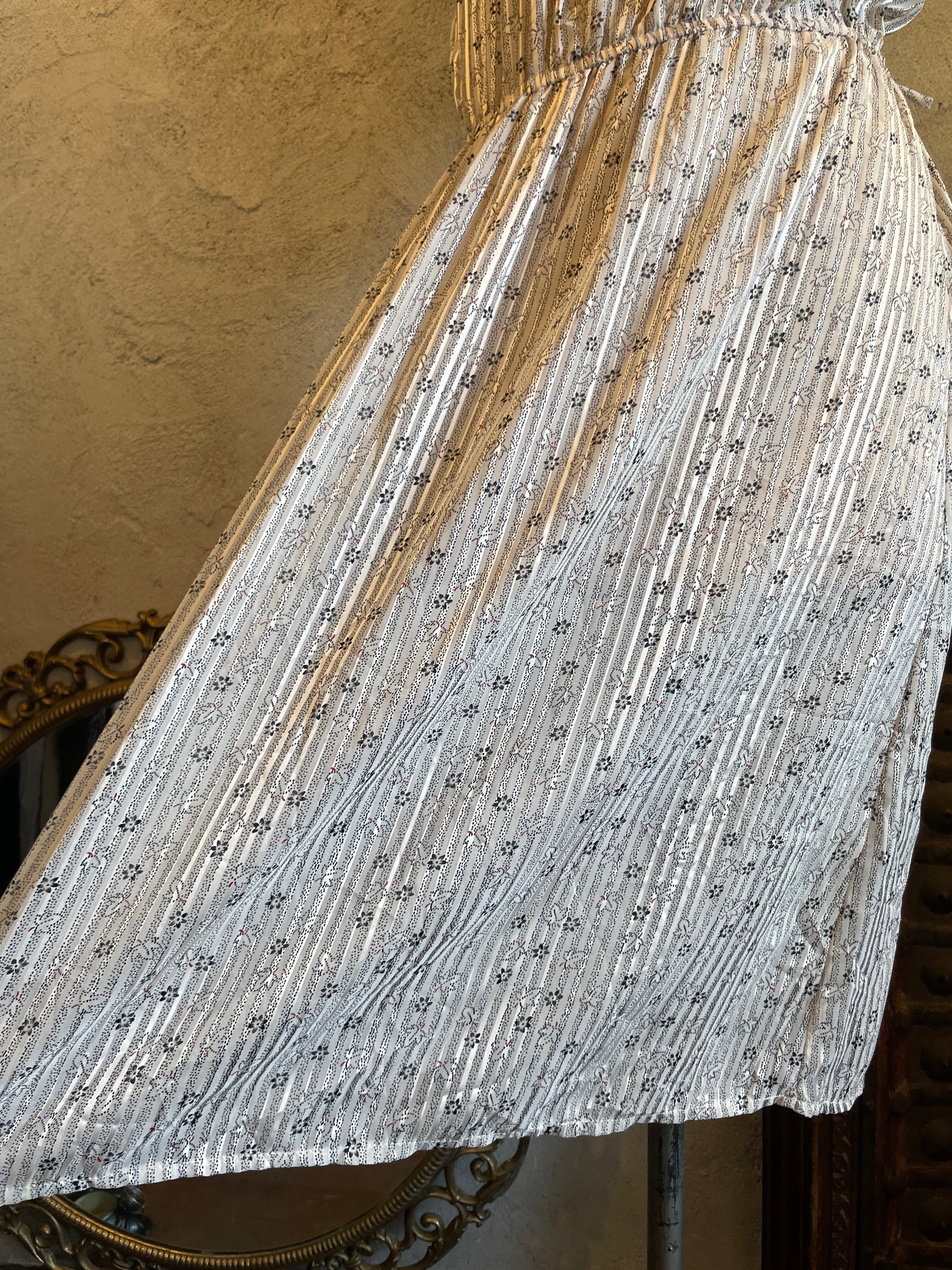 小さな葉っぱとお花とドットのストライプ フリル袖 シアーワンピース ヴィンテージ 古着