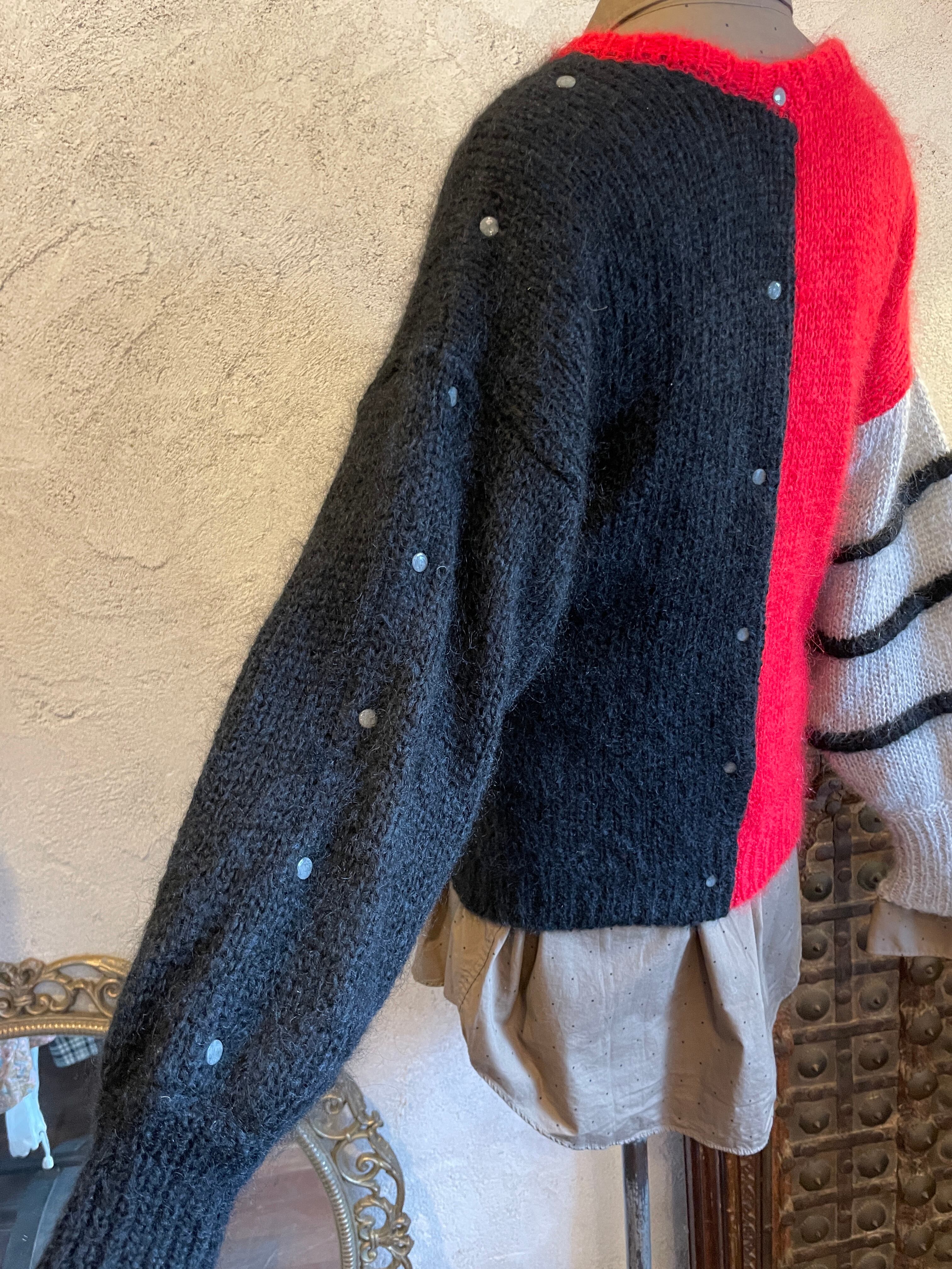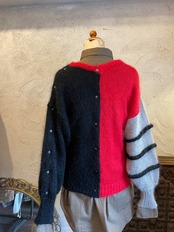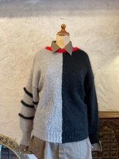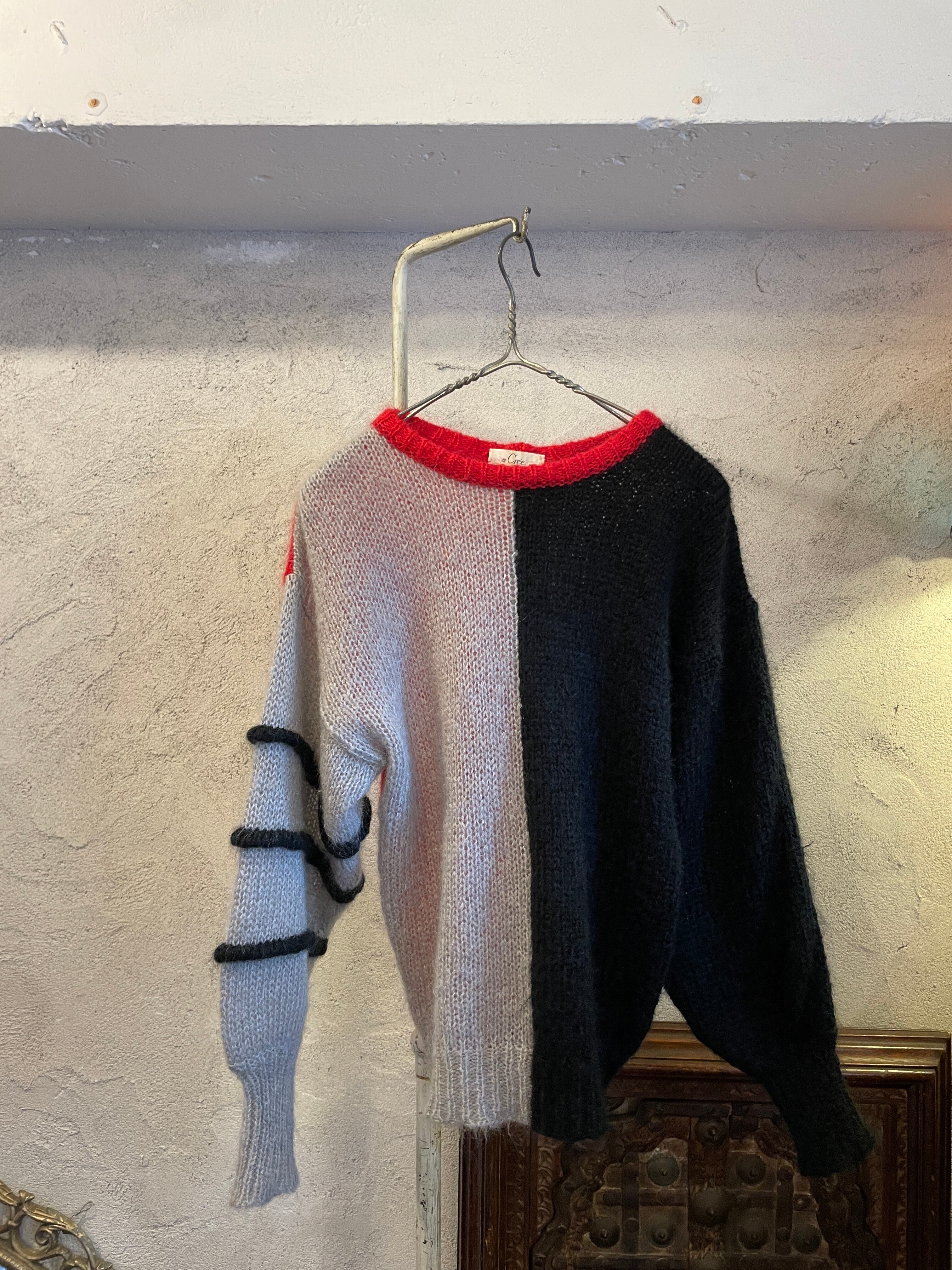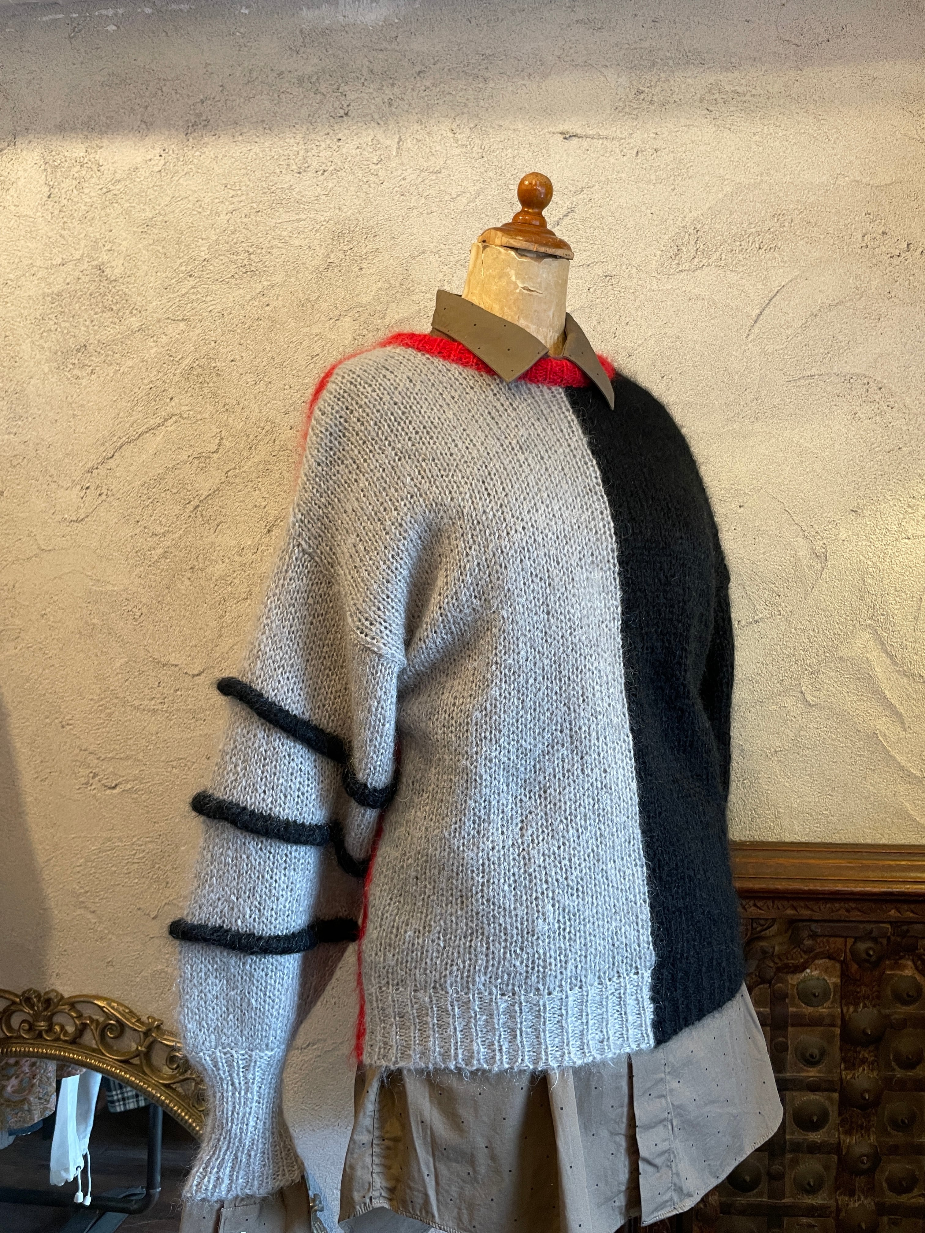 デザインニット セーター グレー×ブラック×レッド ヴィンテージ 古着