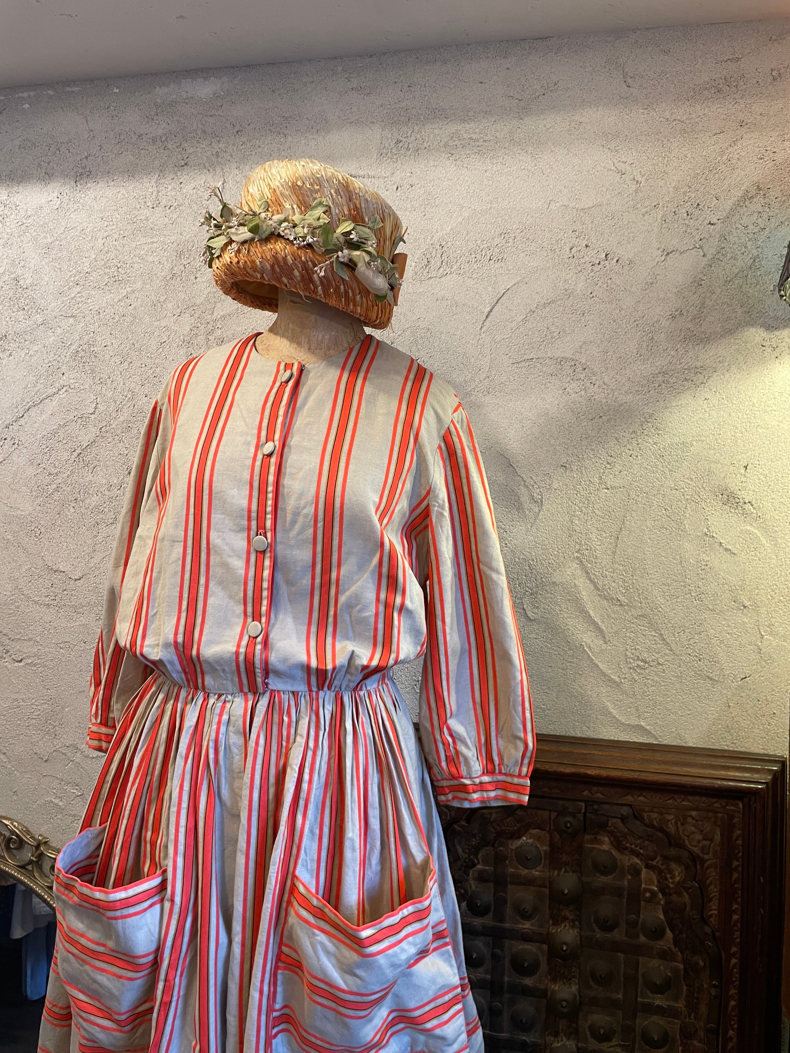 70's オレンジストライプ デザインワンピース ヴィンテージ 古着