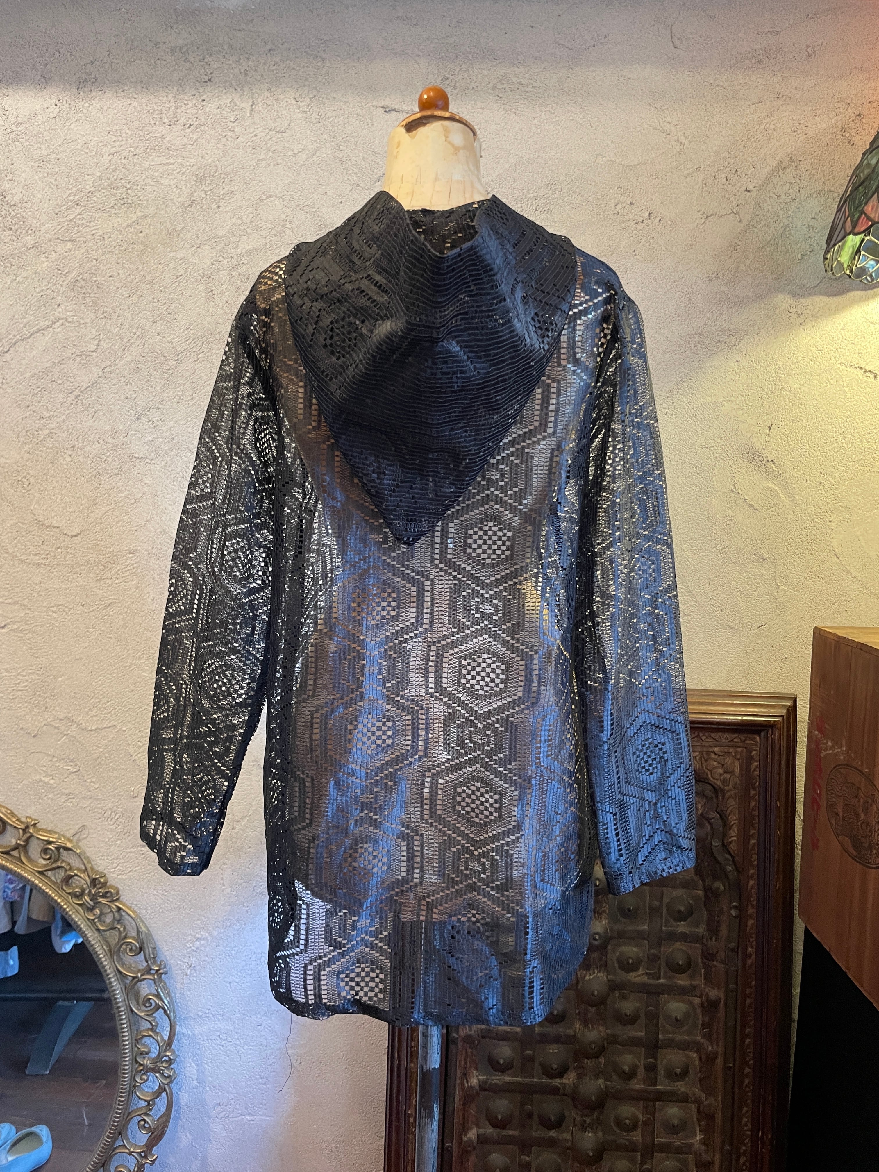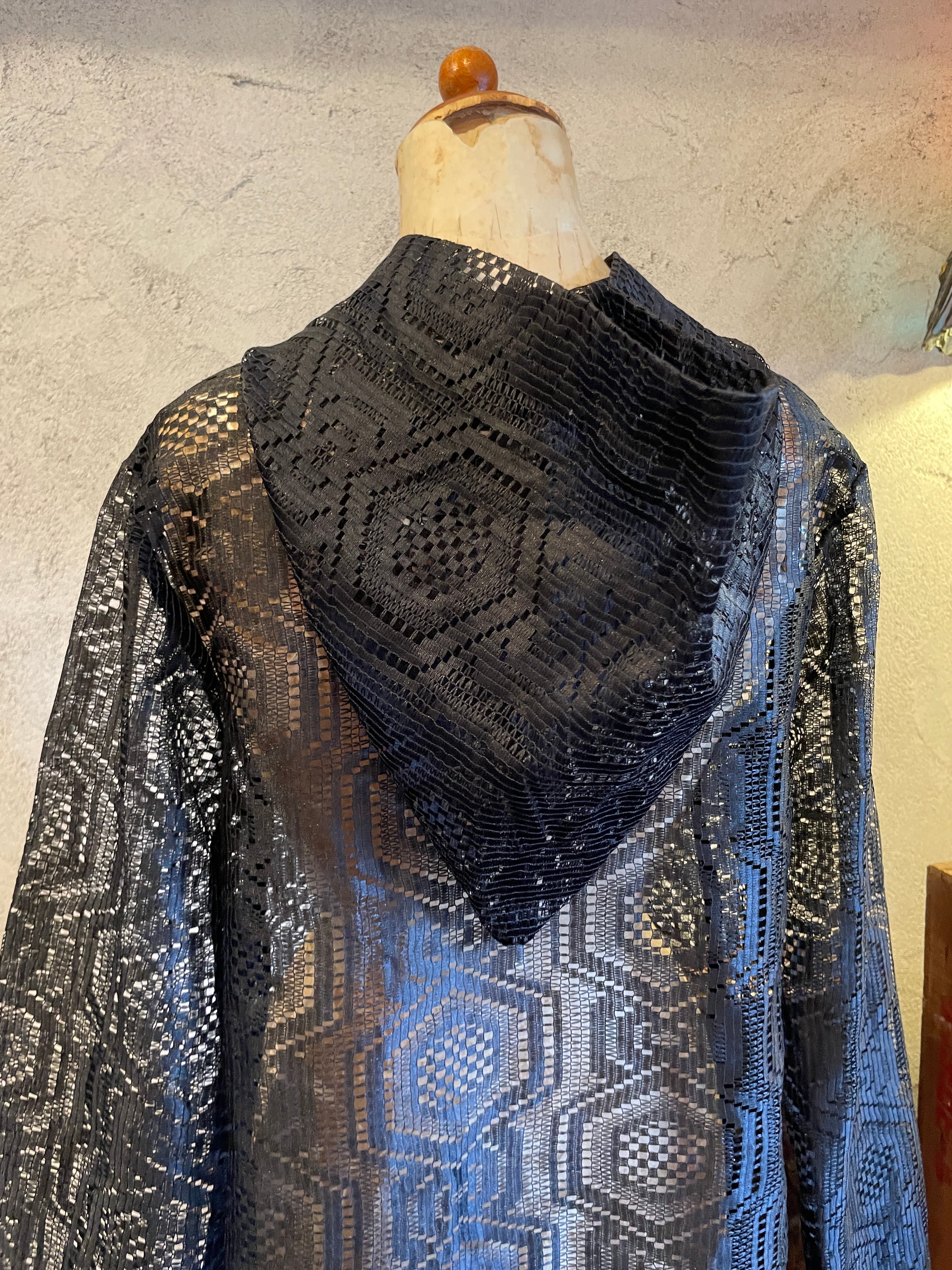 ブラックレース フード カーディガン トップス ヴィンテージ 古着