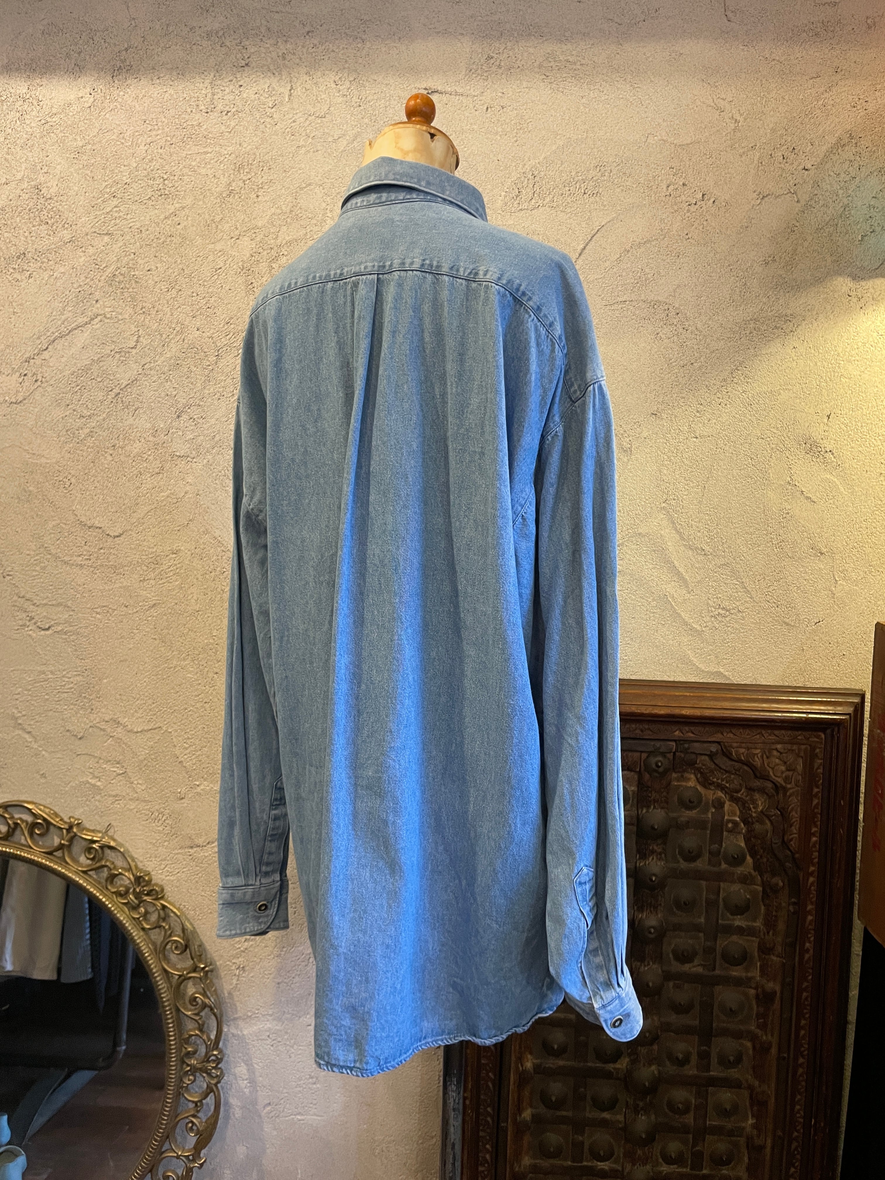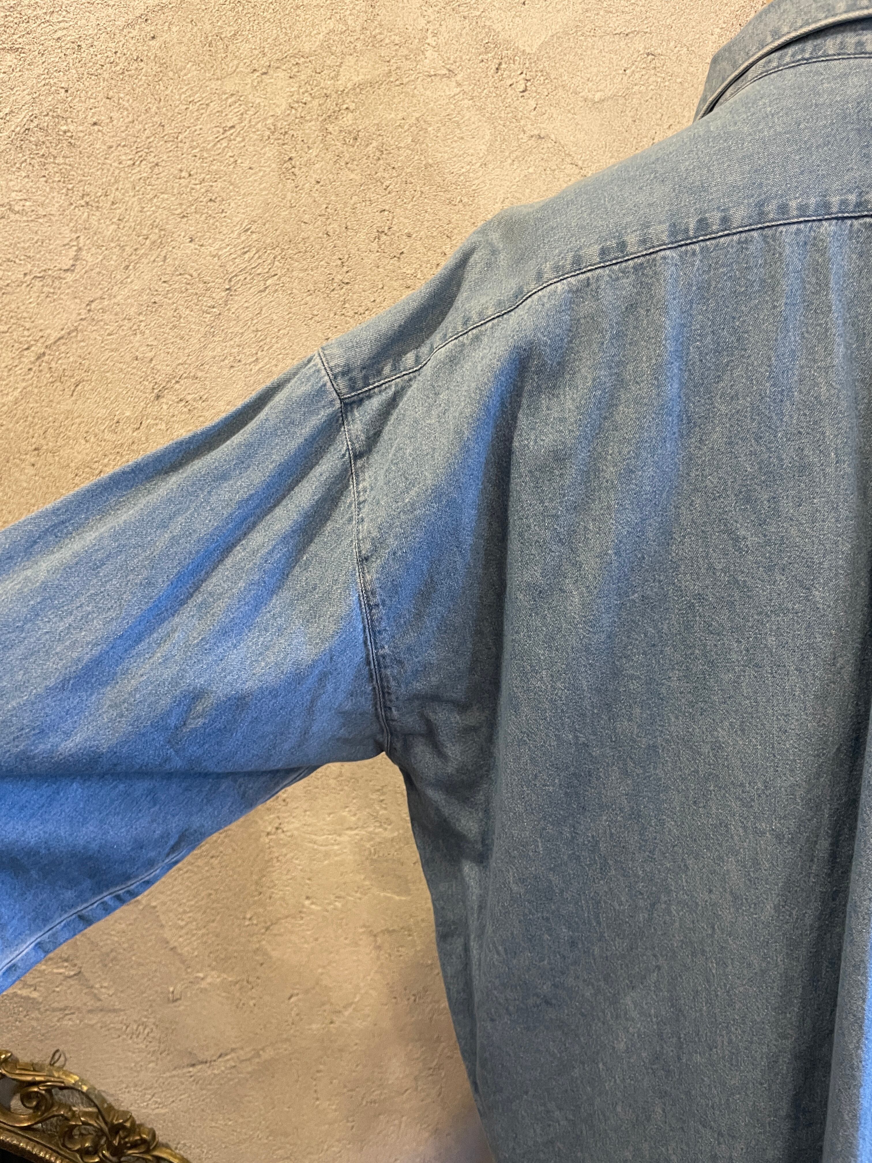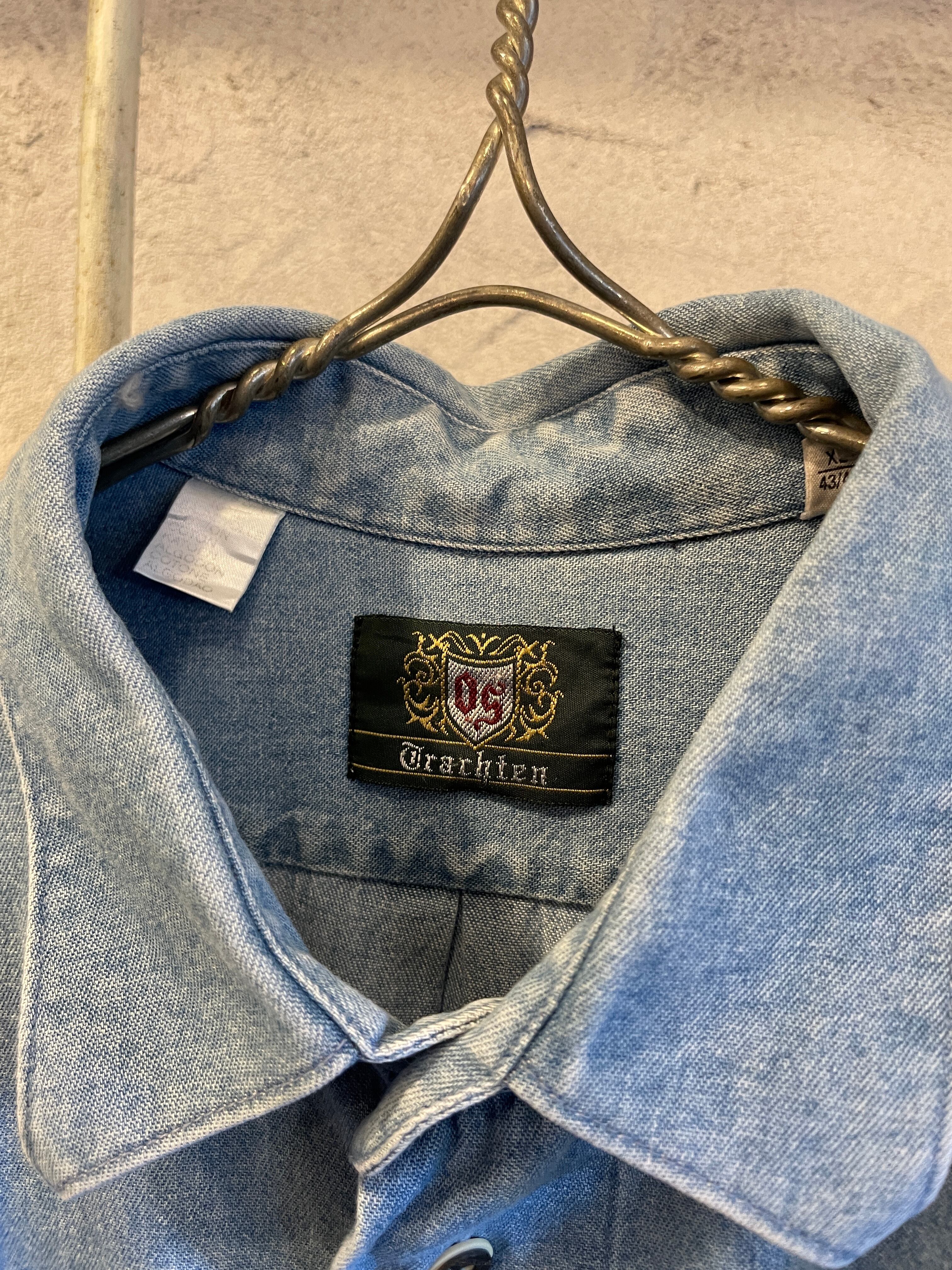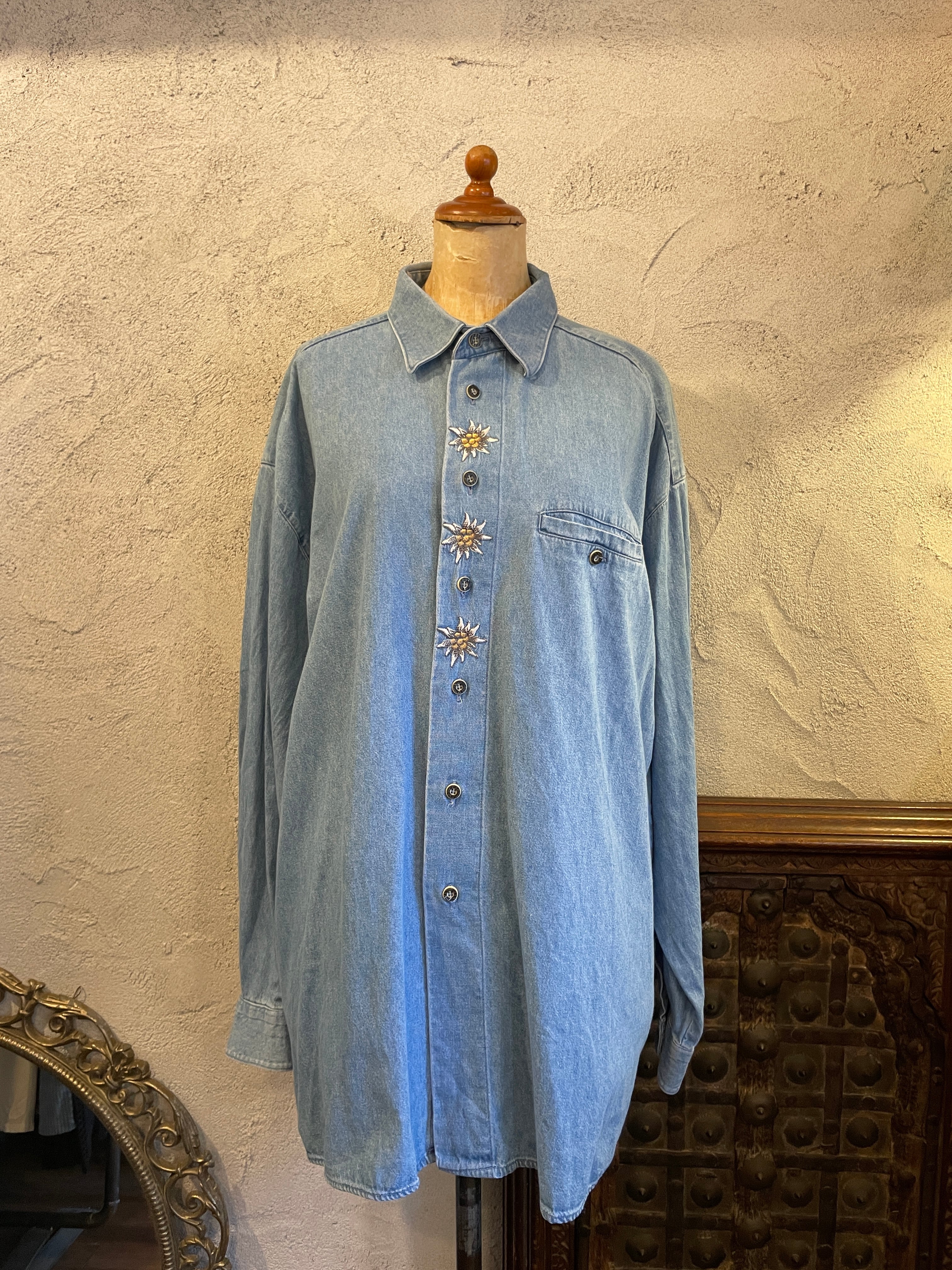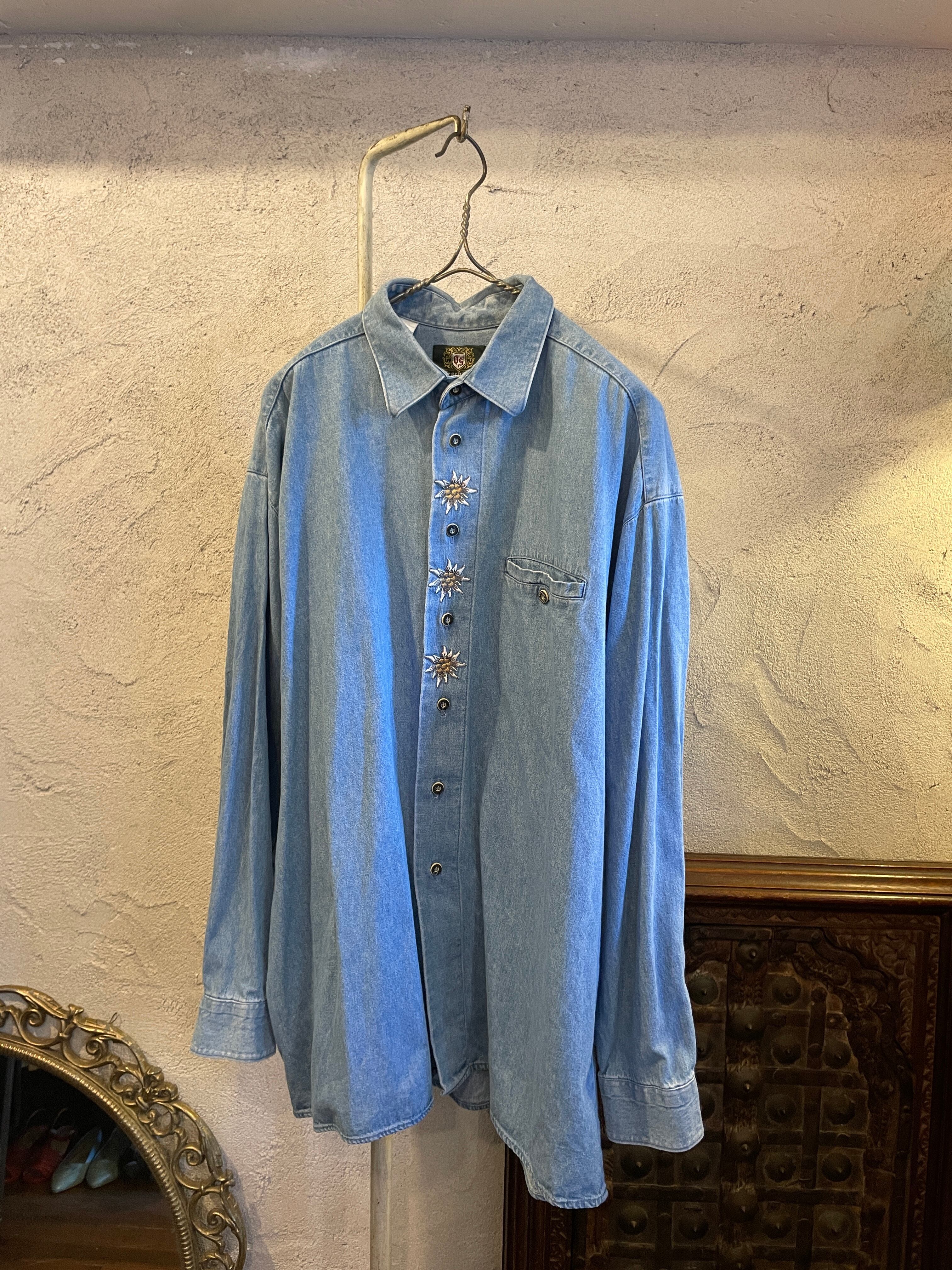 デニム チロルシャツ ひまわり刺繍 ヴィンテージ 古着