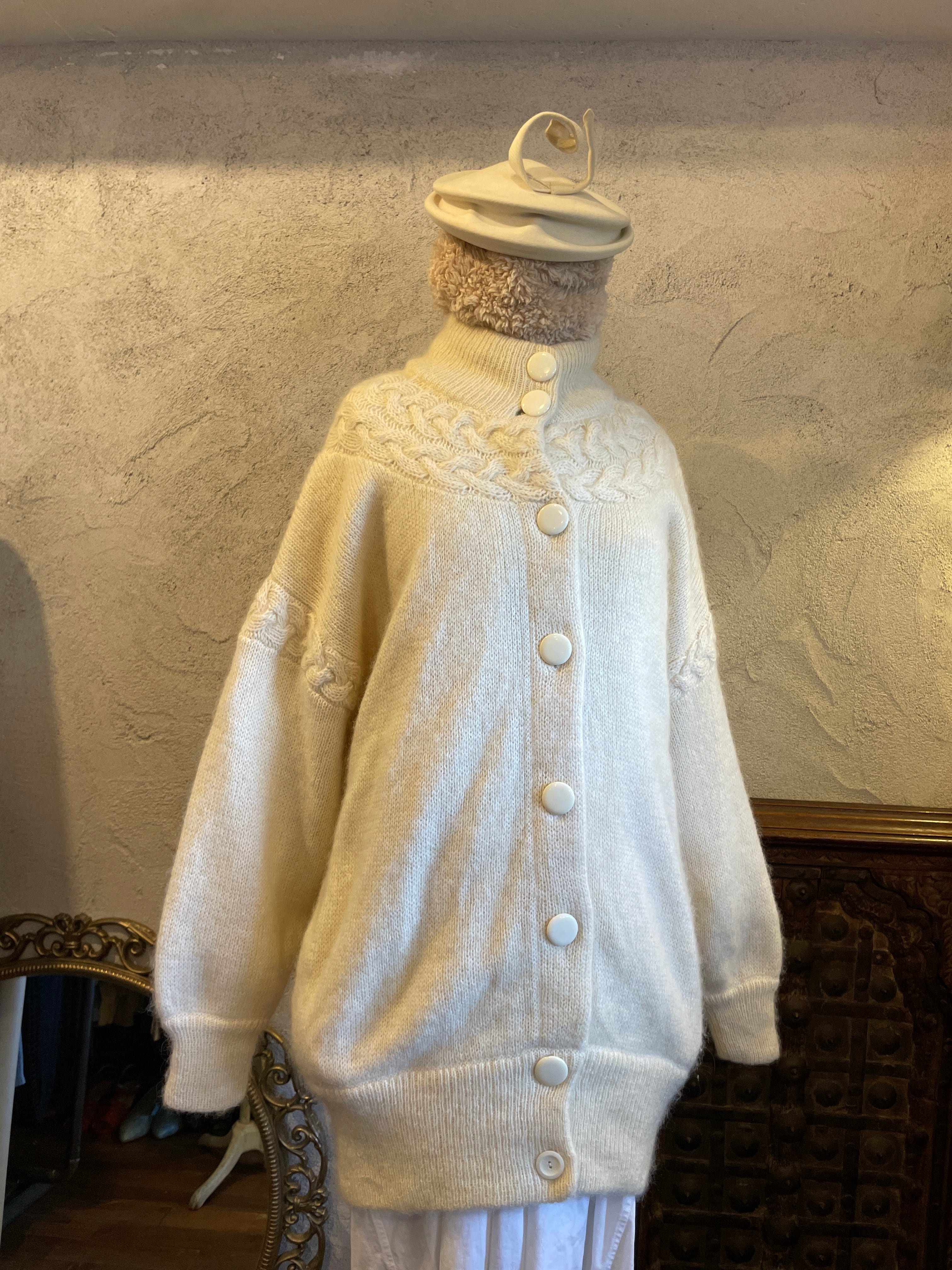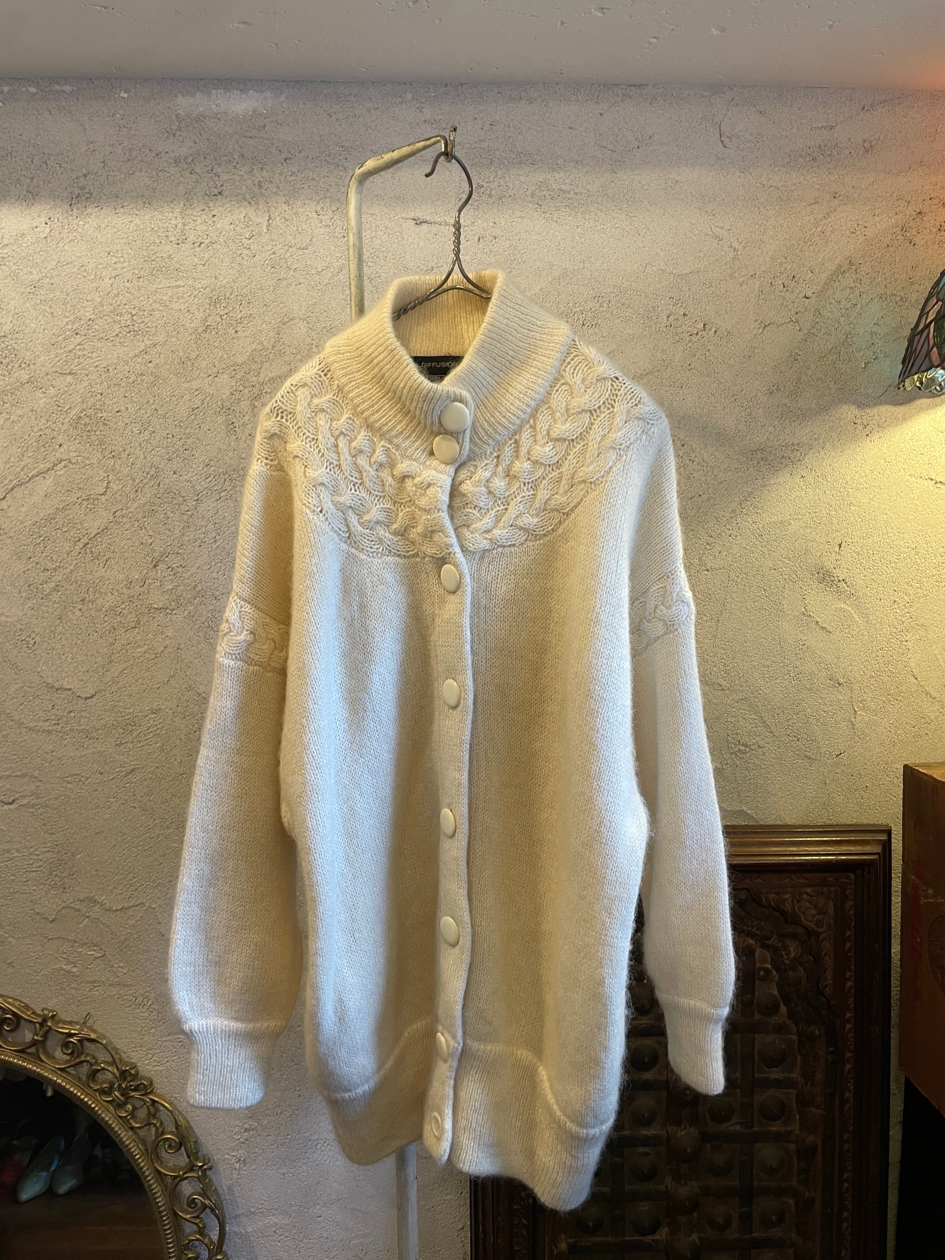 モヘア ホワイトニット カーディガン ヴィンテージ 古着