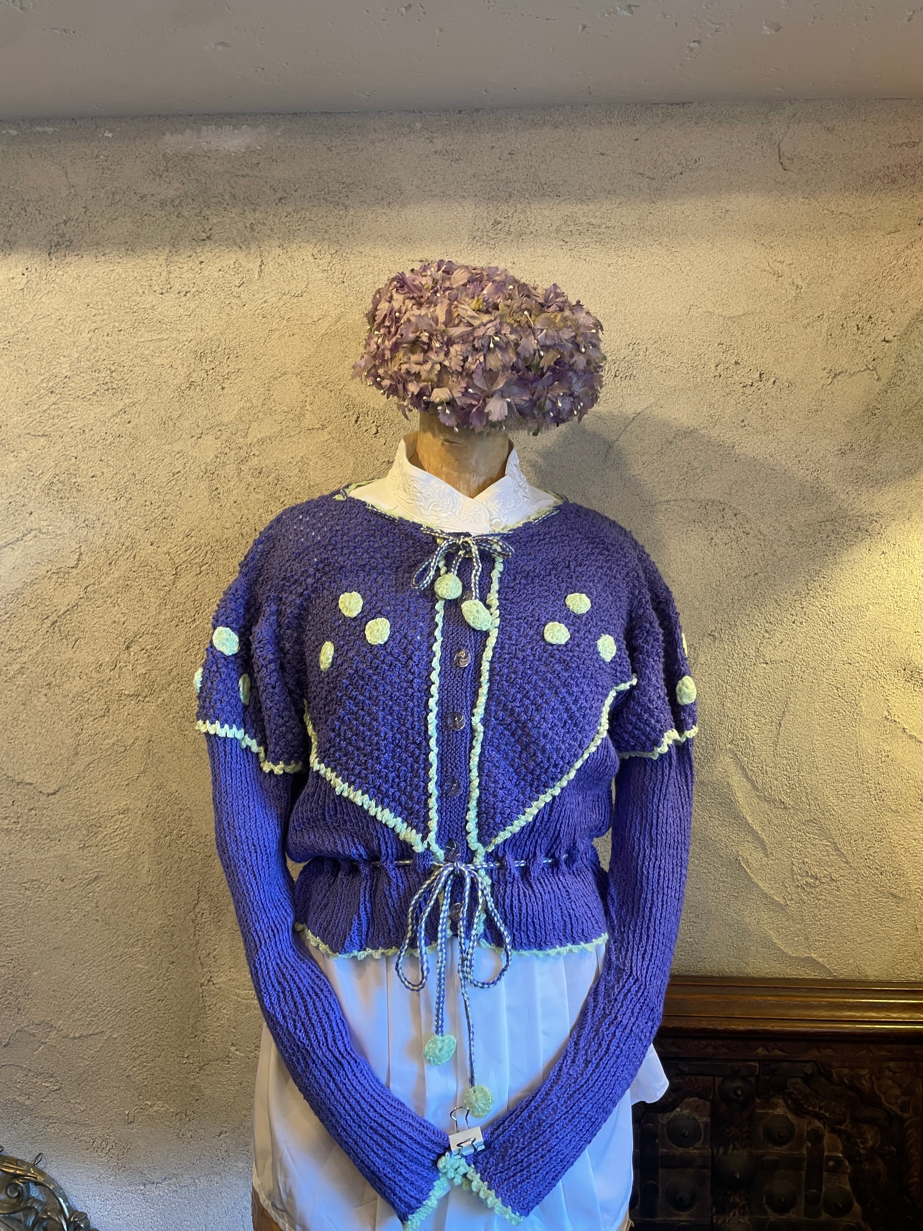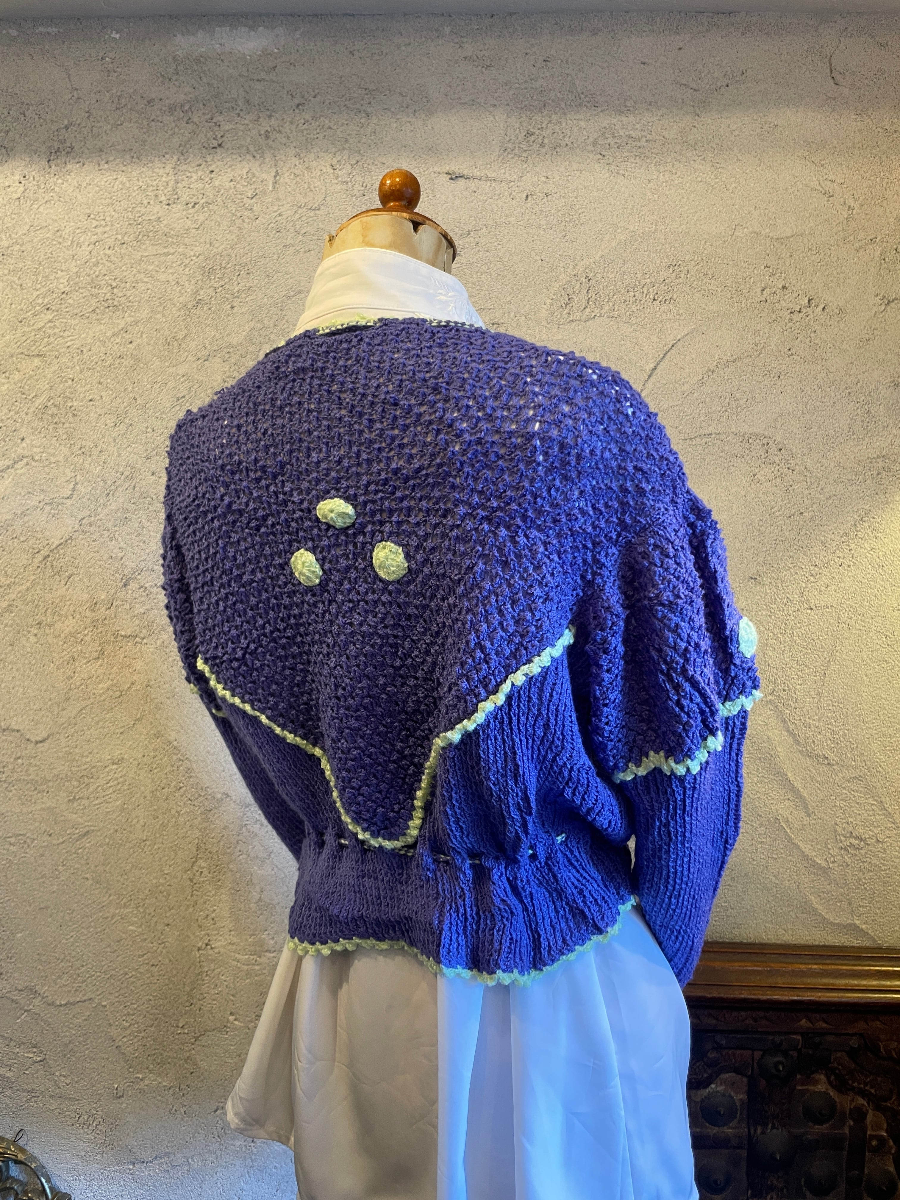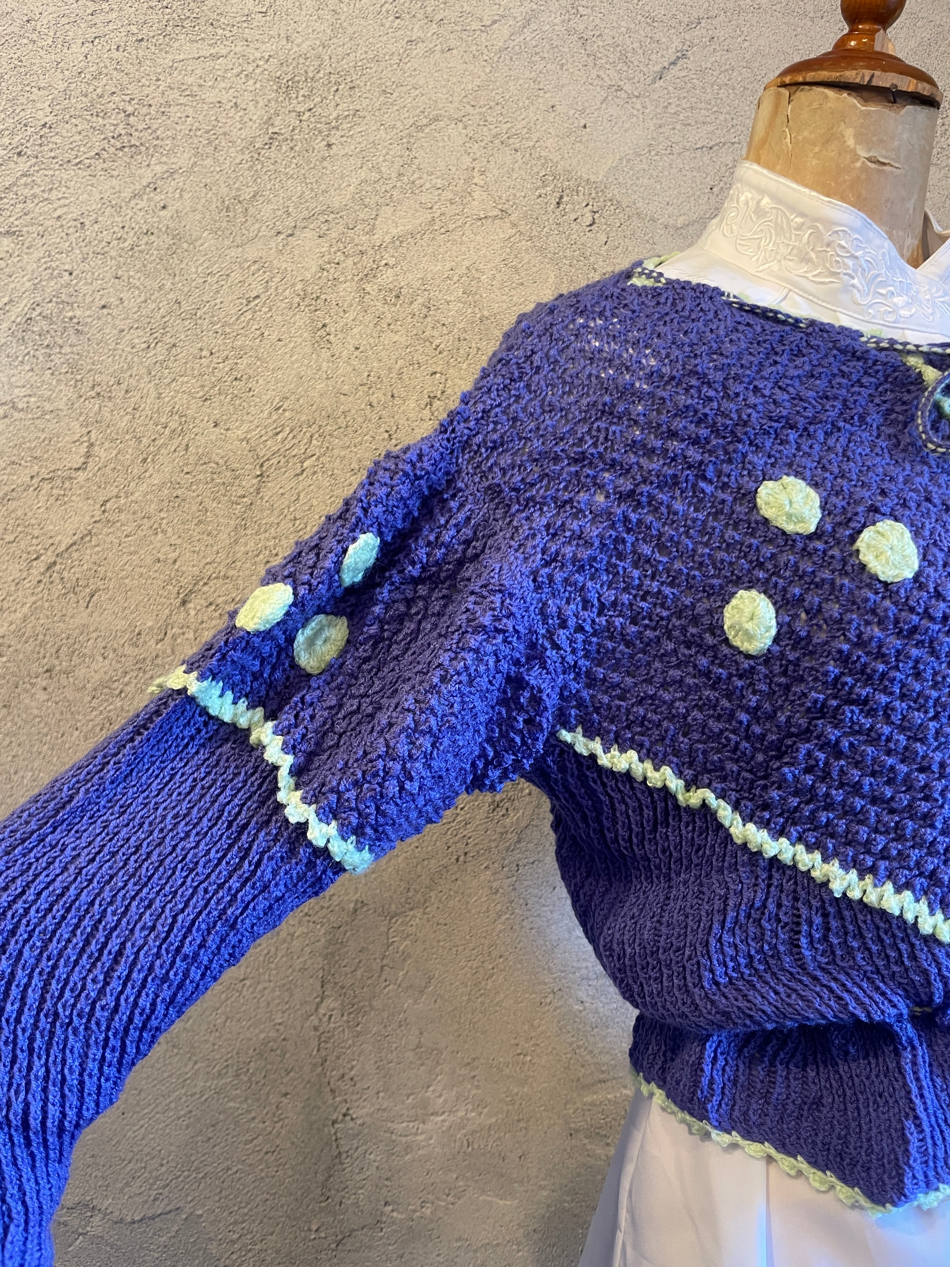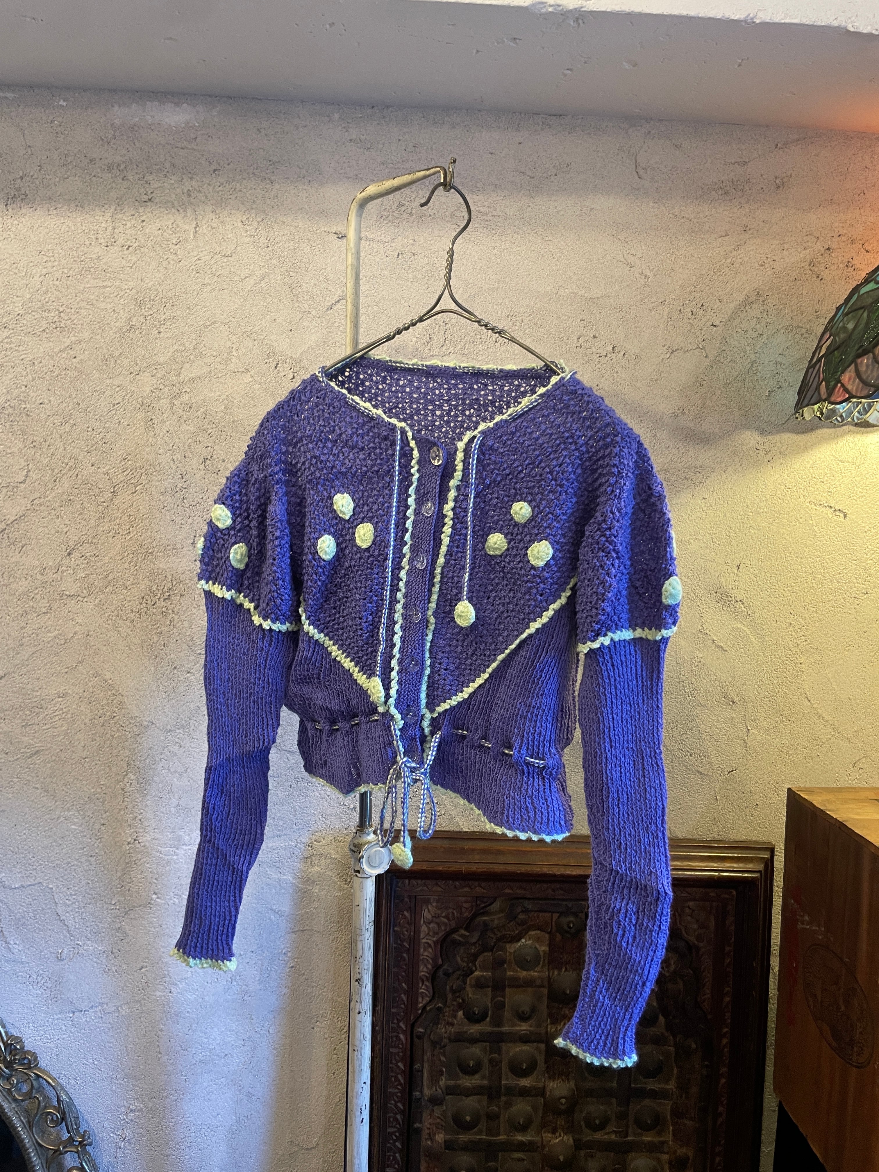 ポンポン付 デザインカーディガン ニット ヴィンテージ 古着