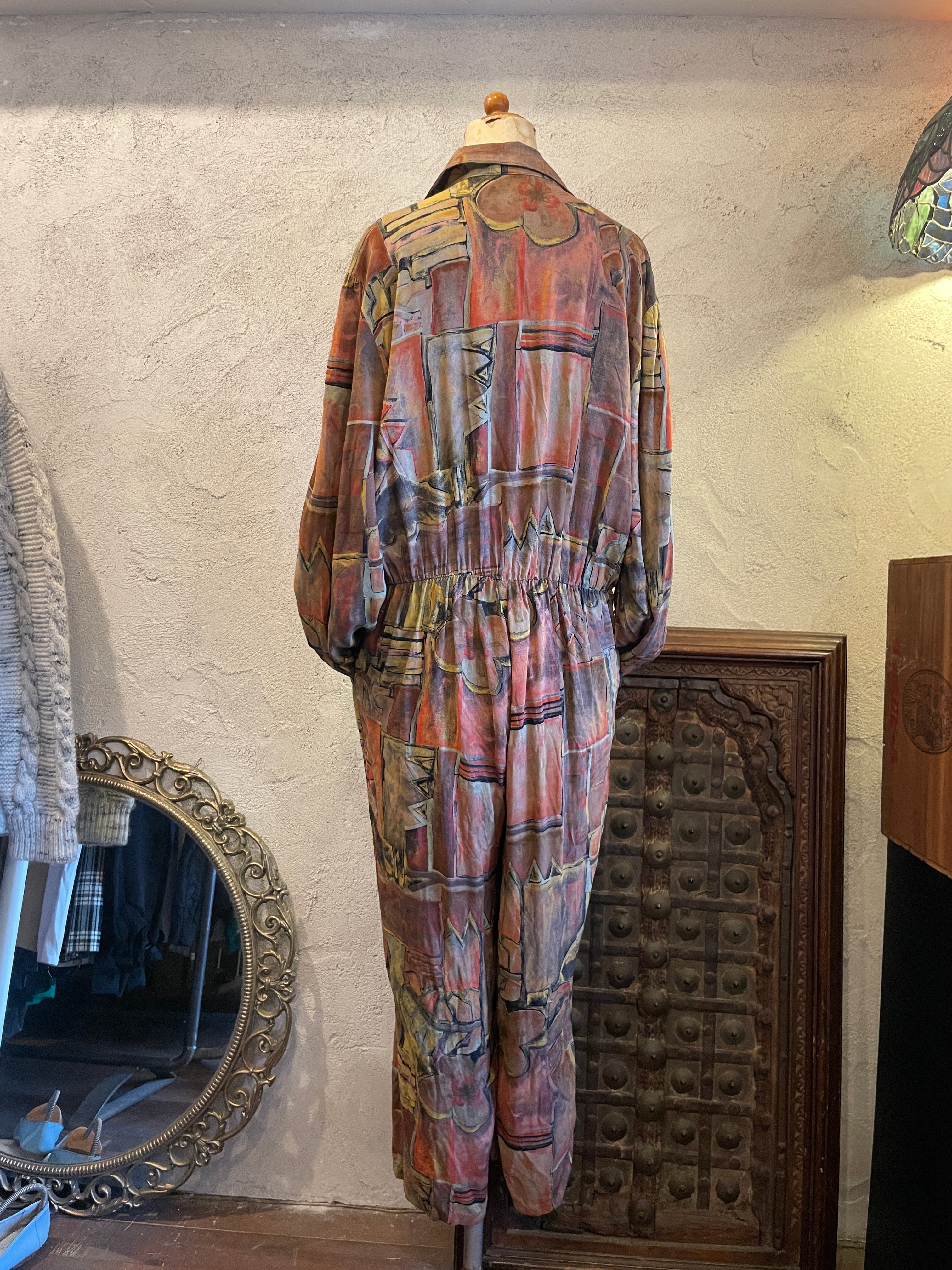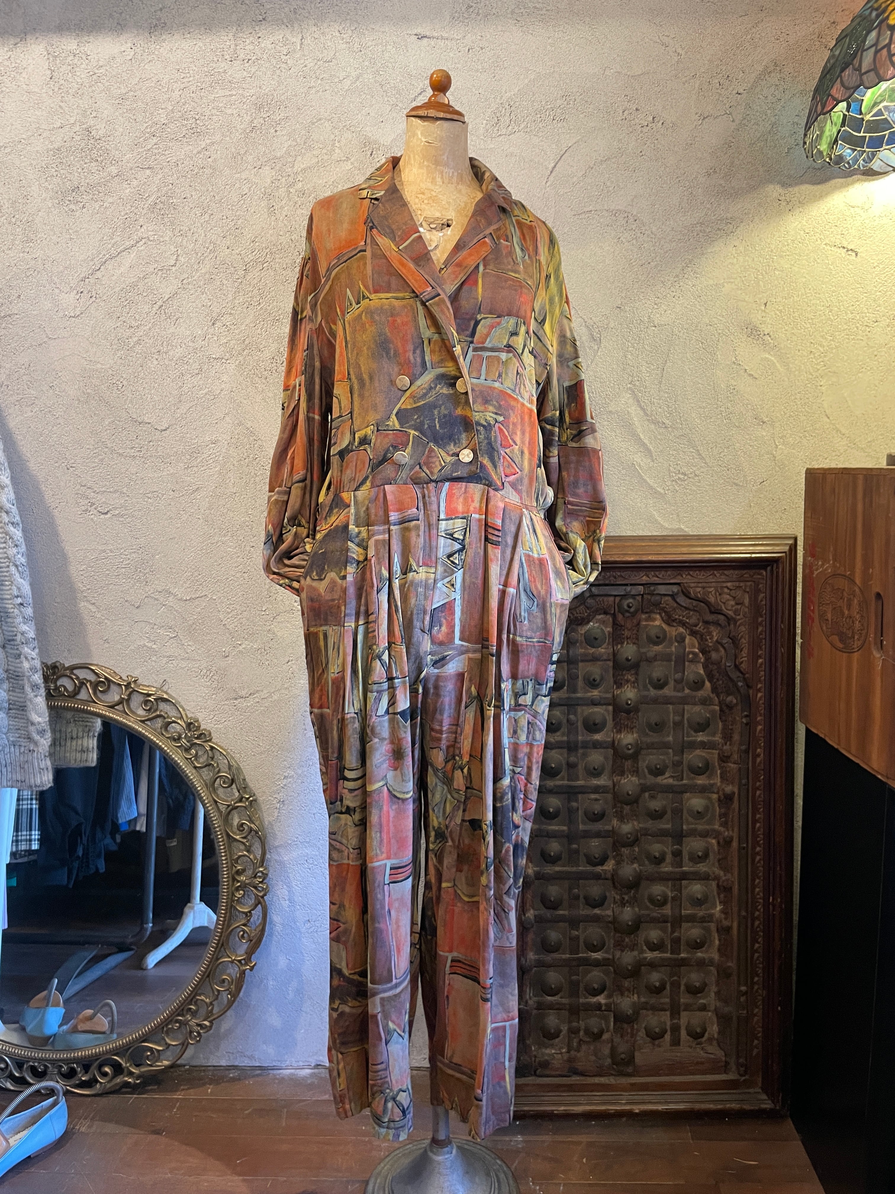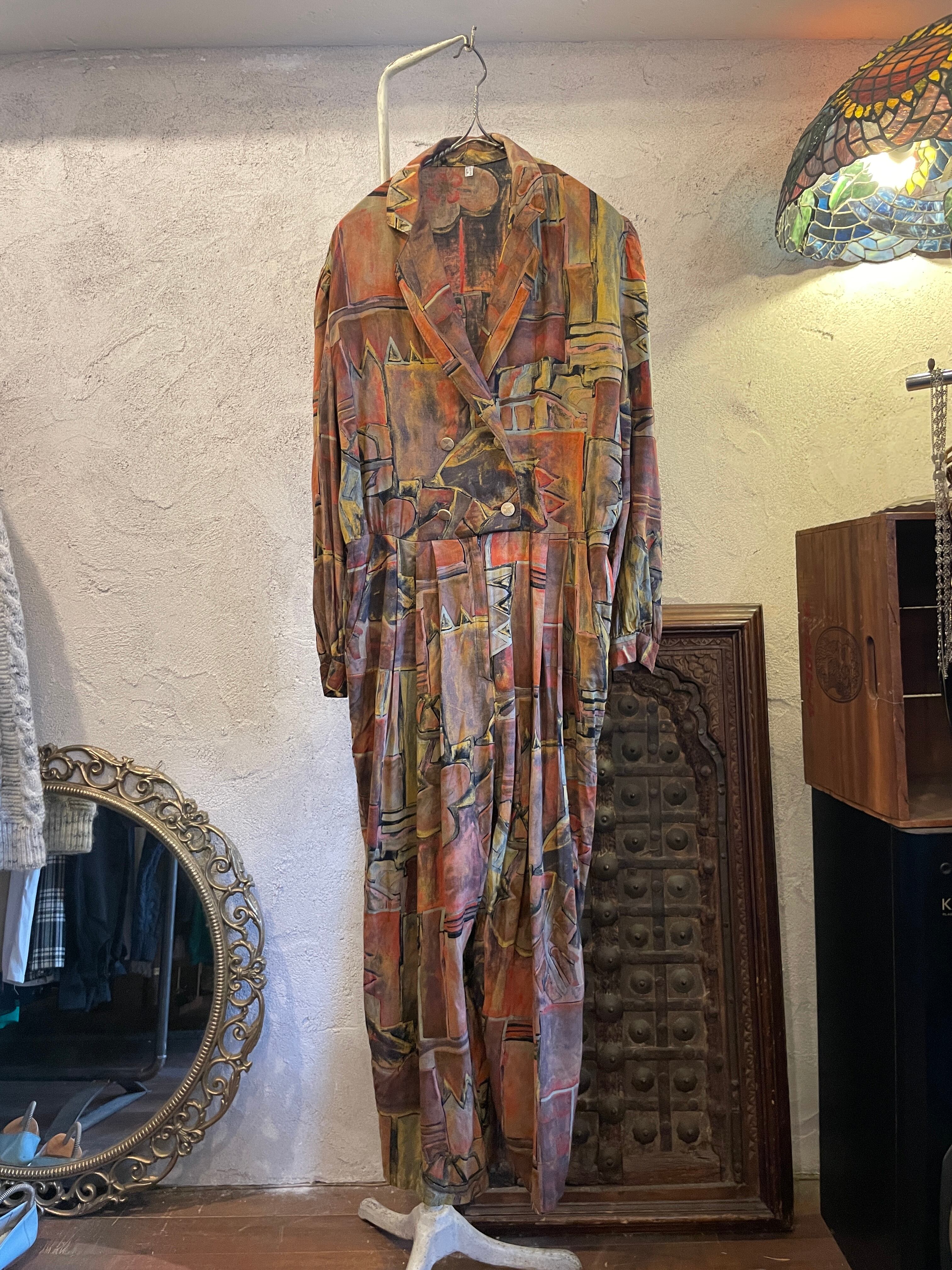 総柄 抽象柄 ジャンプスーツ ヴィンテージ 古着