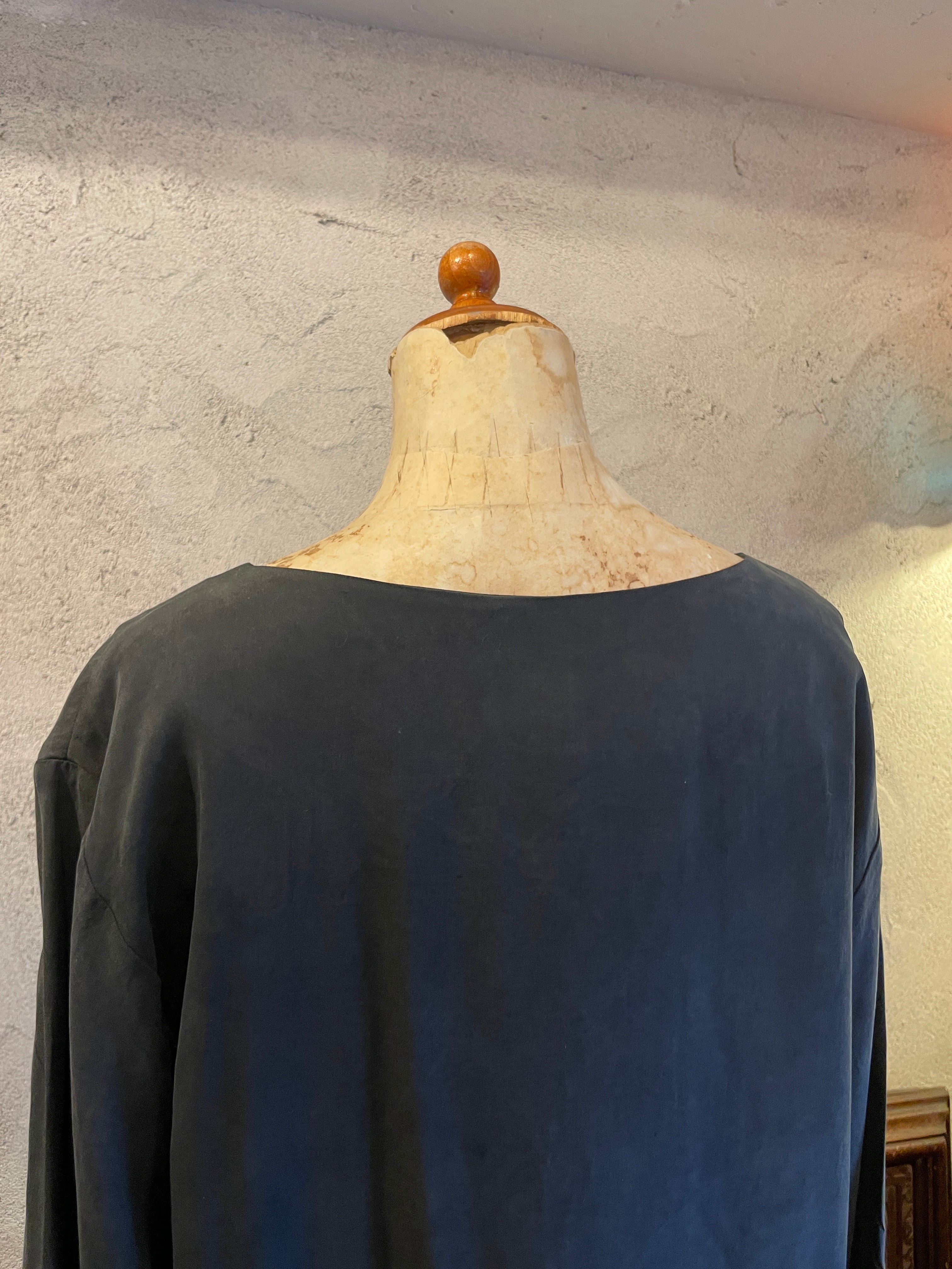 シルク ブラック ワンピース ゴールドボタン ヴィンテージ 古着