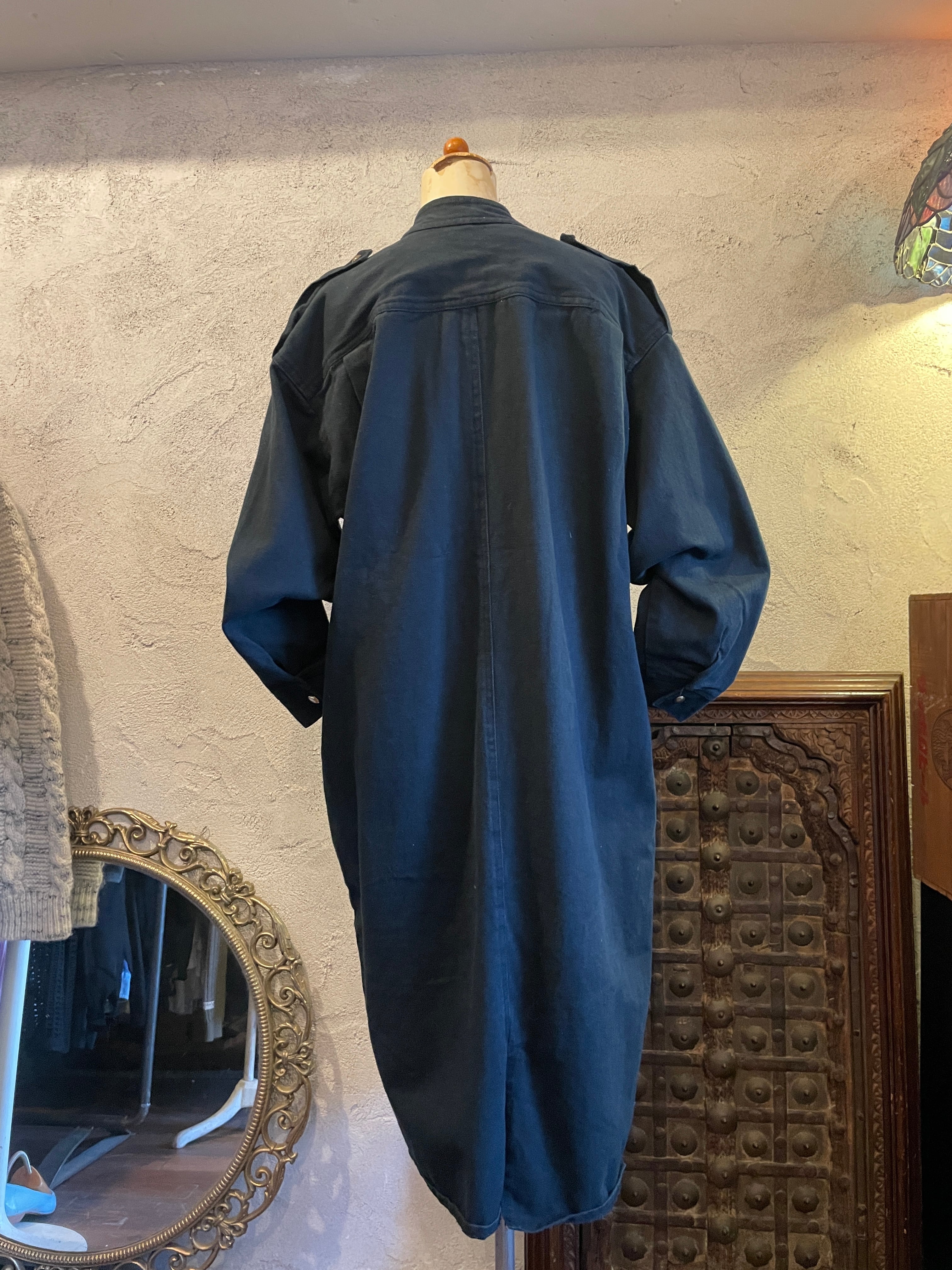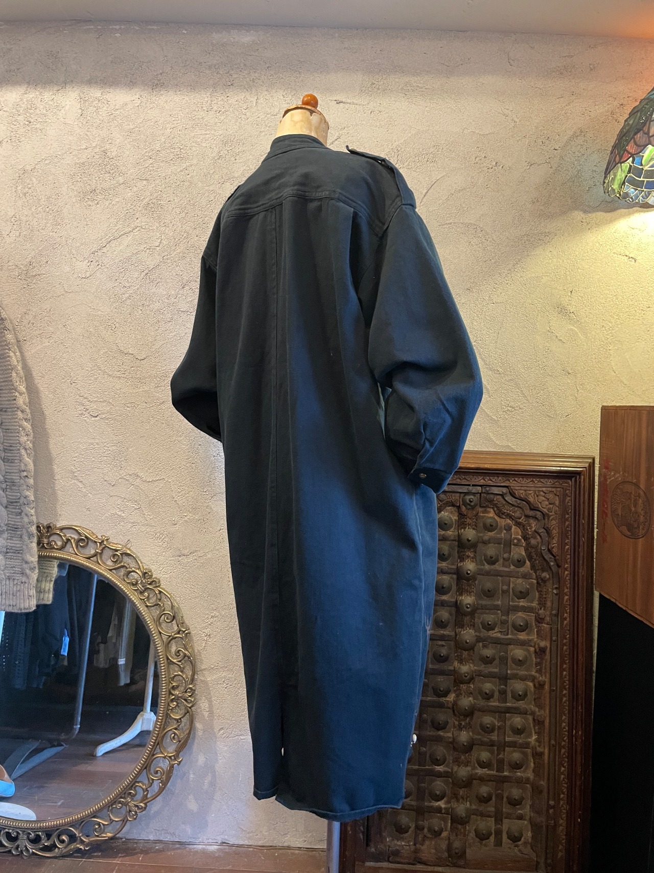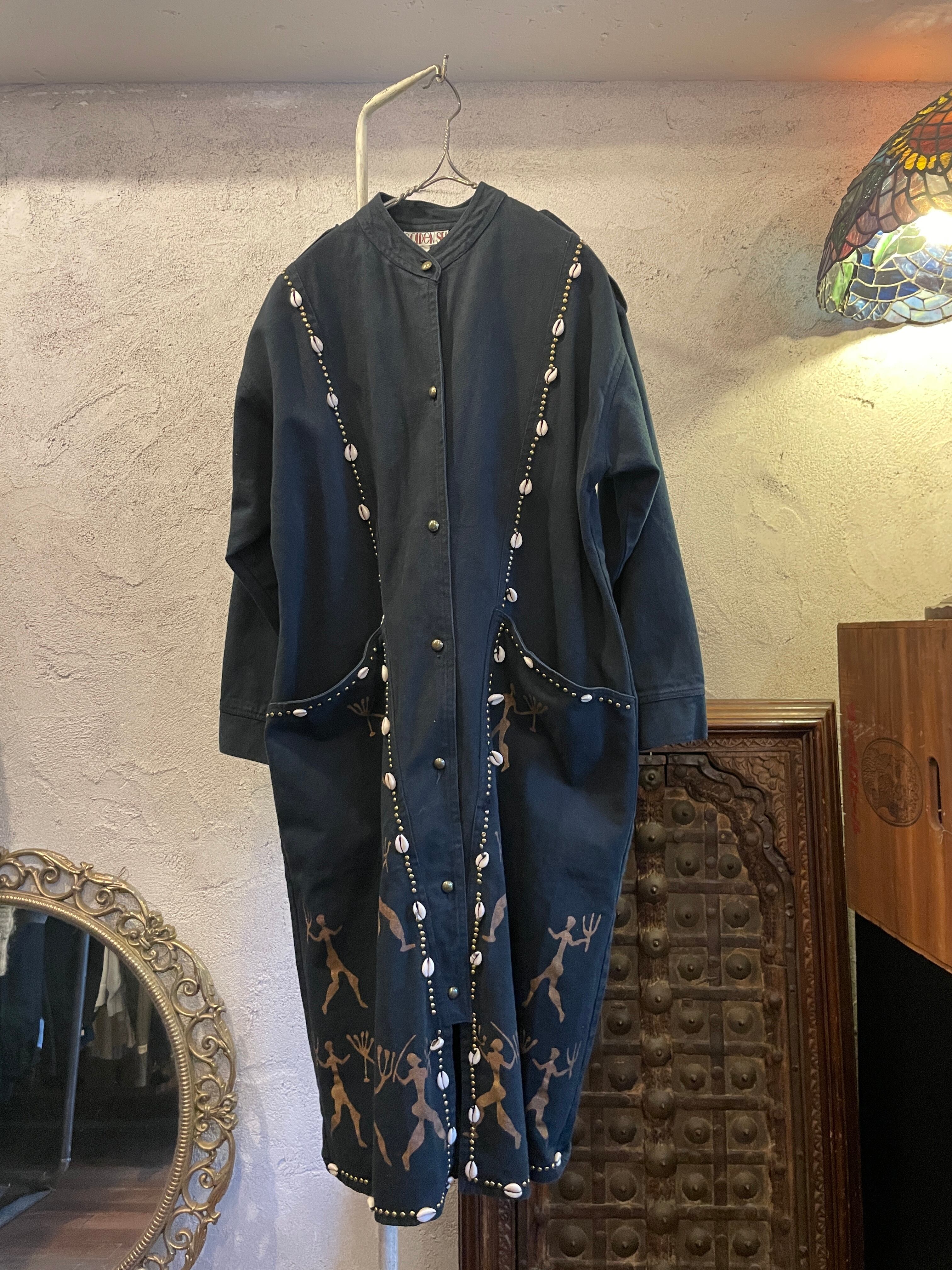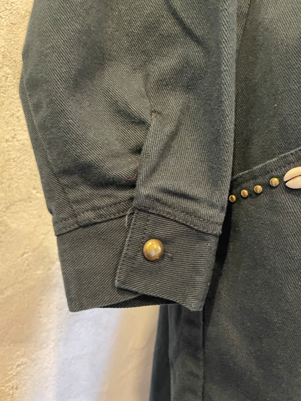 貝殻デザイン ブラックデニム ロングコート ヴィンテージ 古着