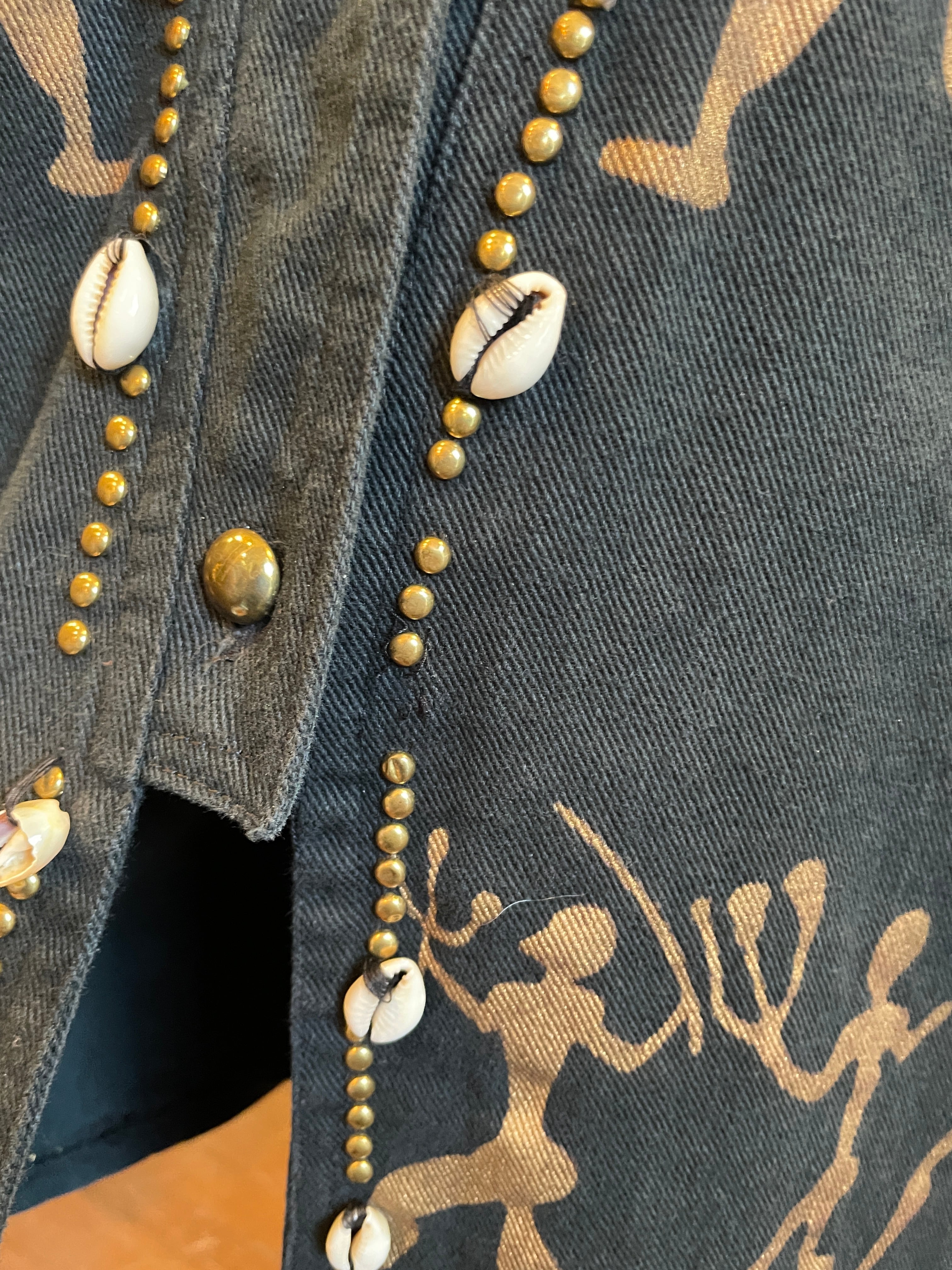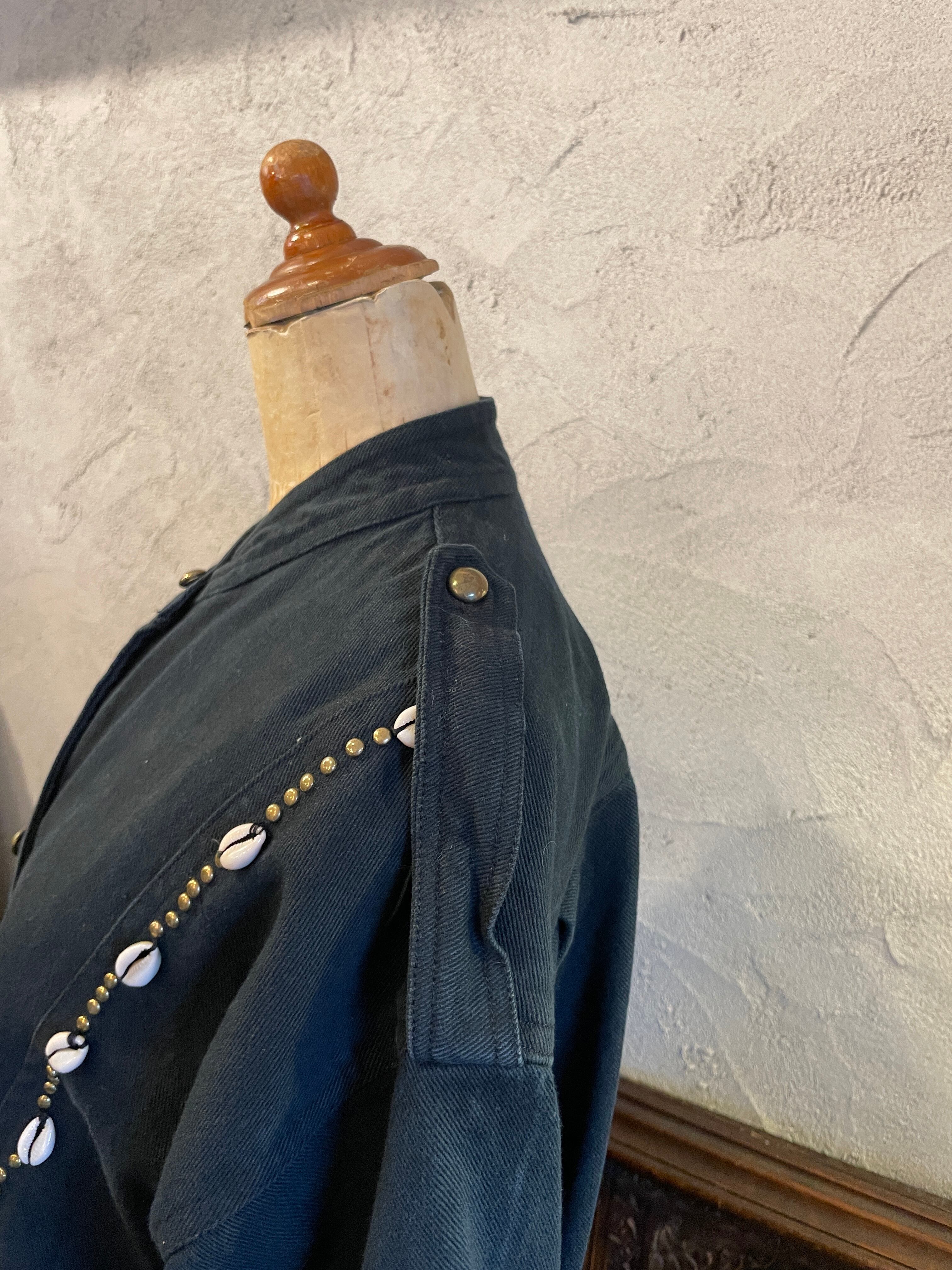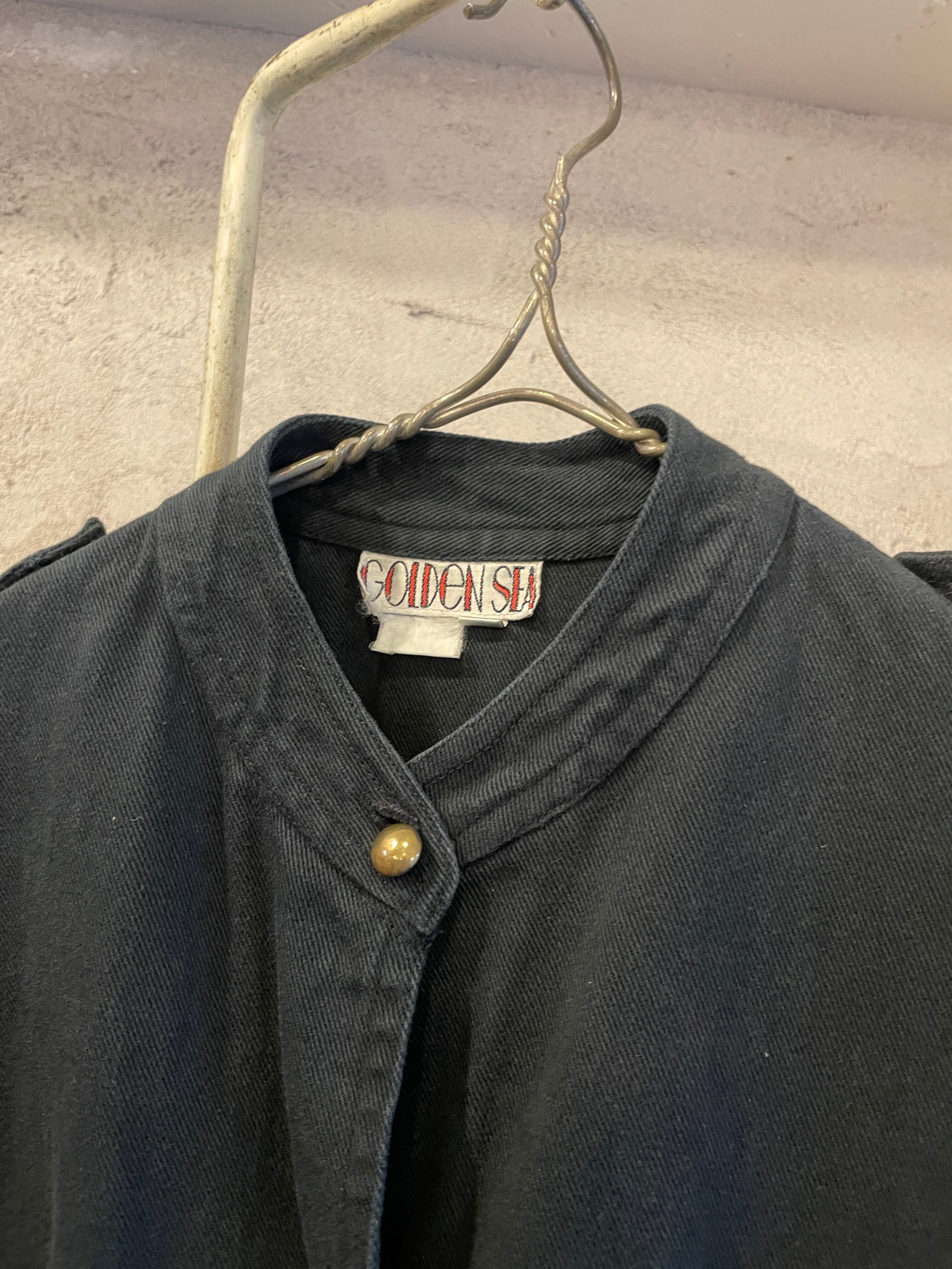 貝殻デザイン ブラックデニム ロングコート ヴィンテージ 古着
