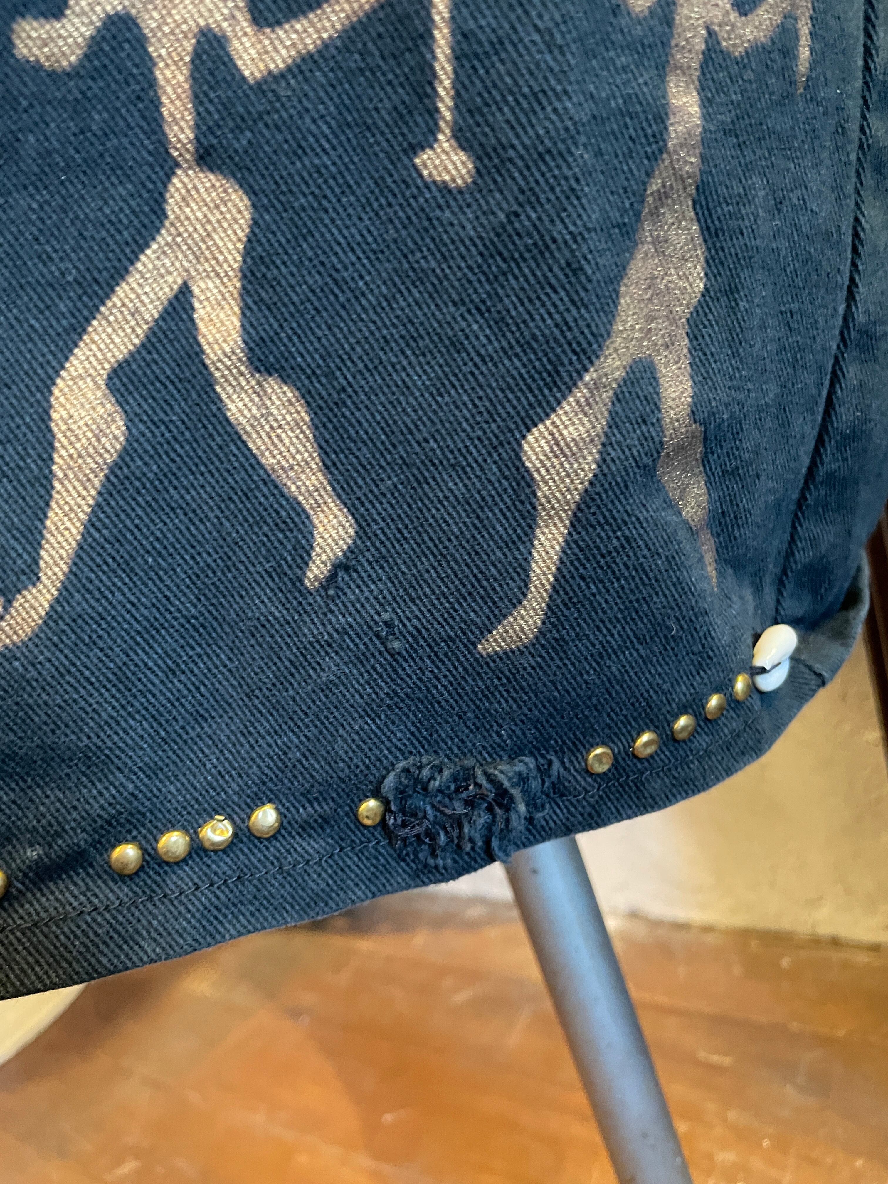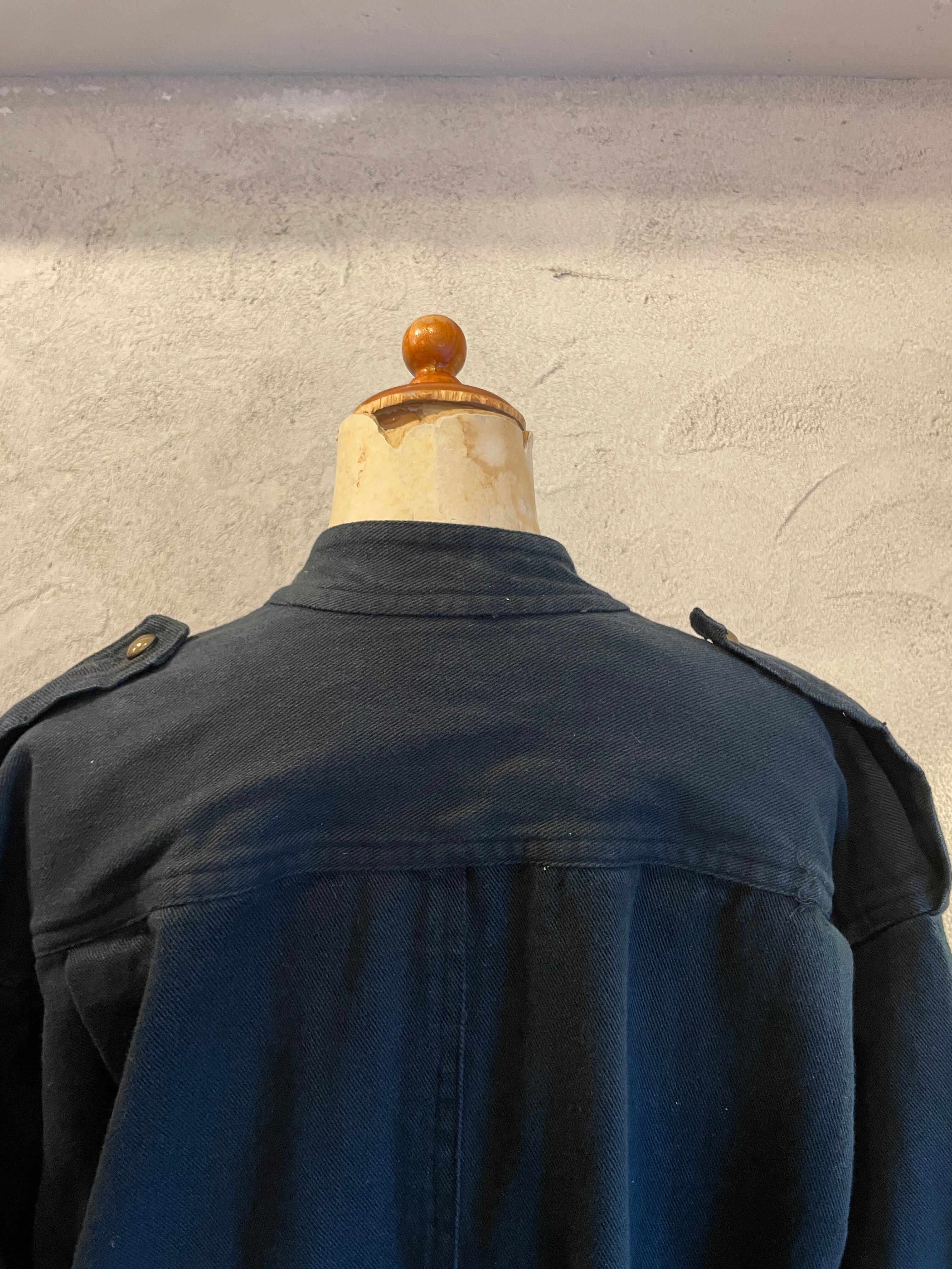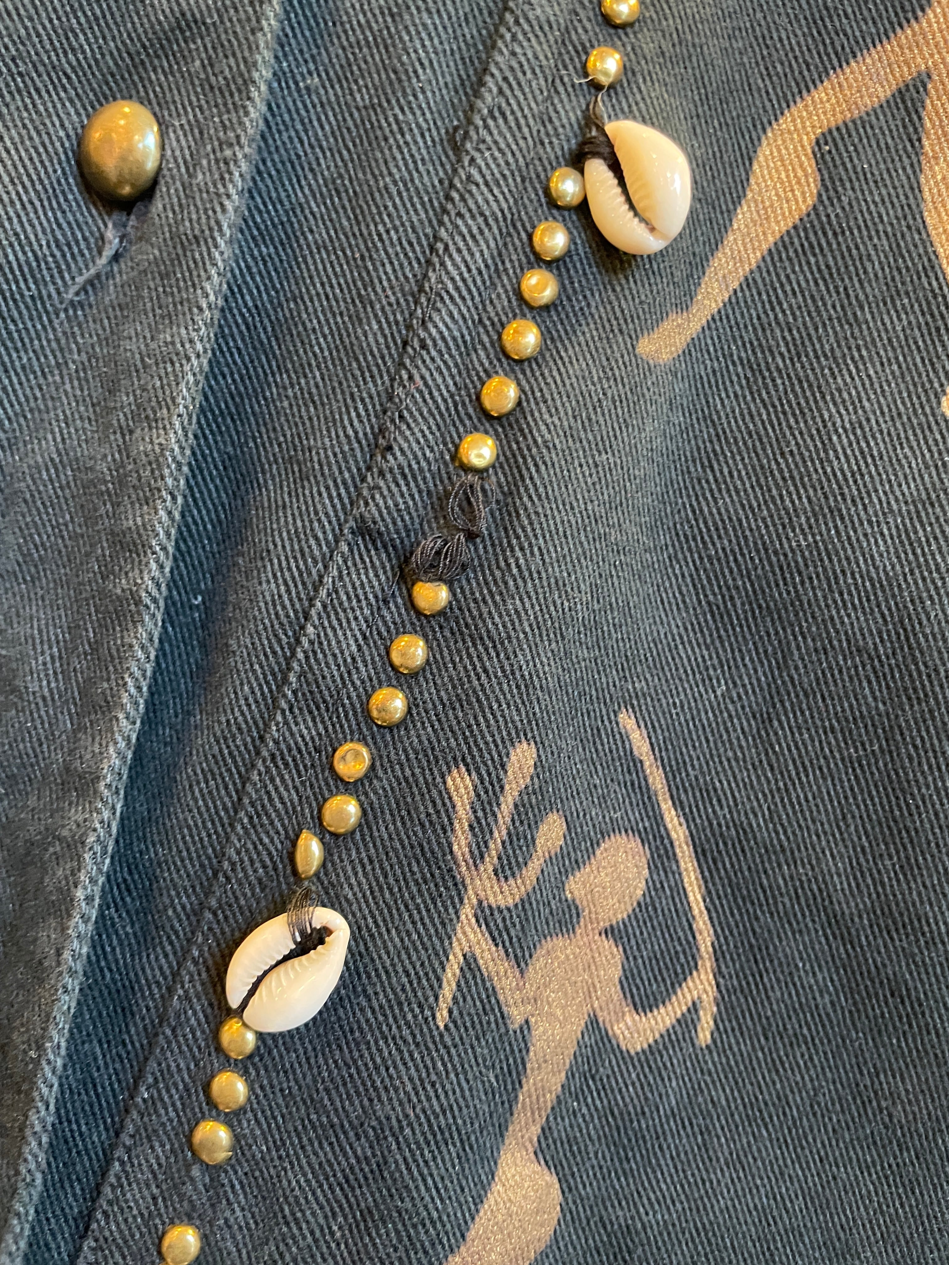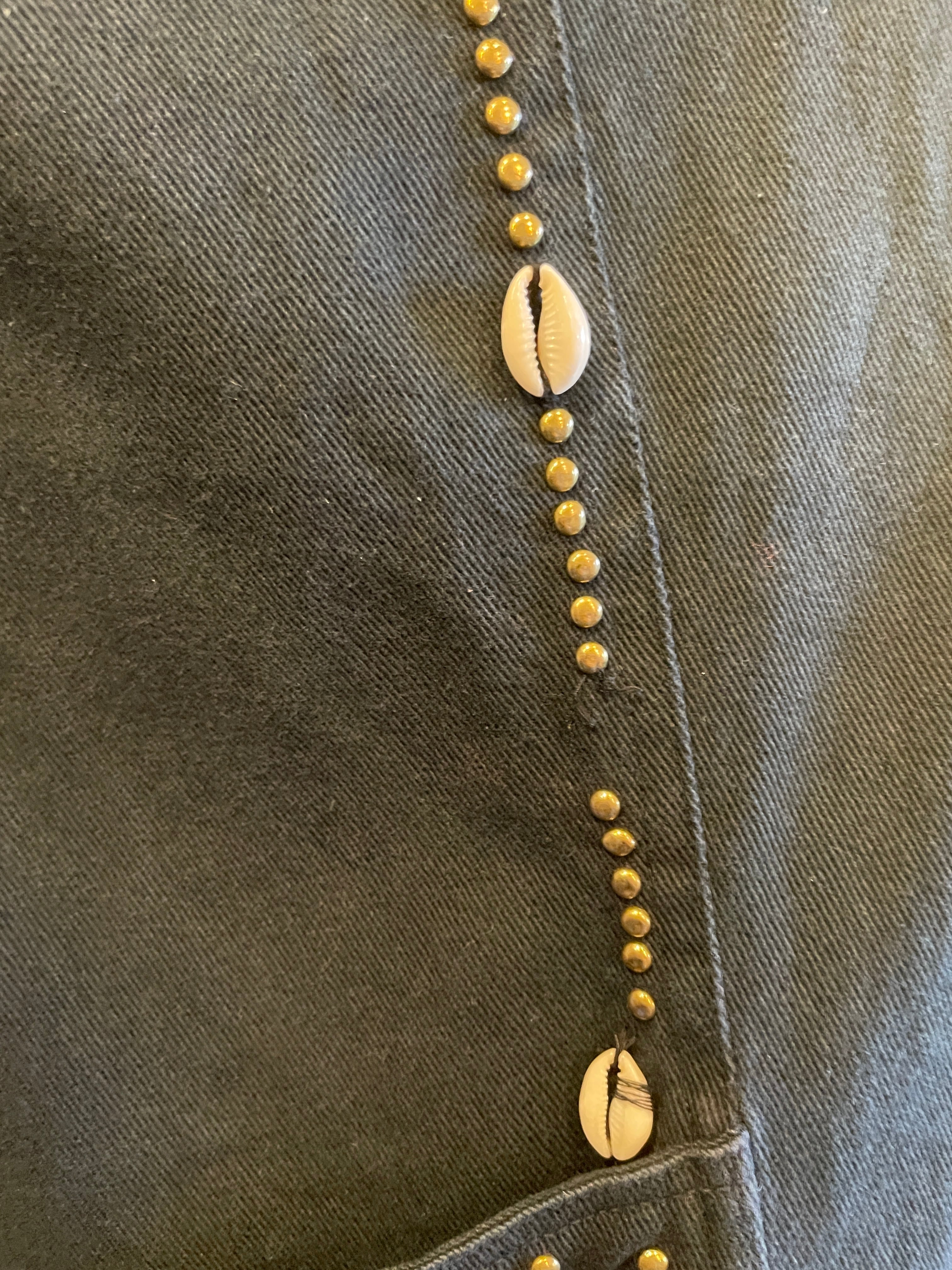 貝殻デザイン ブラックデニム ロングコート ヴィンテージ 古着