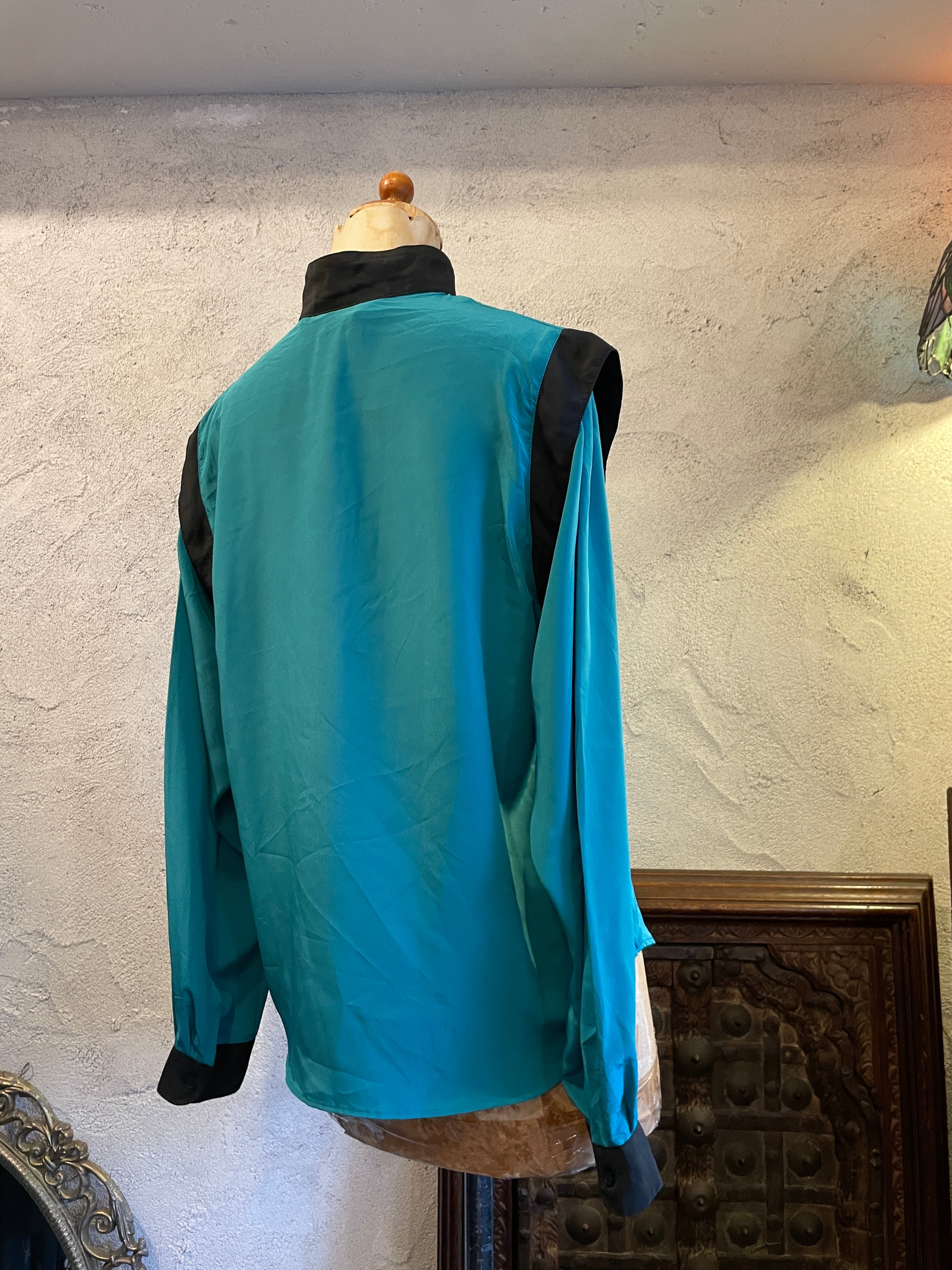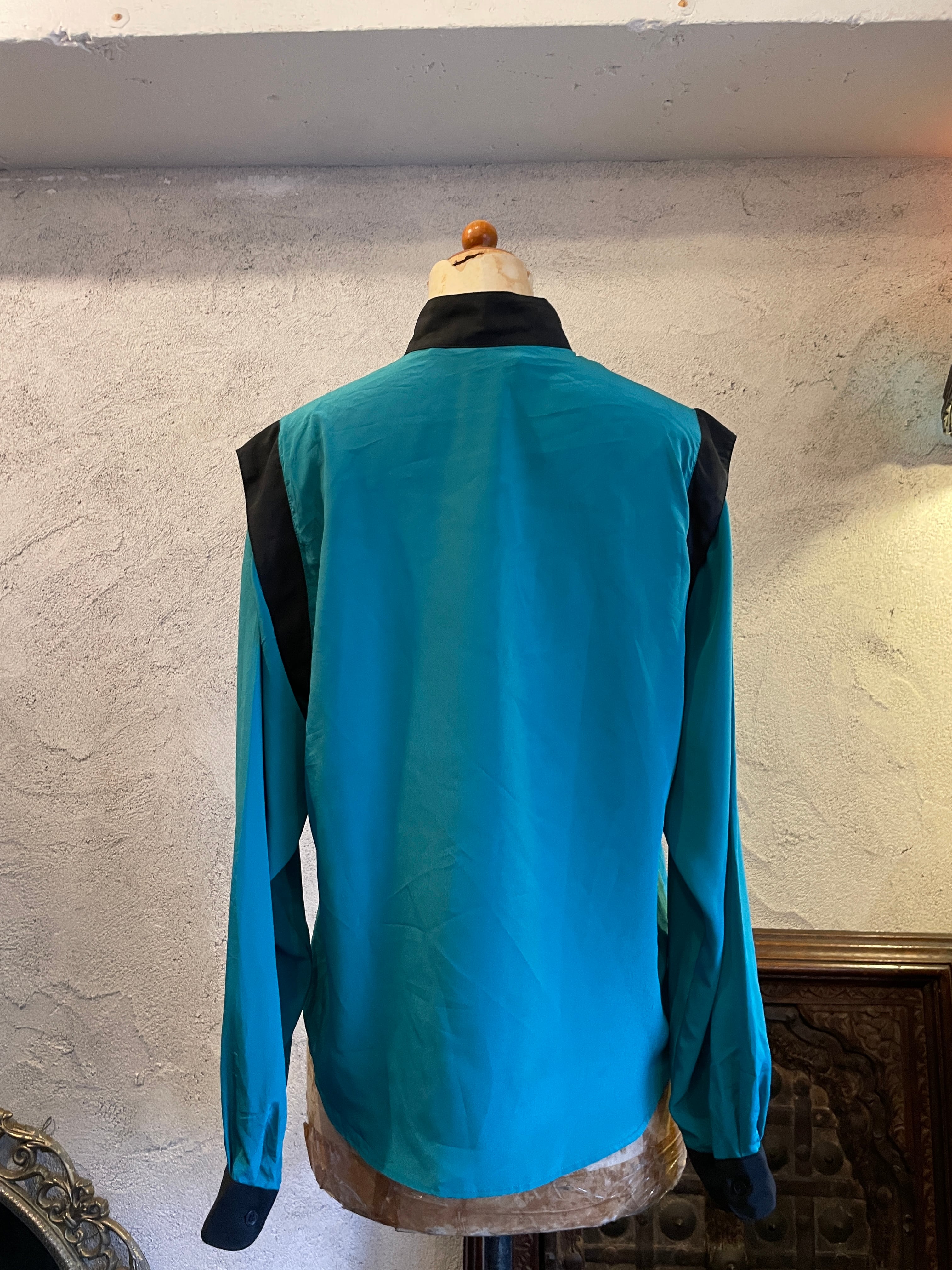 グリーンプリーツデザインブラウス ヴィンテージ 古着