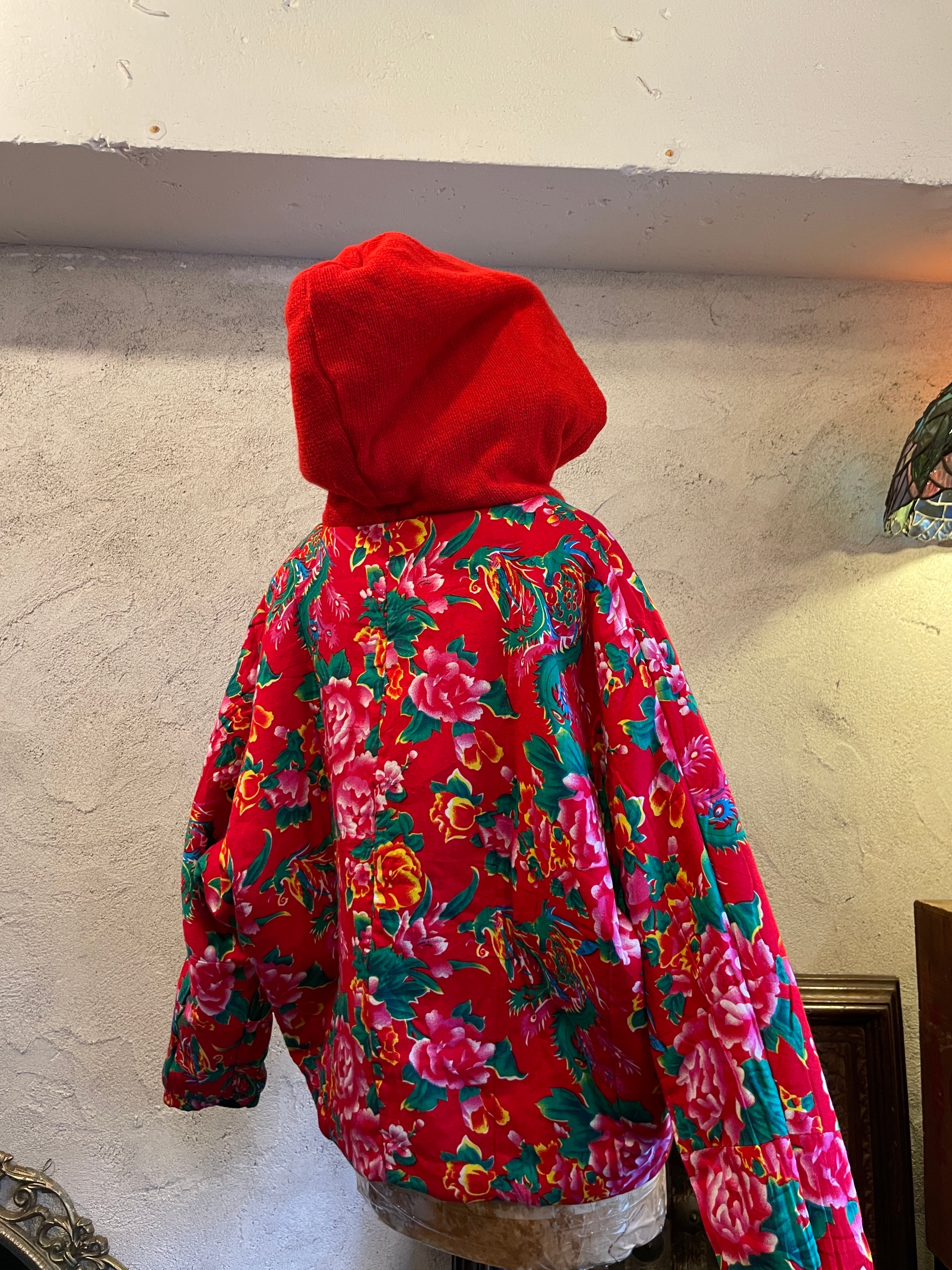 チャイナボタン 中綿フードジャケット リバーシブル総柄フラワー ヴィンテージ 古着