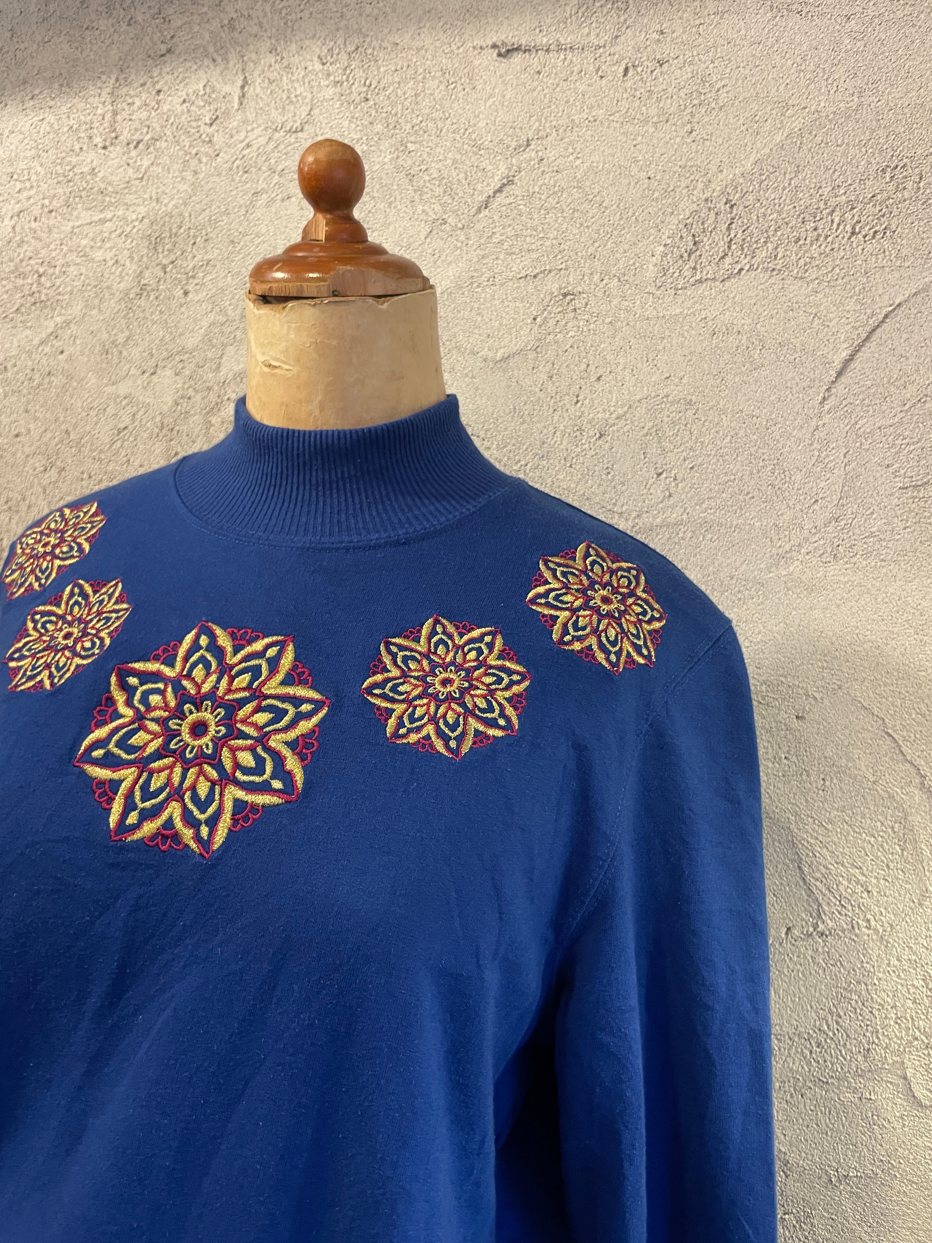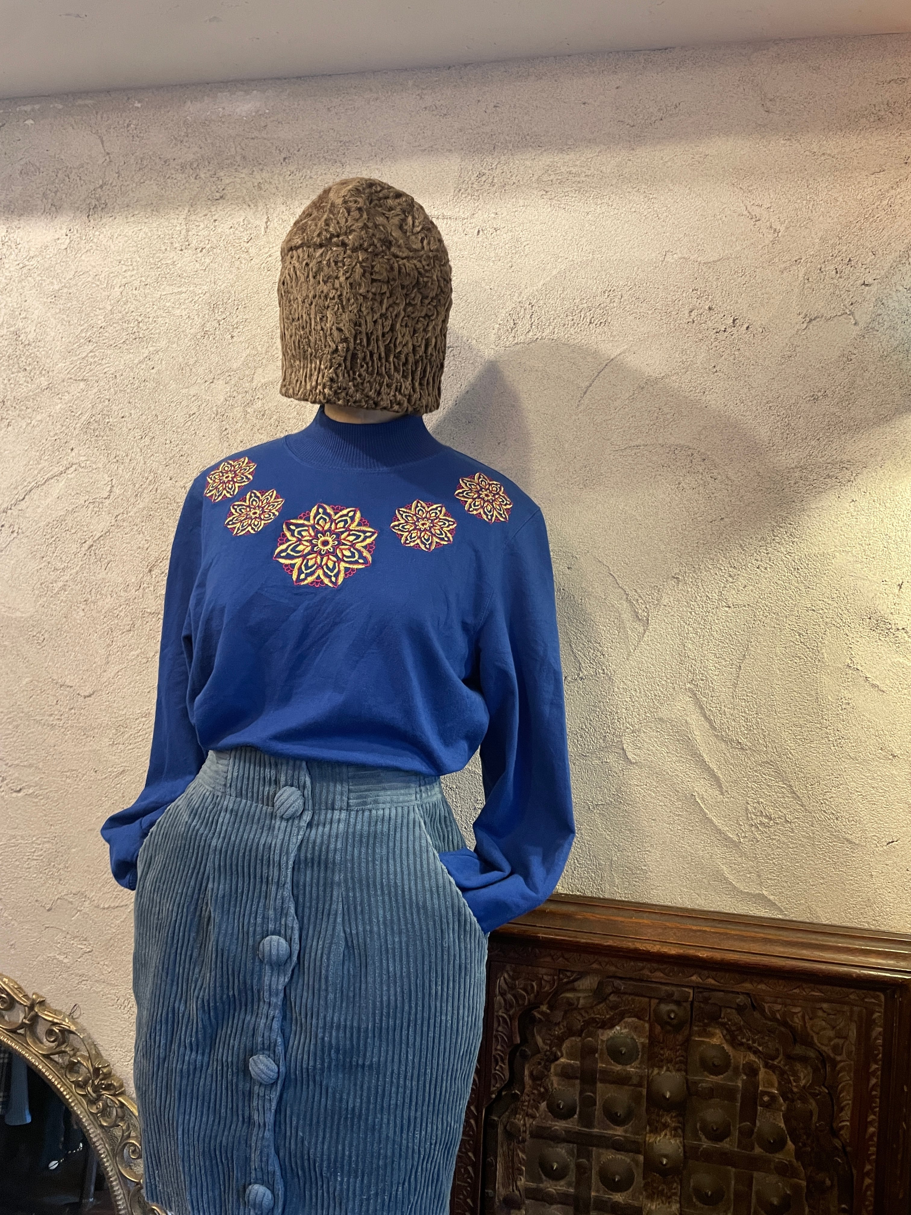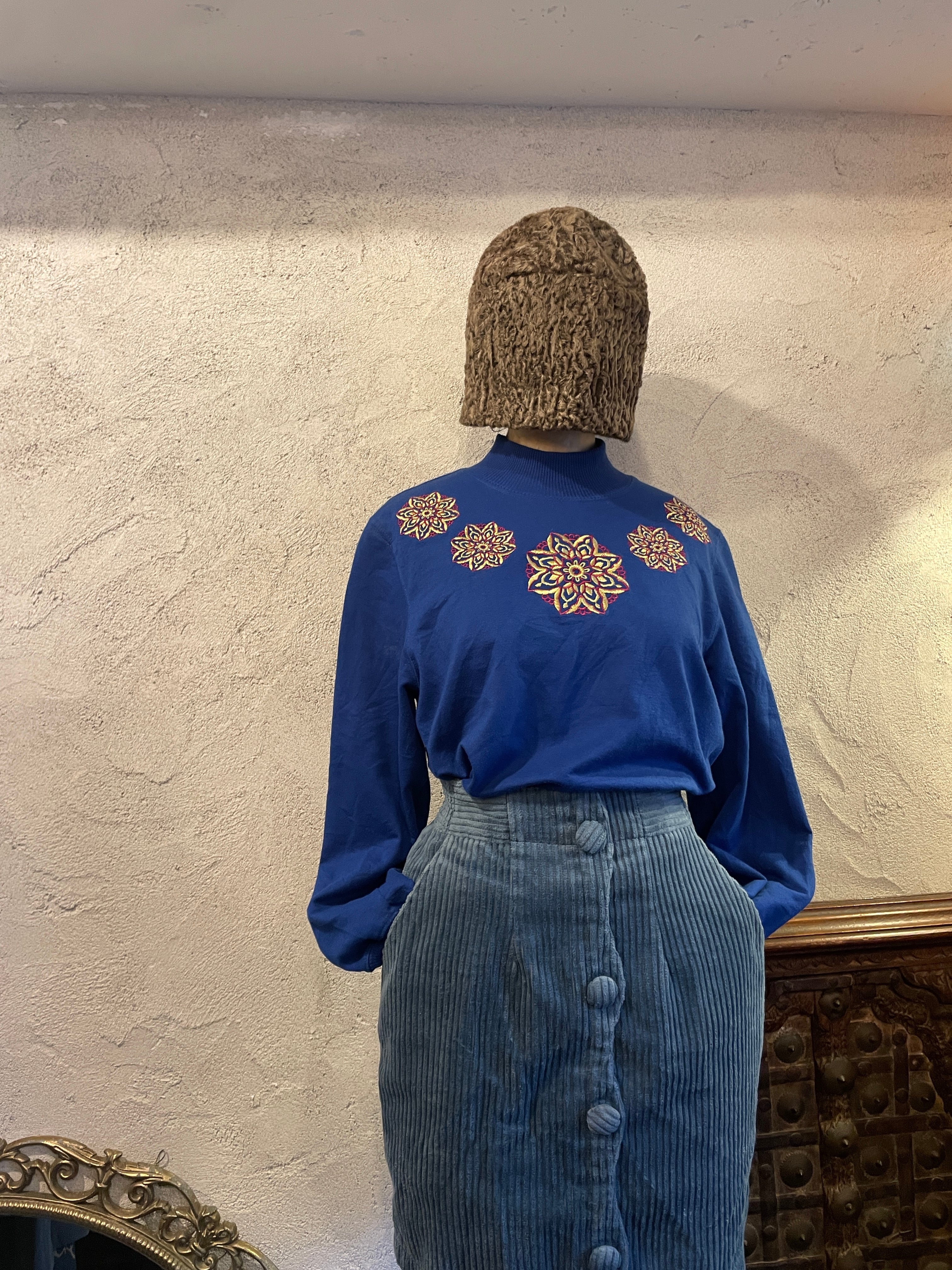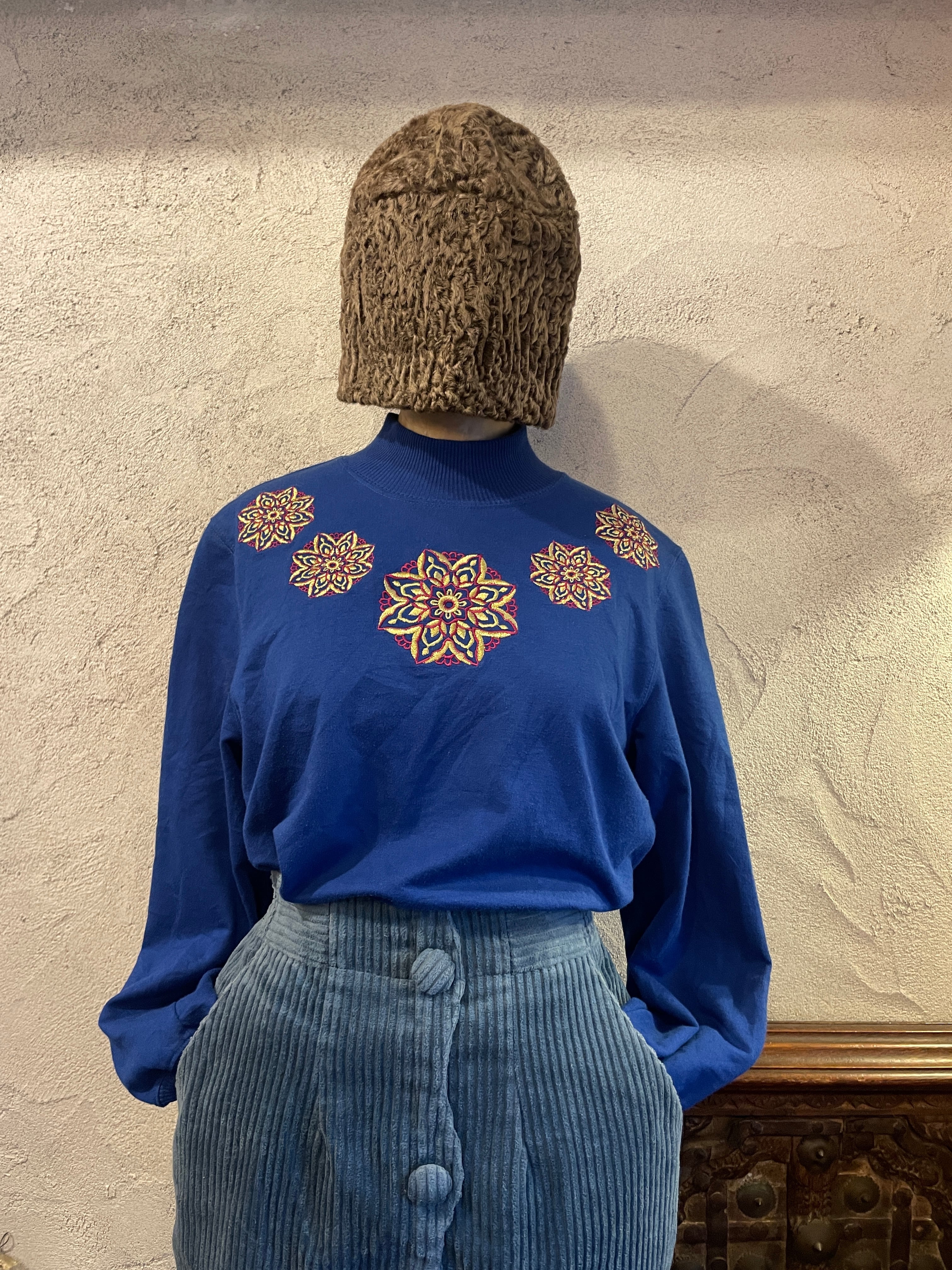 フラワーモチーフ刺繍 スウェット トレーナー ヴィンテージ 古着