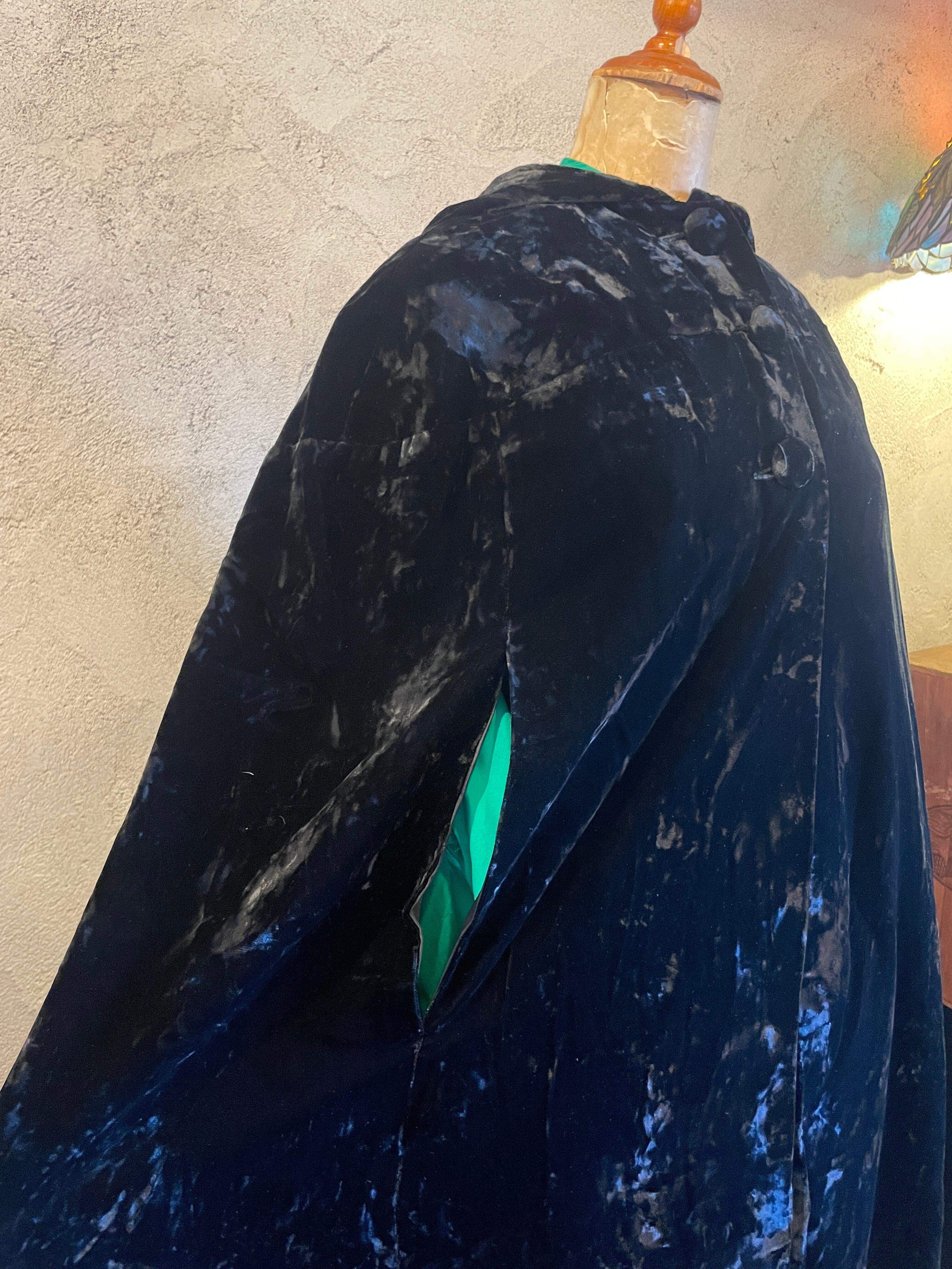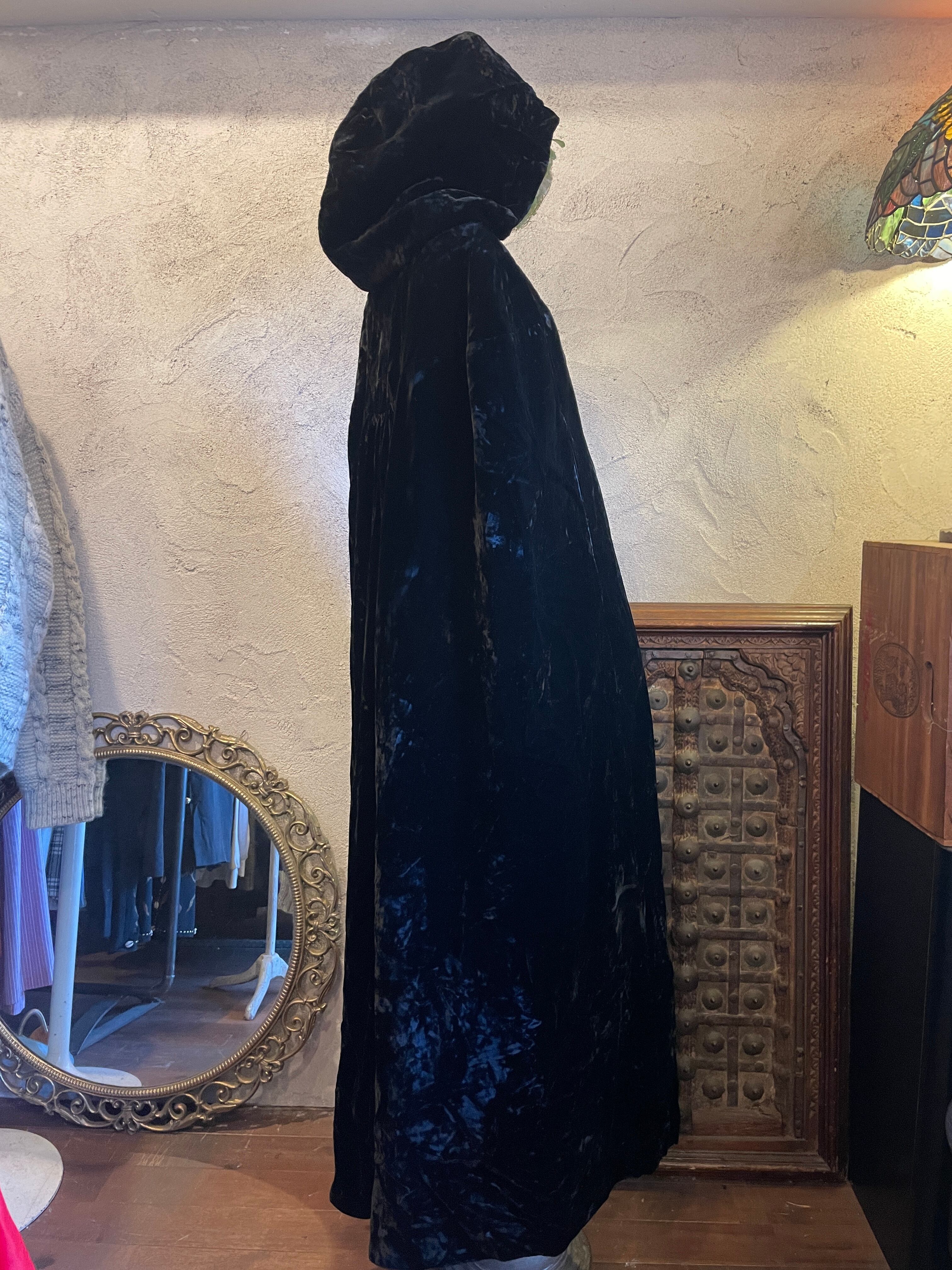 ベルベット ベロア フード付ロングマント ガウン マキシ丈 ブラック アウター ヴィンテージ 古着