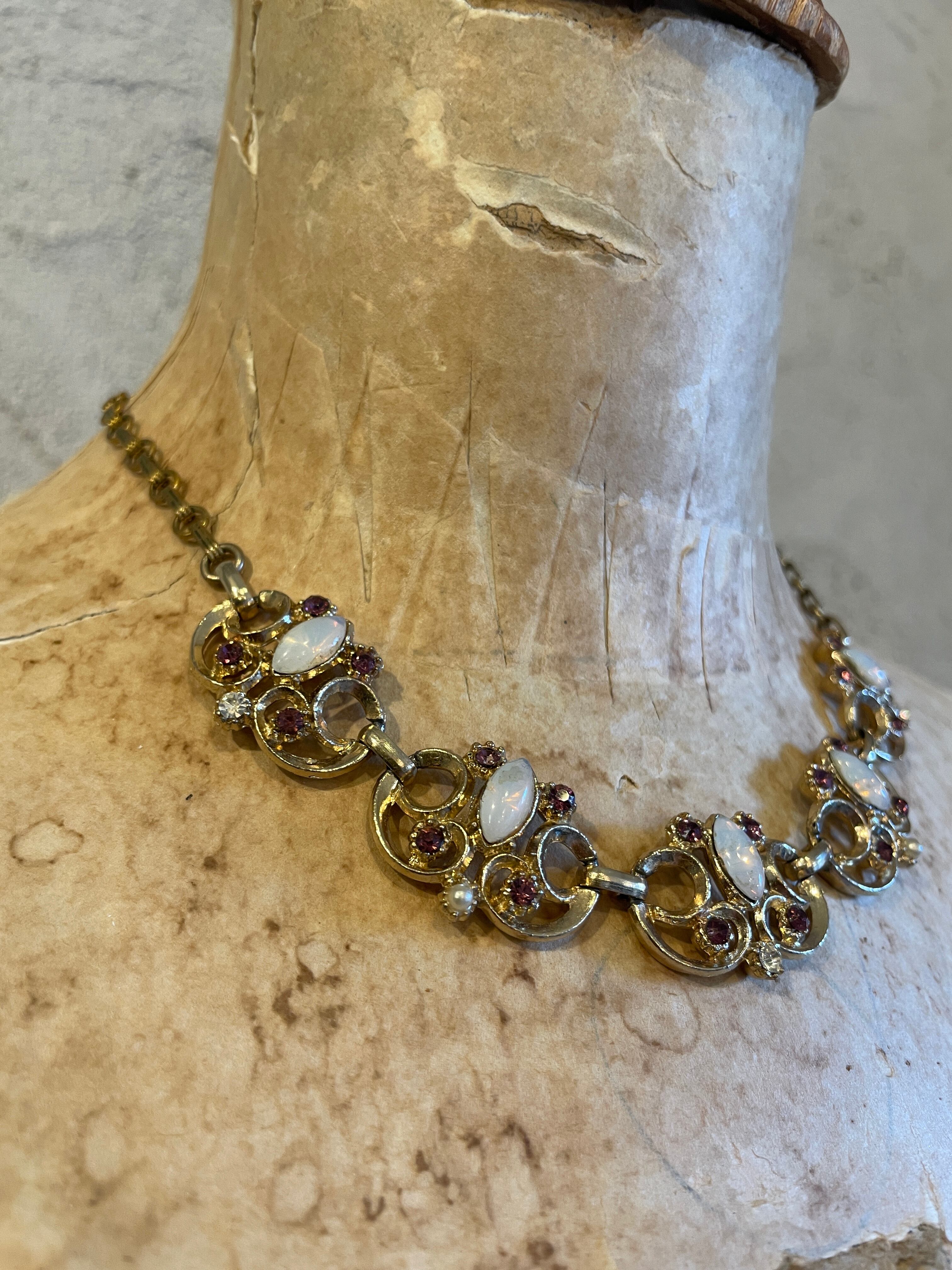 ゴールドチェーン ビジュー アンティーク風ネックレス ヴィンテージ アクセサリー