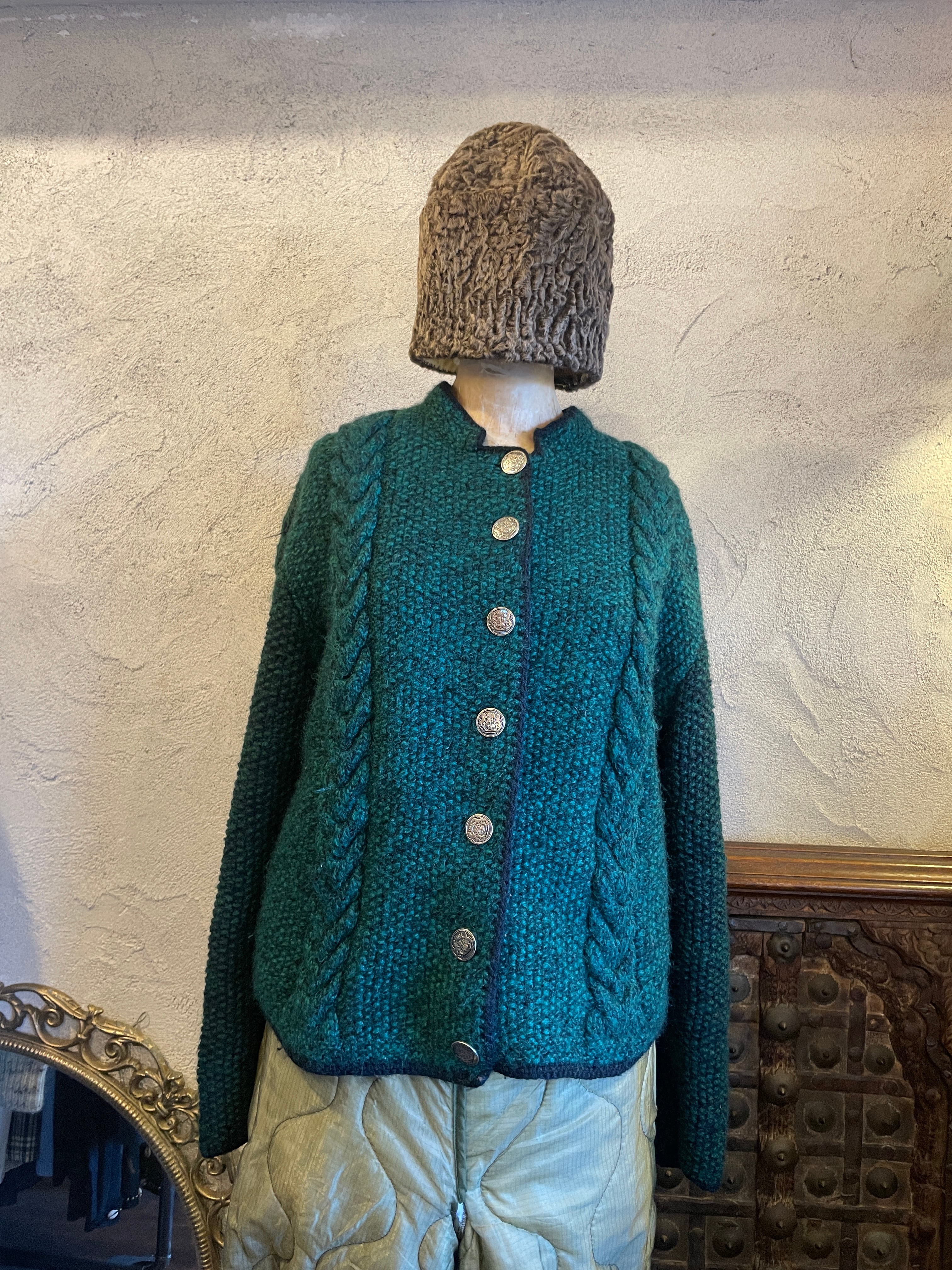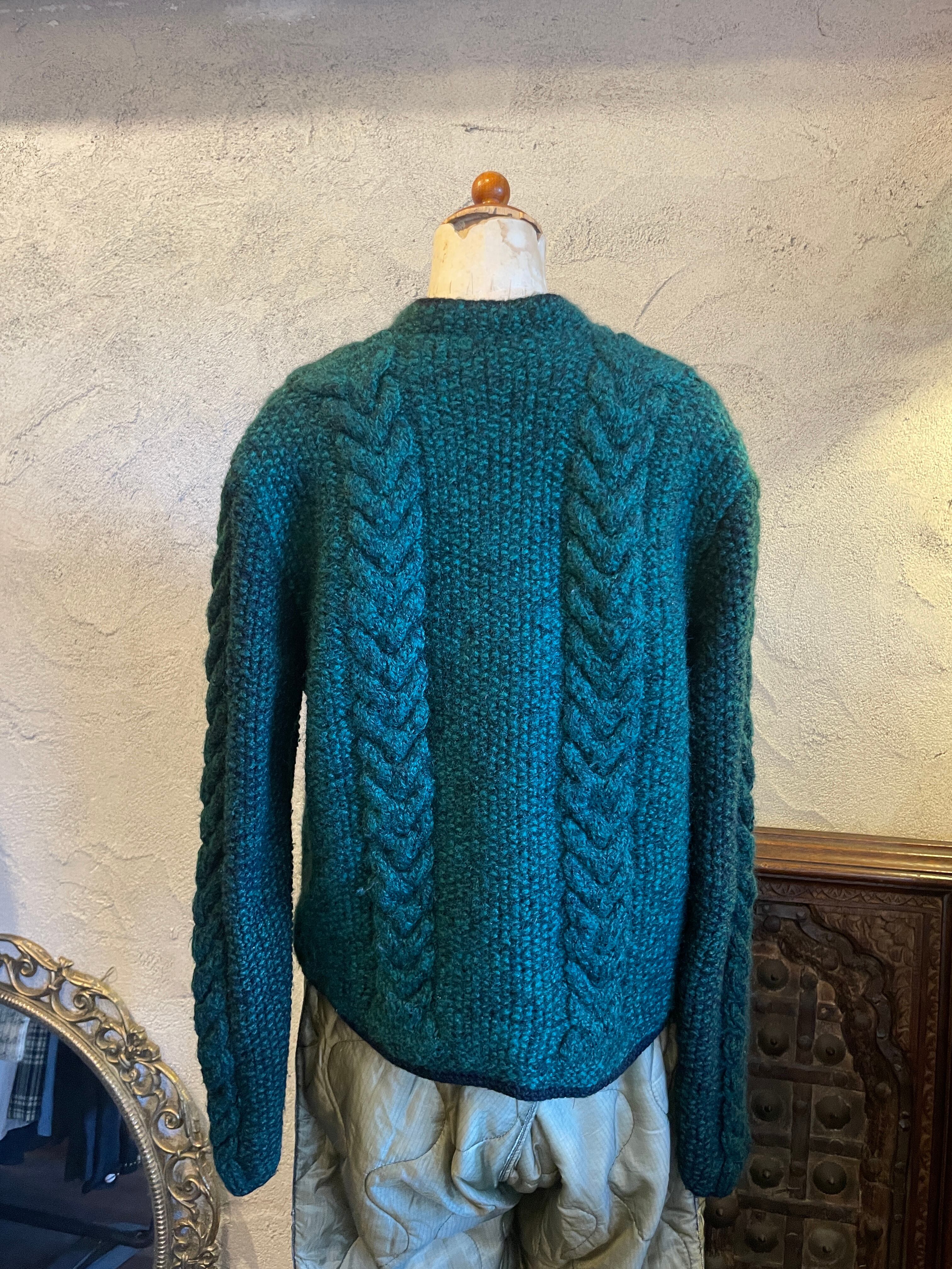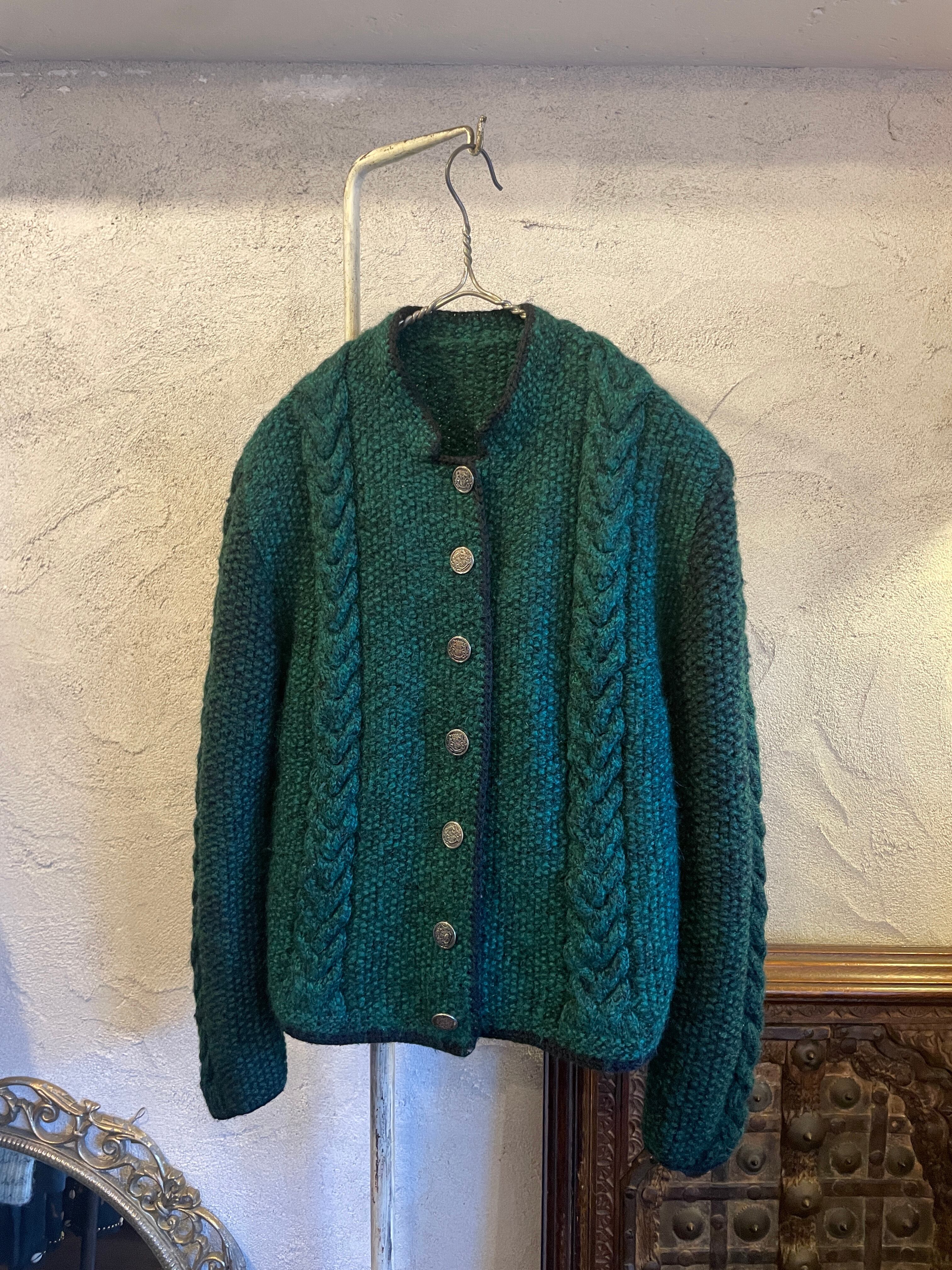 ハンドニット グリーン チロリアンニットカーディガン ヴィンテージ 古着