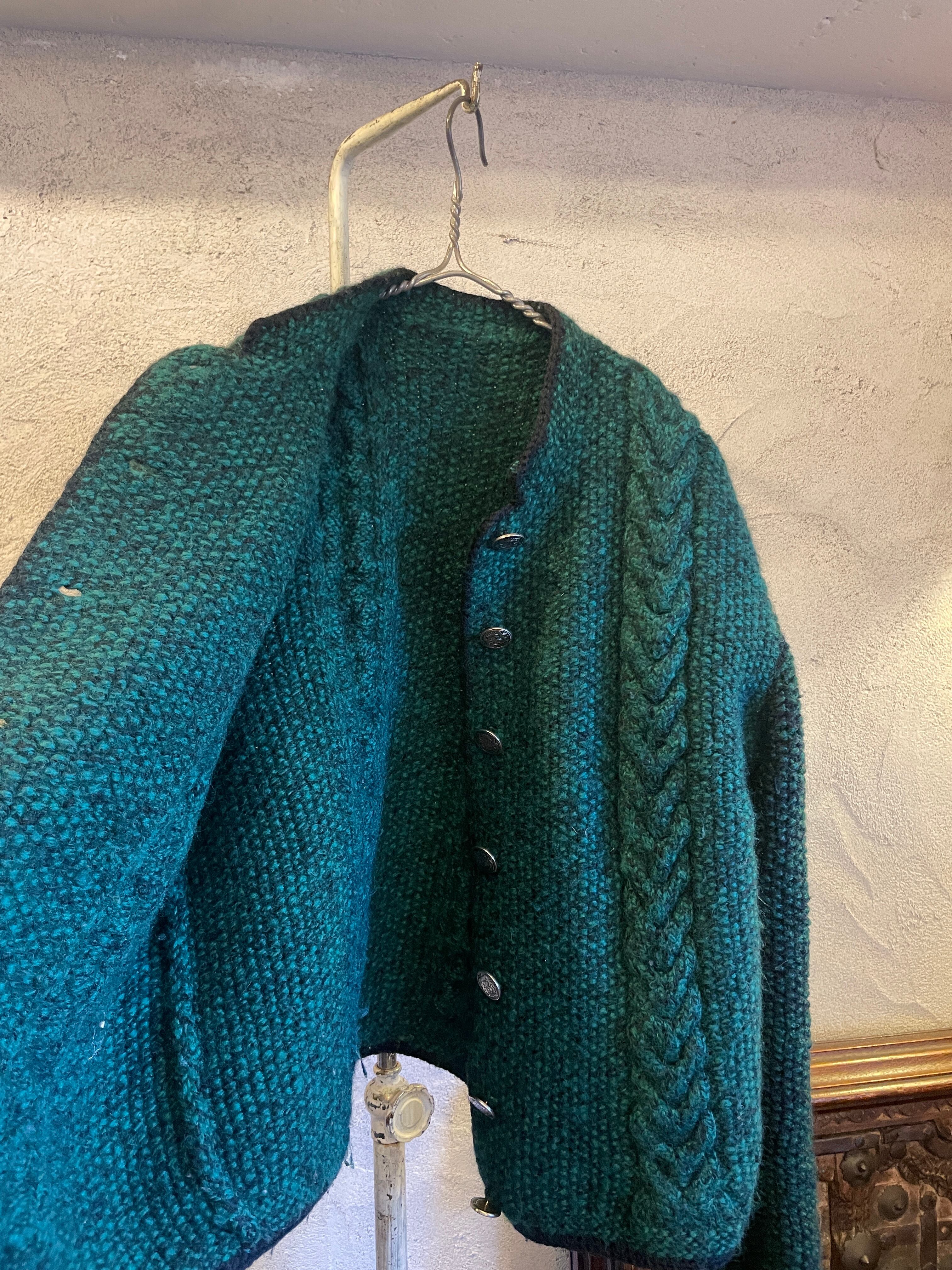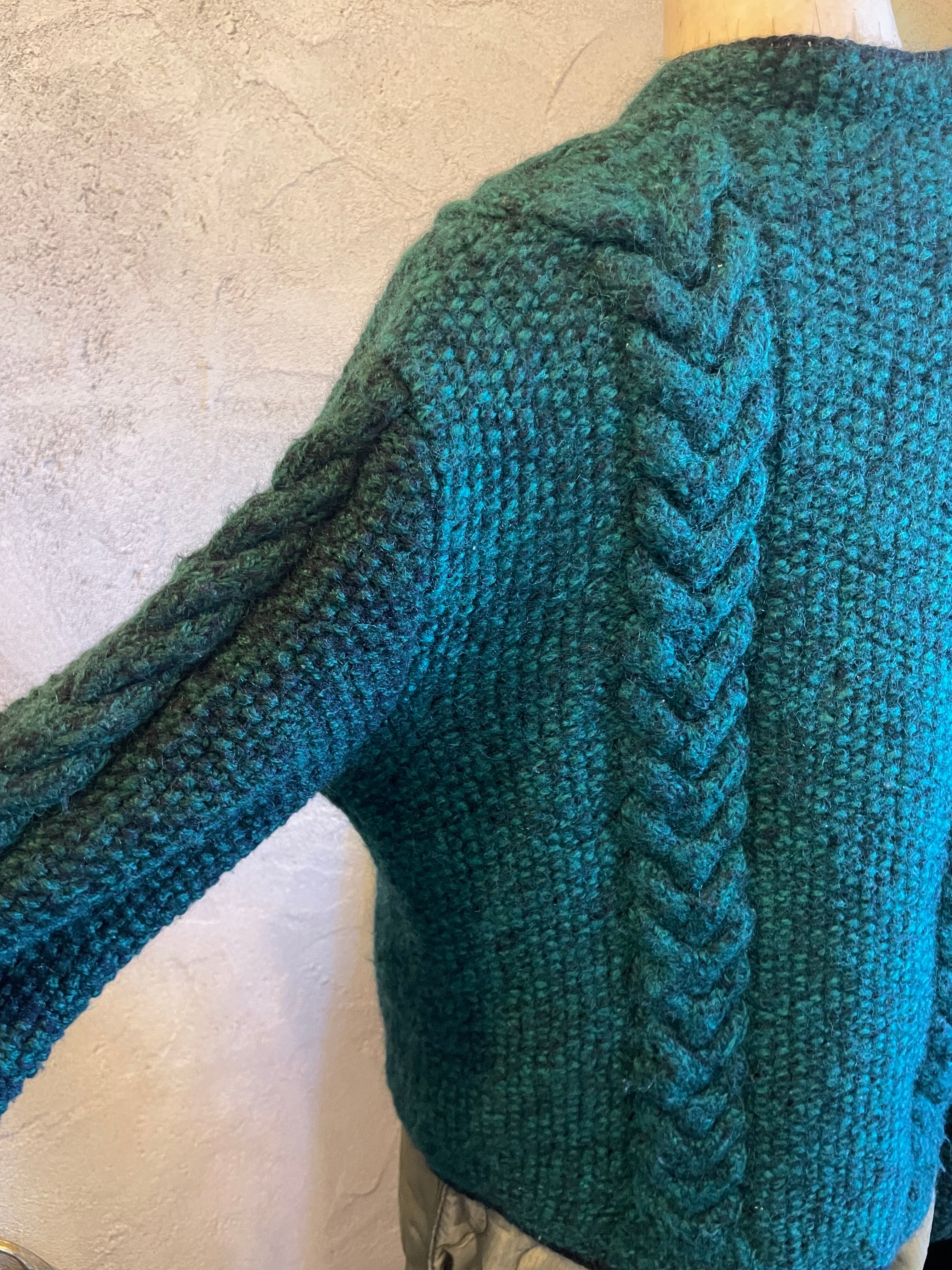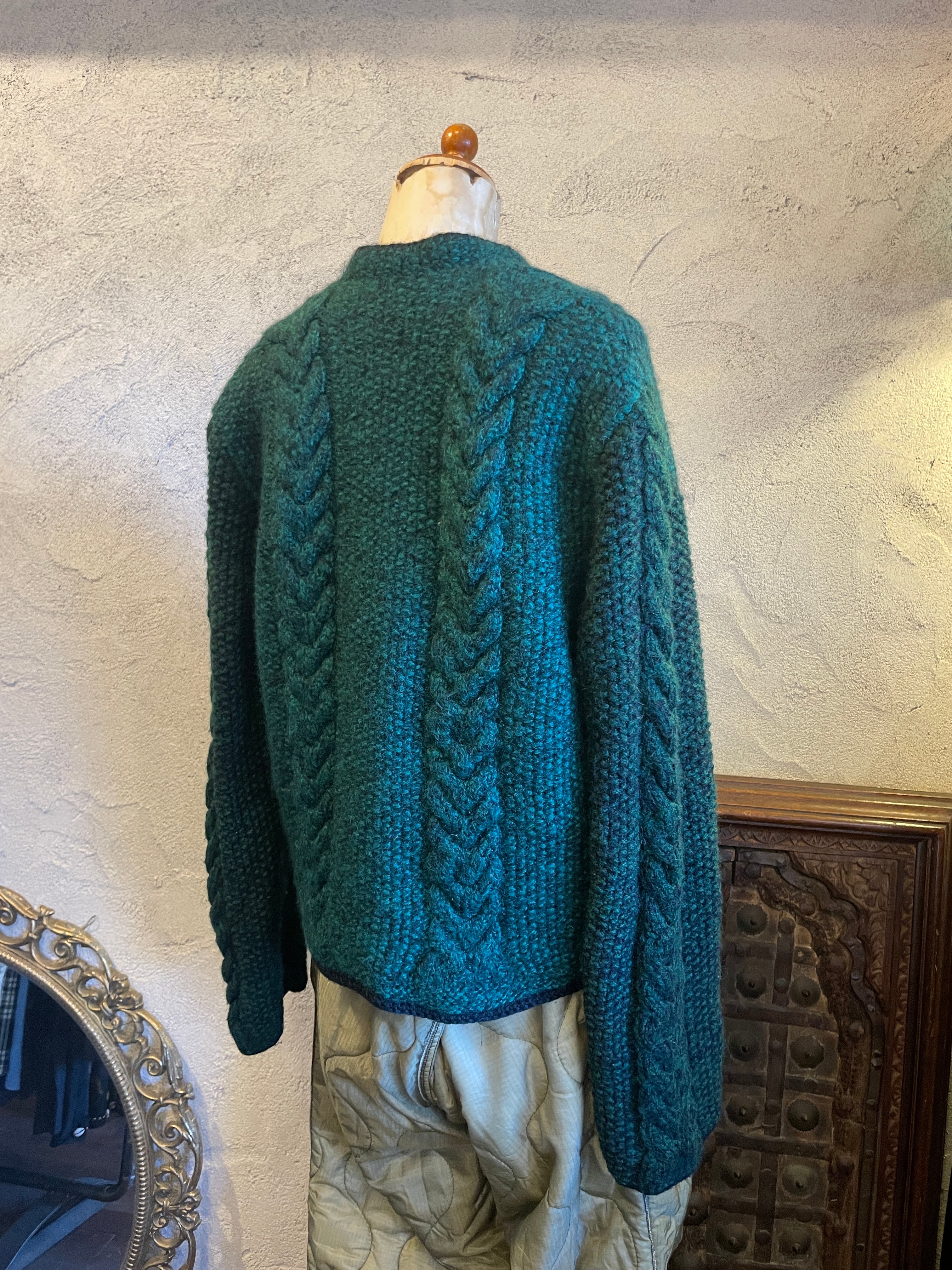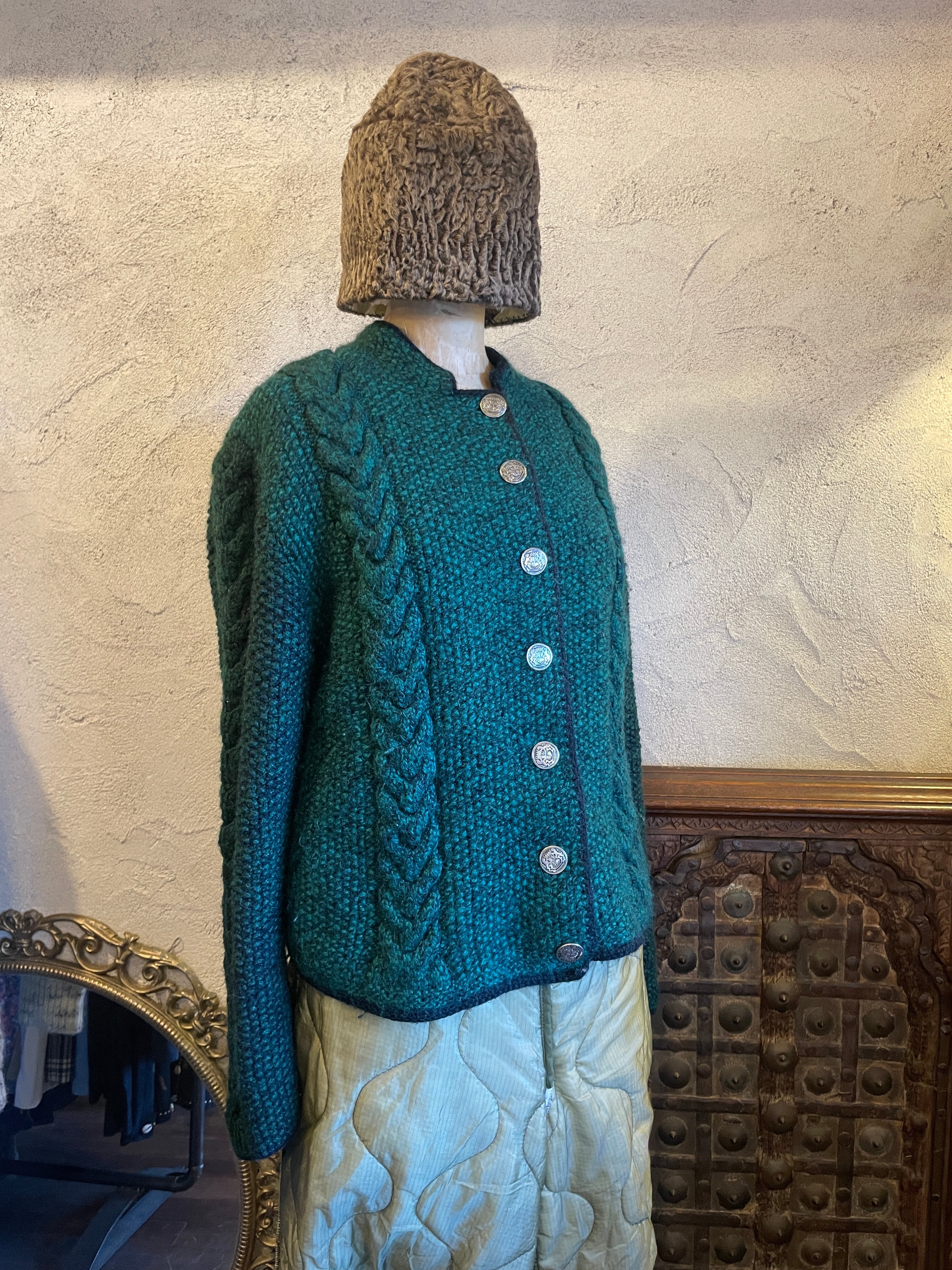 ハンドニット グリーン チロリアンニットカーディガン ヴィンテージ 古着