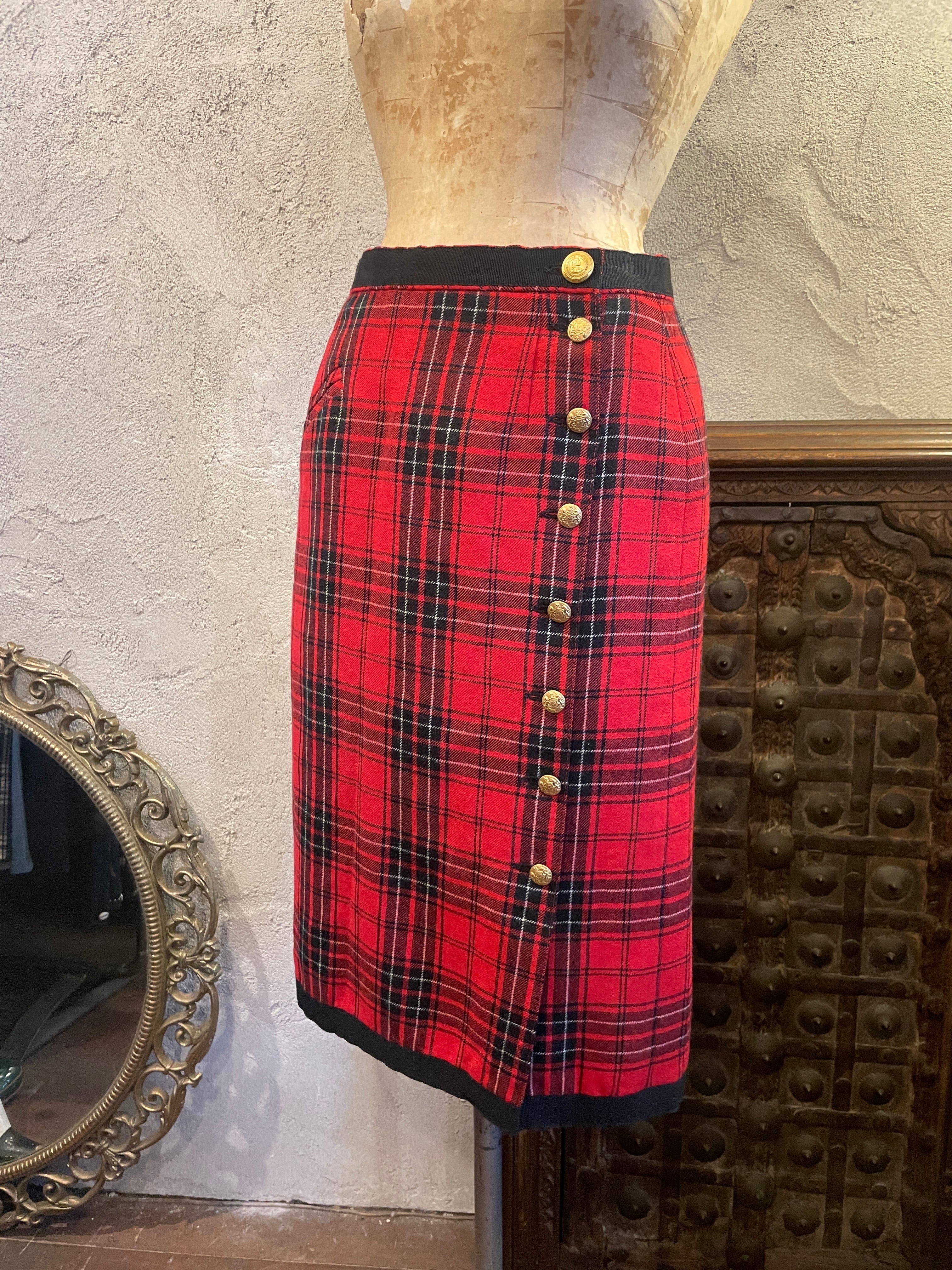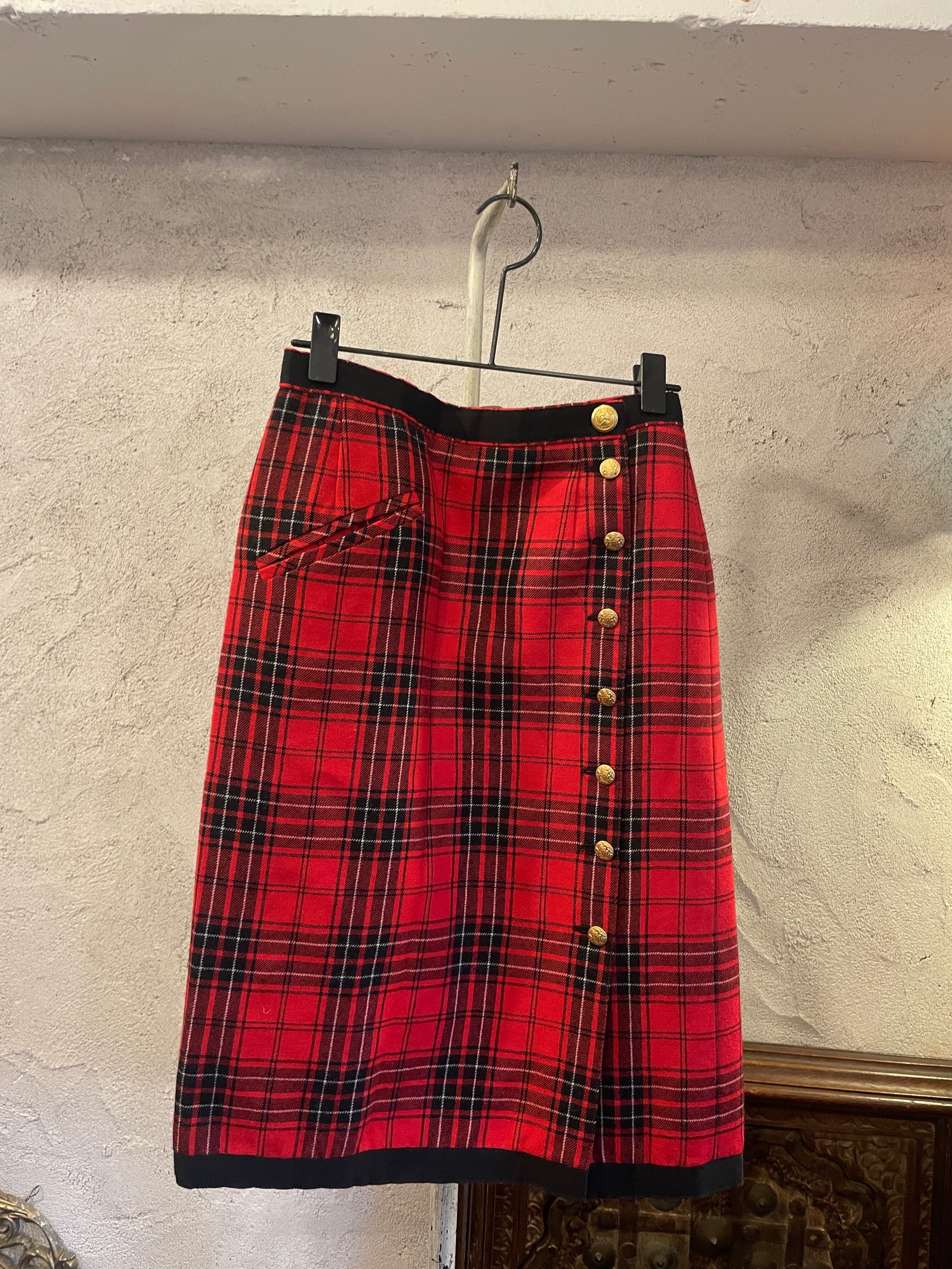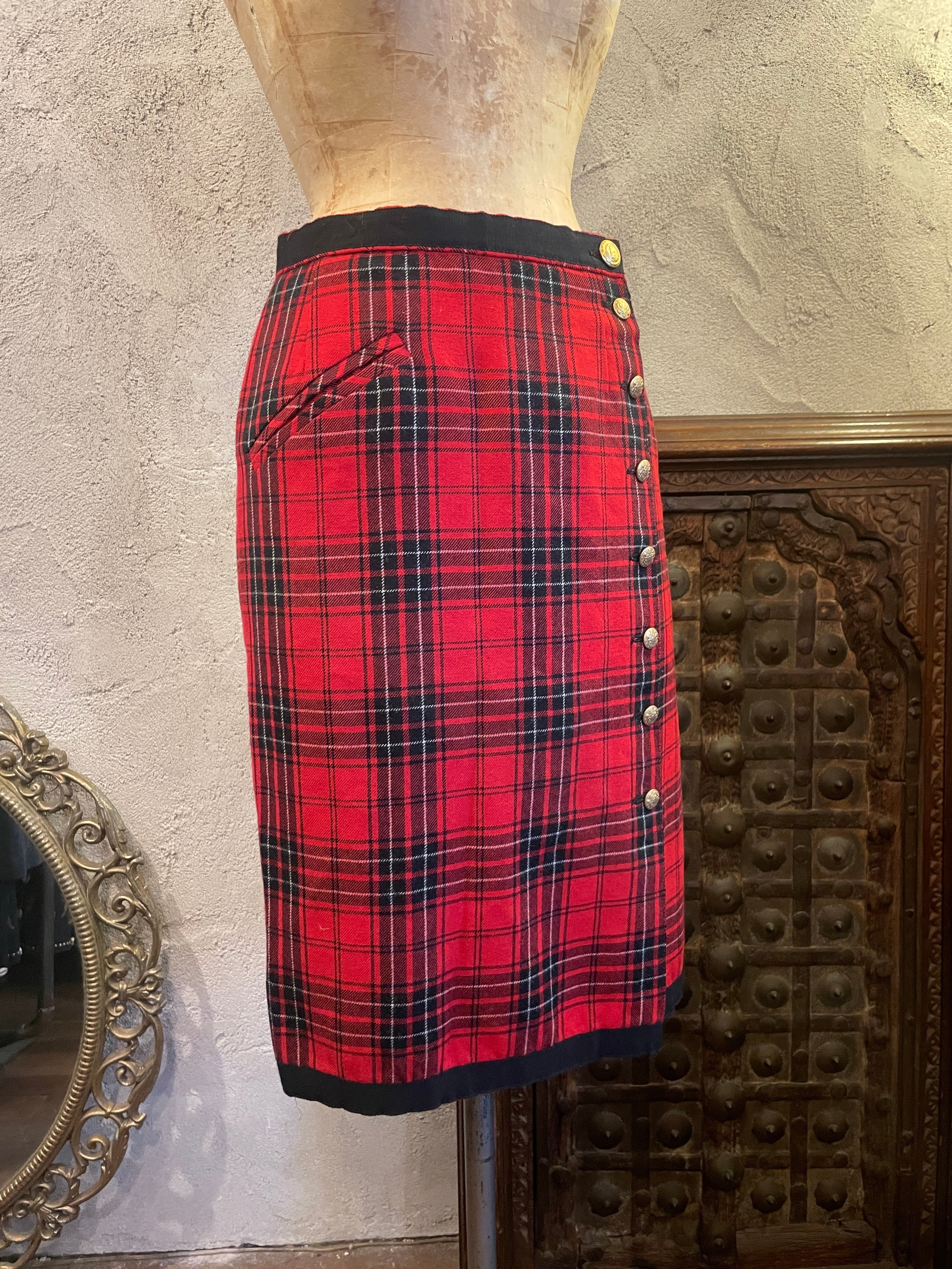 タータンチェック ラップスカート ゴールドボタン ヴィンテージ 古着