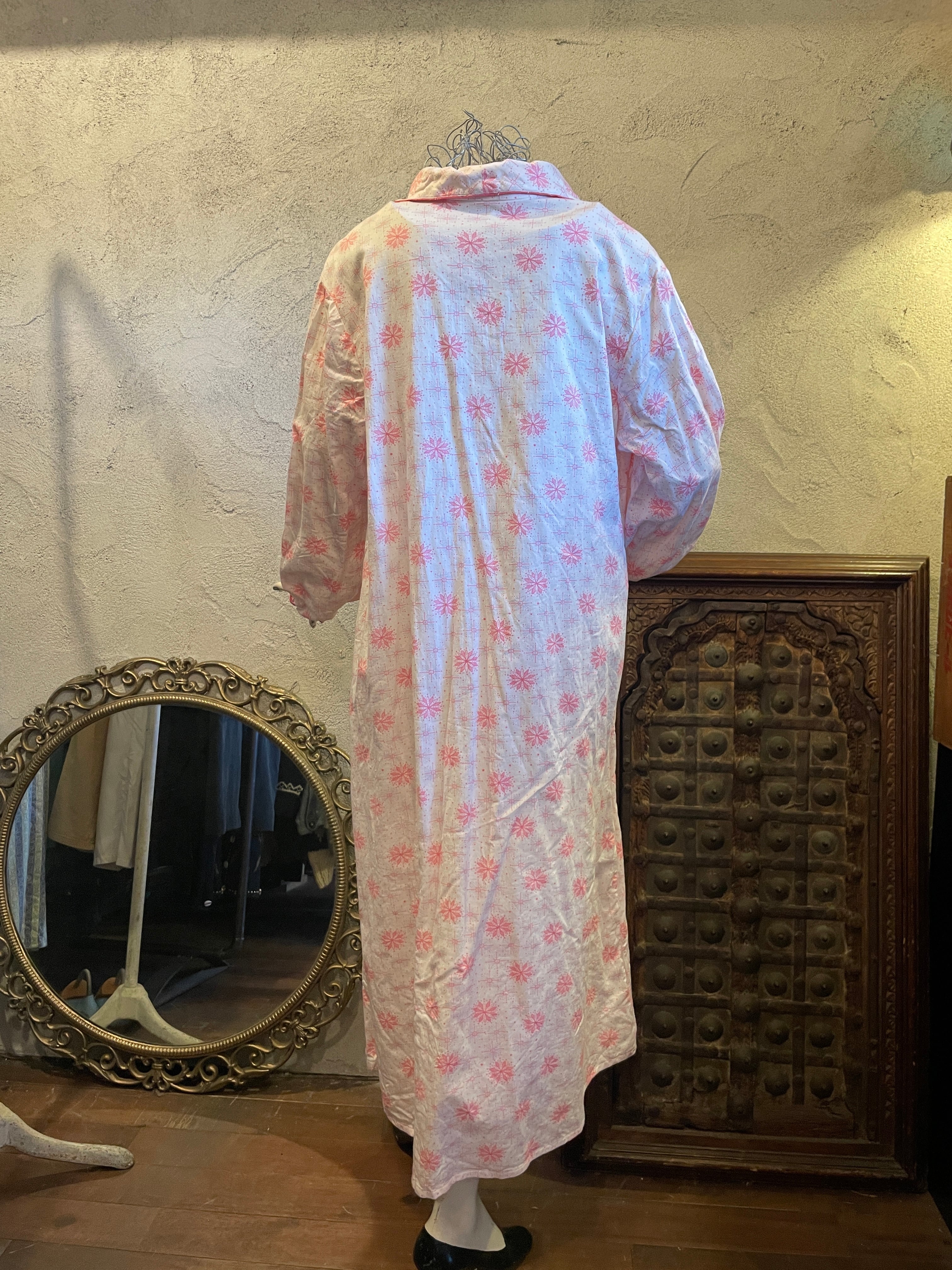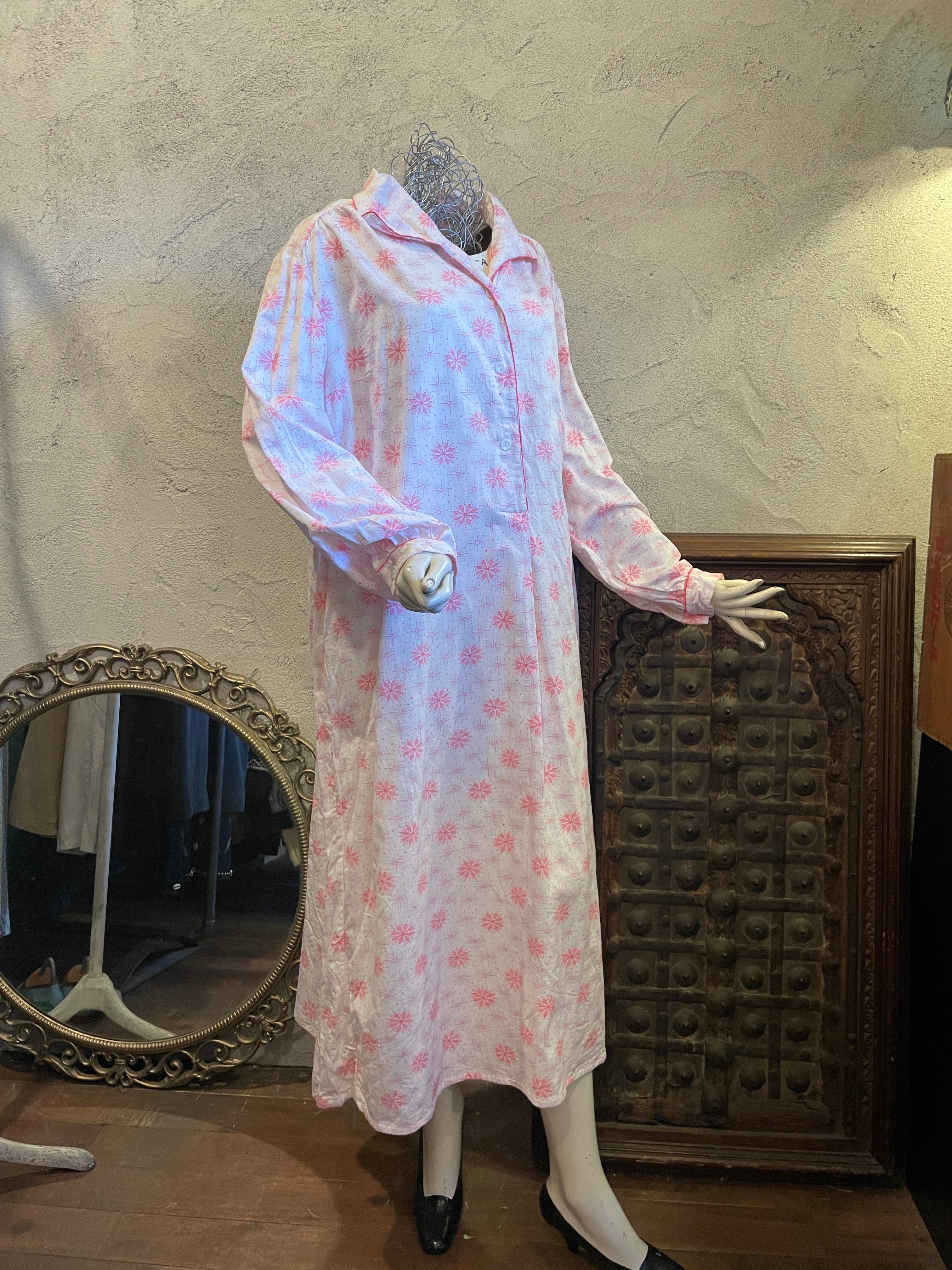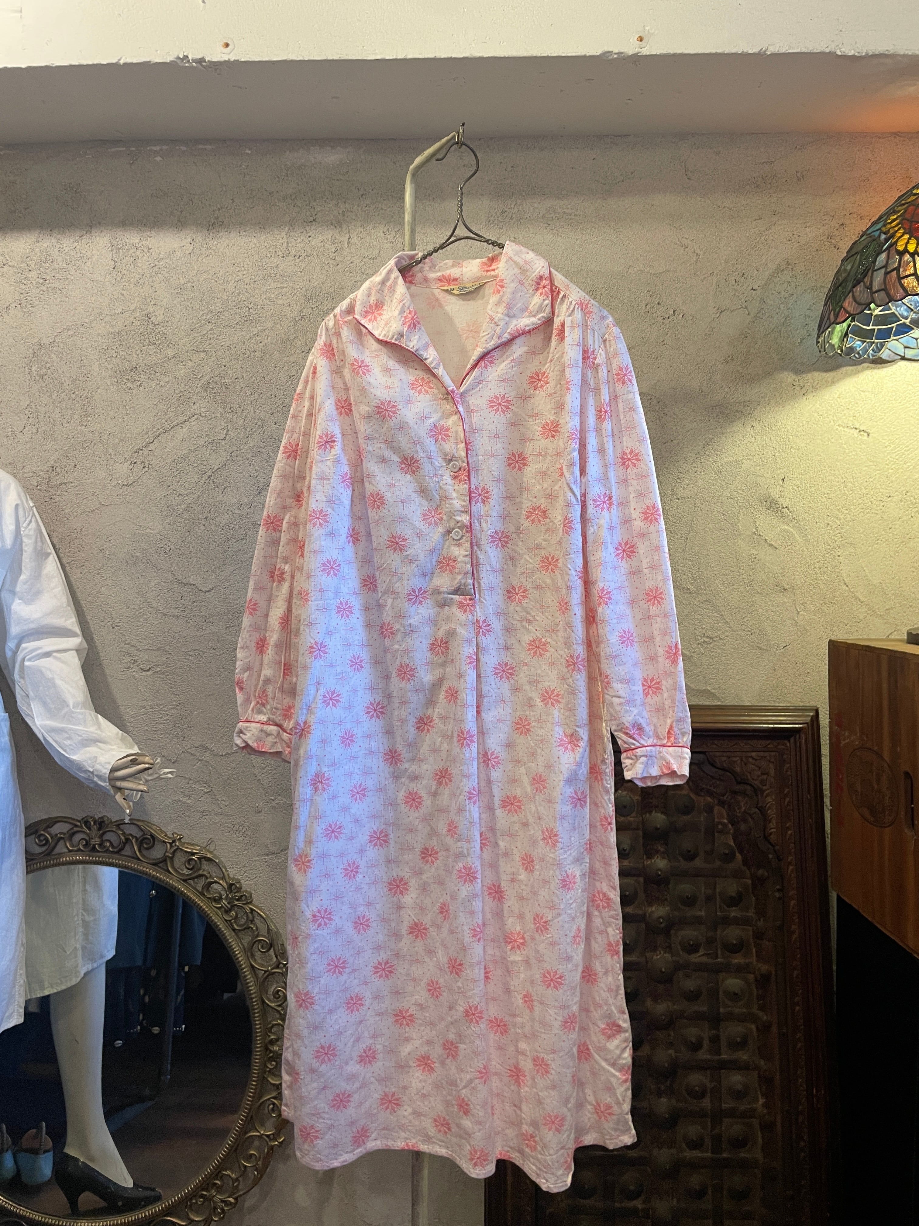 スリーピングワンピース コットンナイトドレス ピンクフラワープリント ヴィンテージ 古着