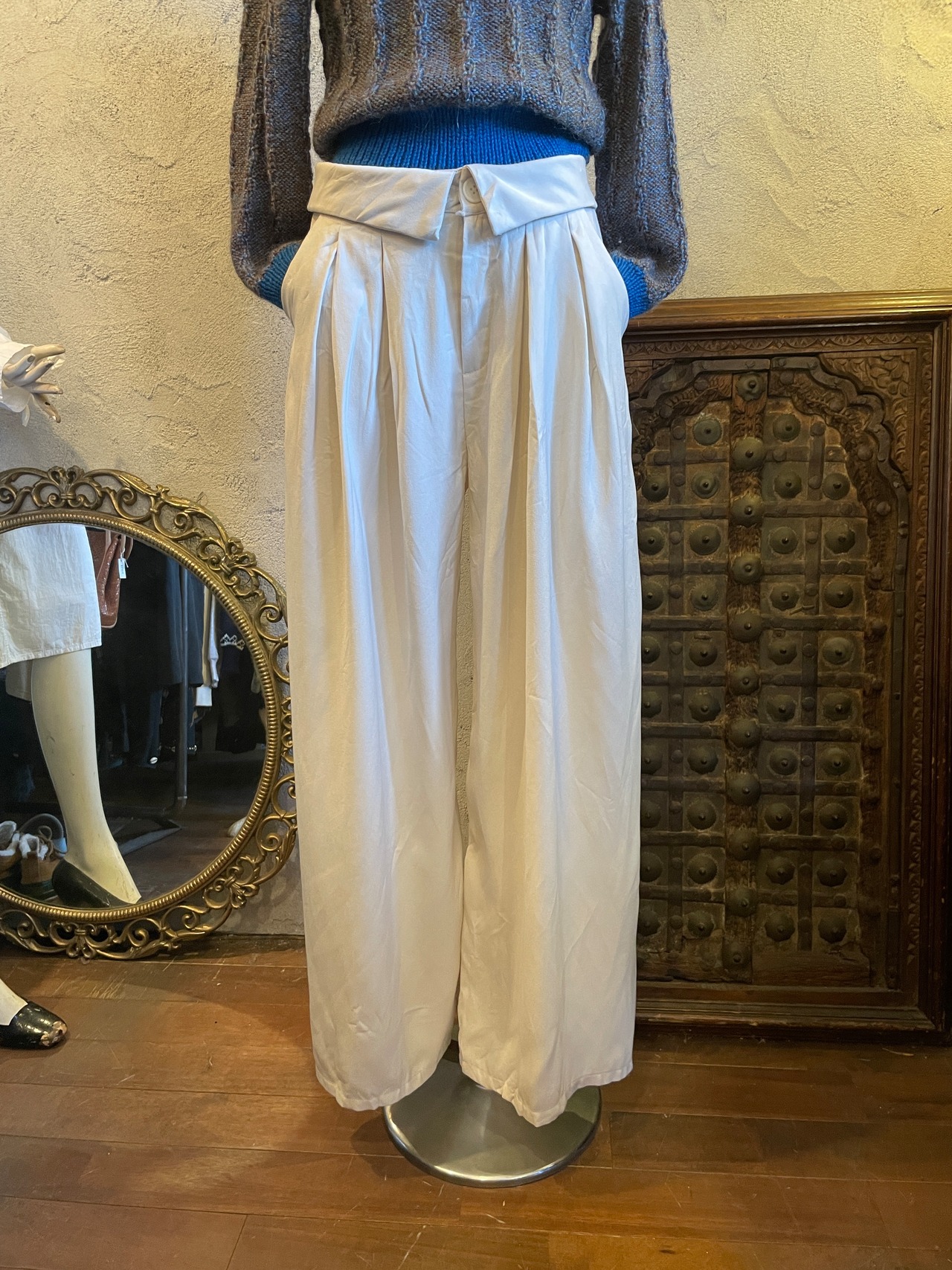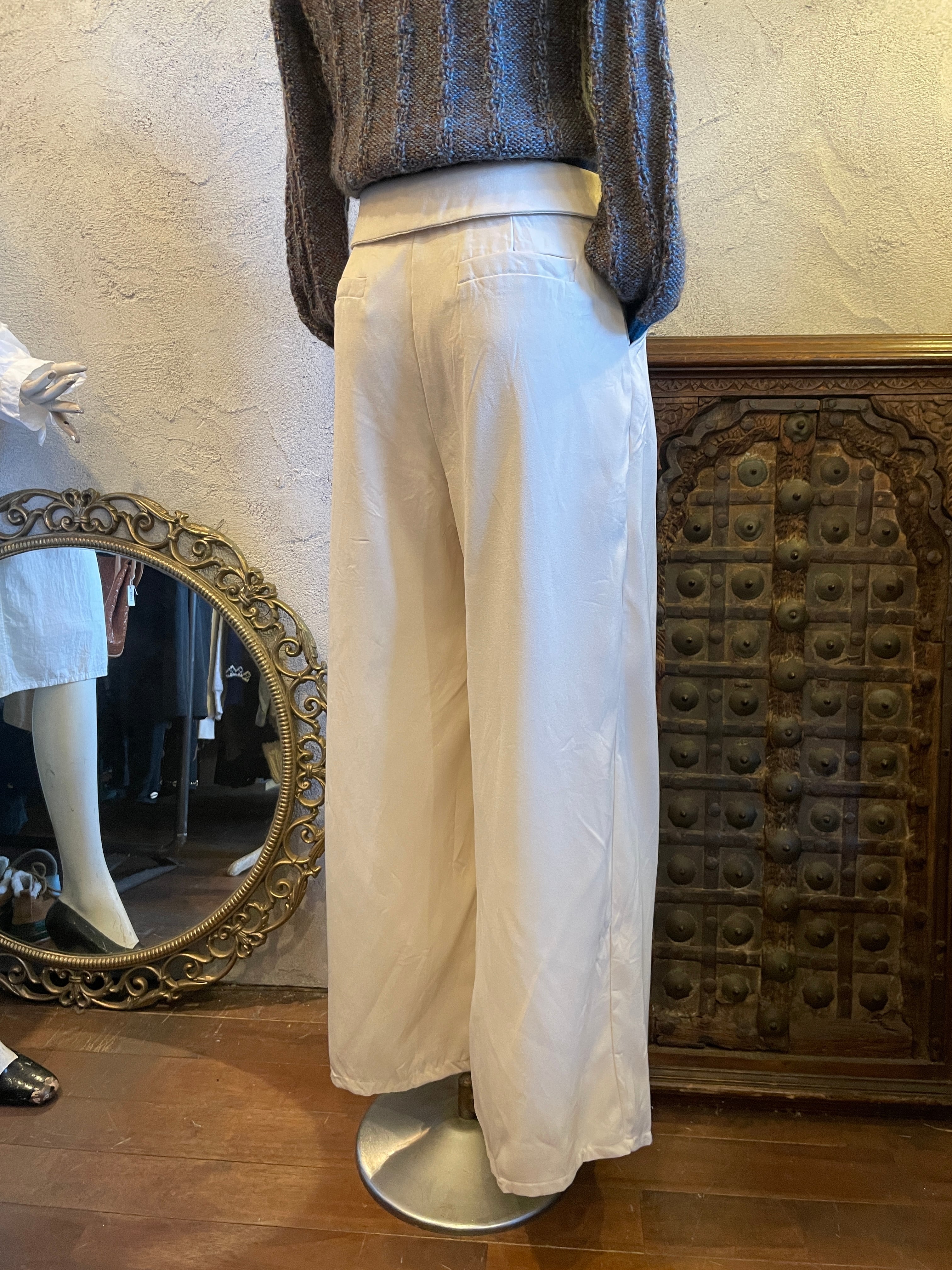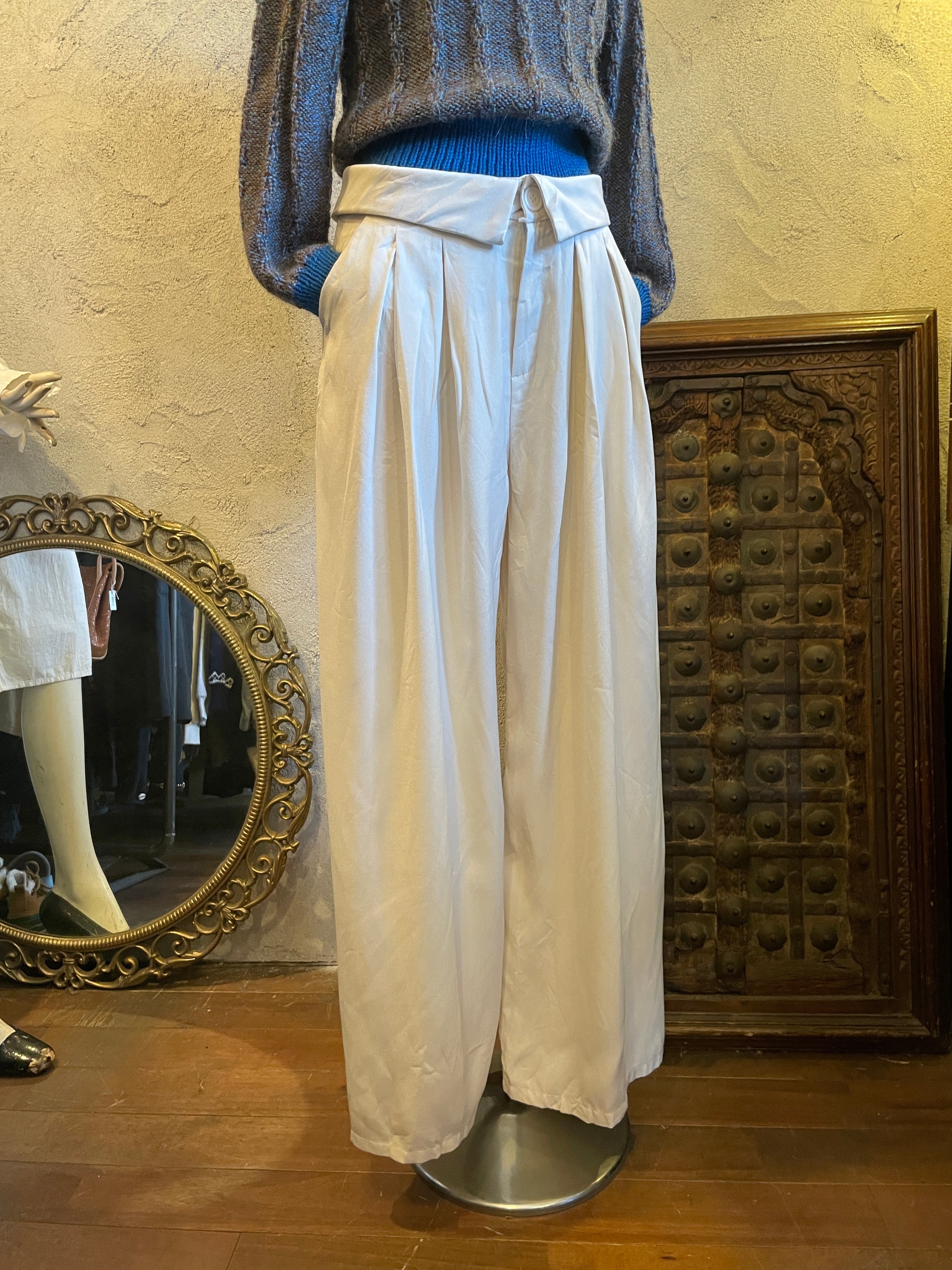 ホワイト タックワイドパンツ ボトムス ヴィンテージ 古着
