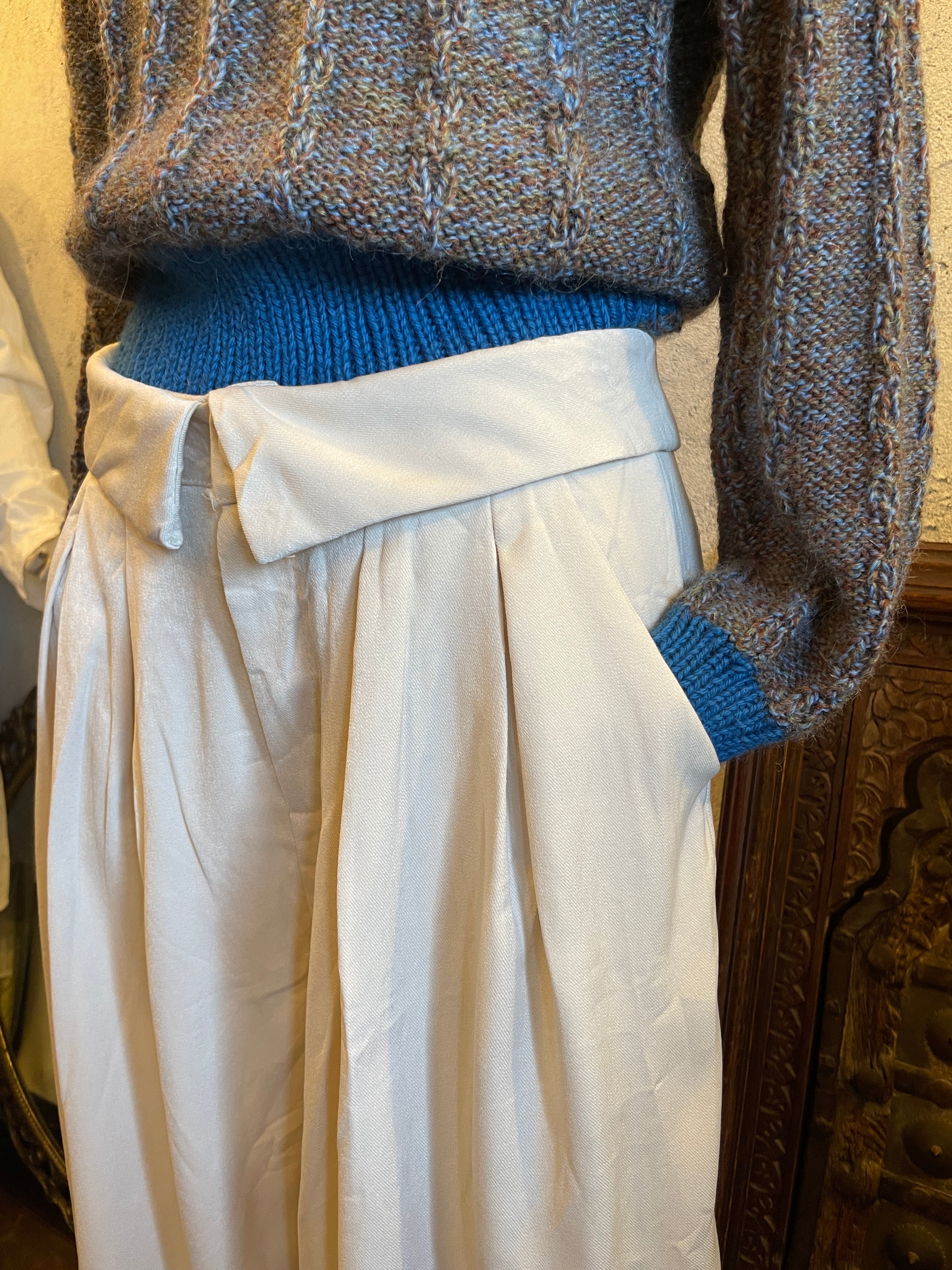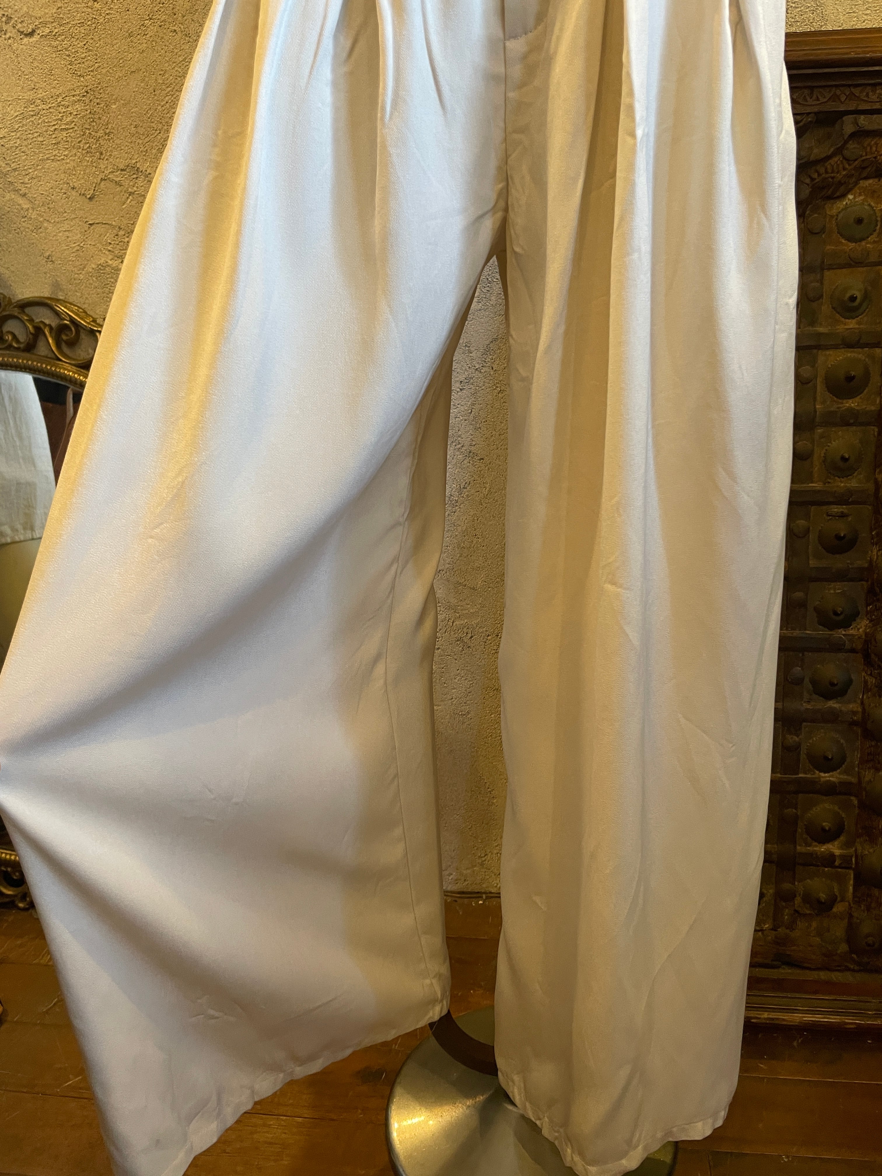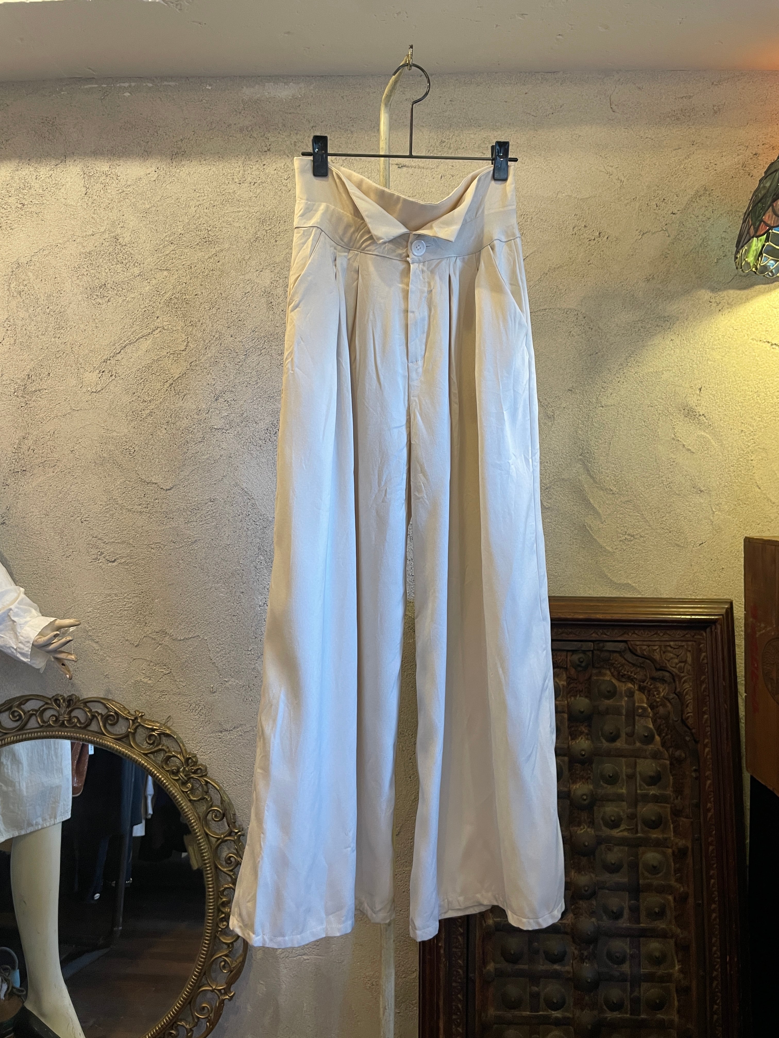 ホワイト タックワイドパンツ ボトムス ヴィンテージ 古着