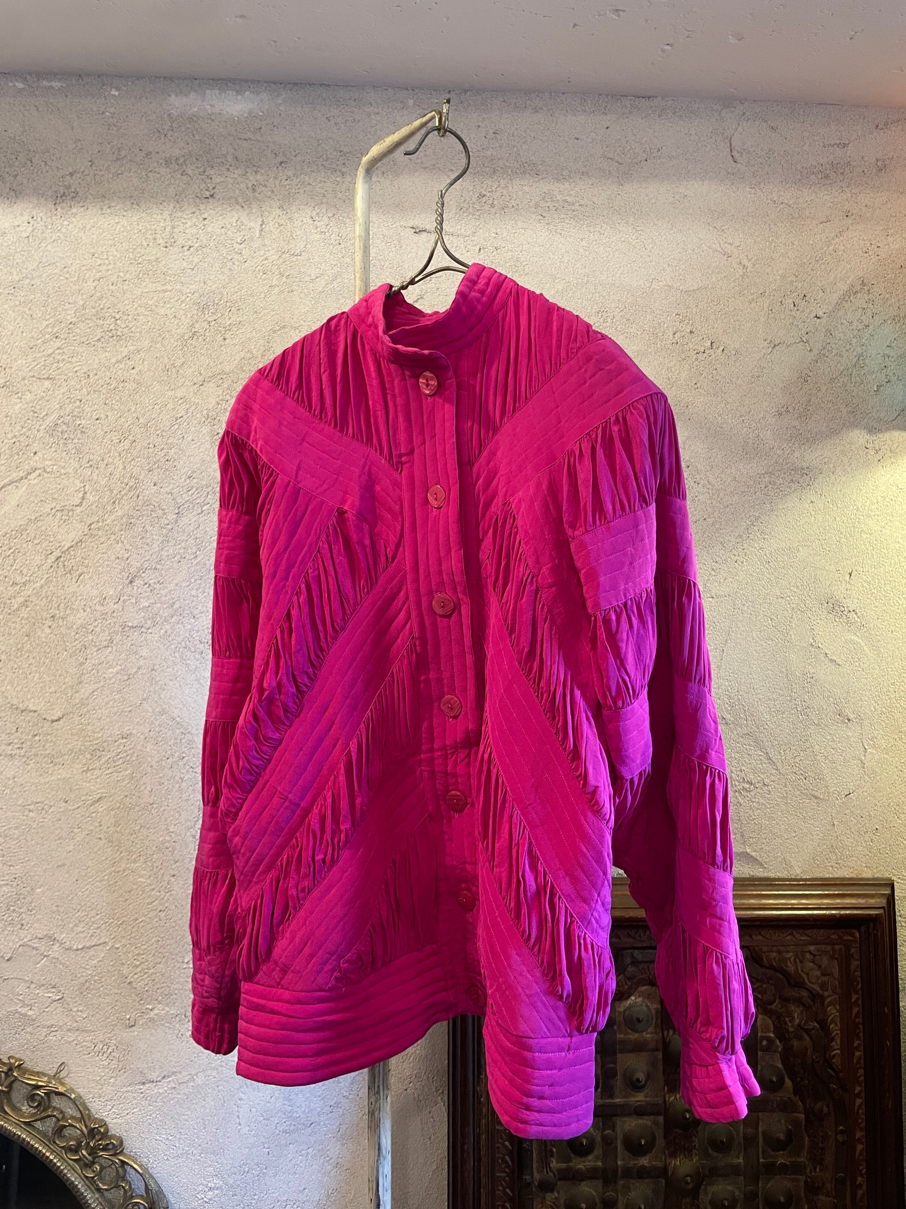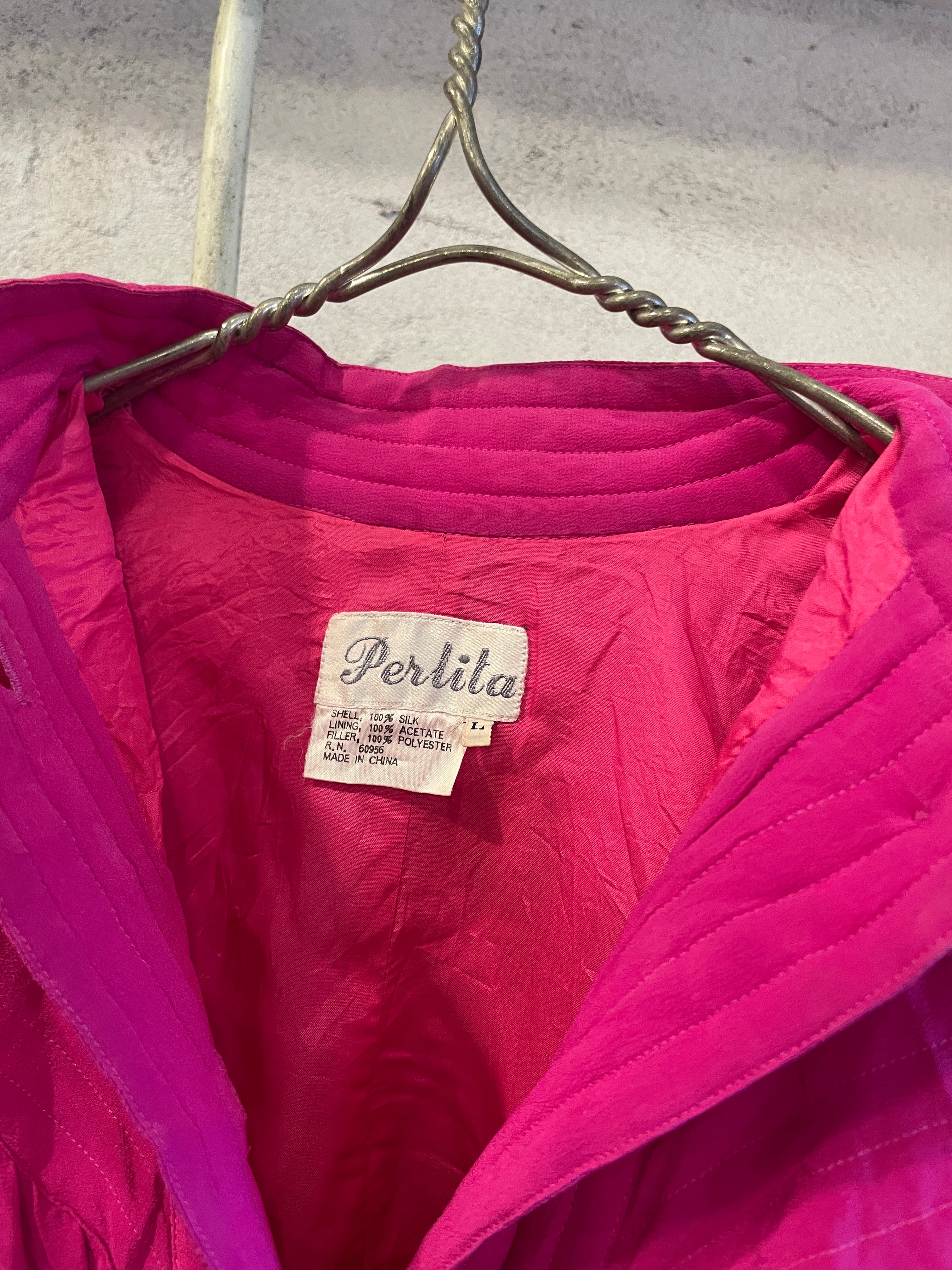 ピンク シルク シャーリング デザインジャケット ヴィンテージ 古着