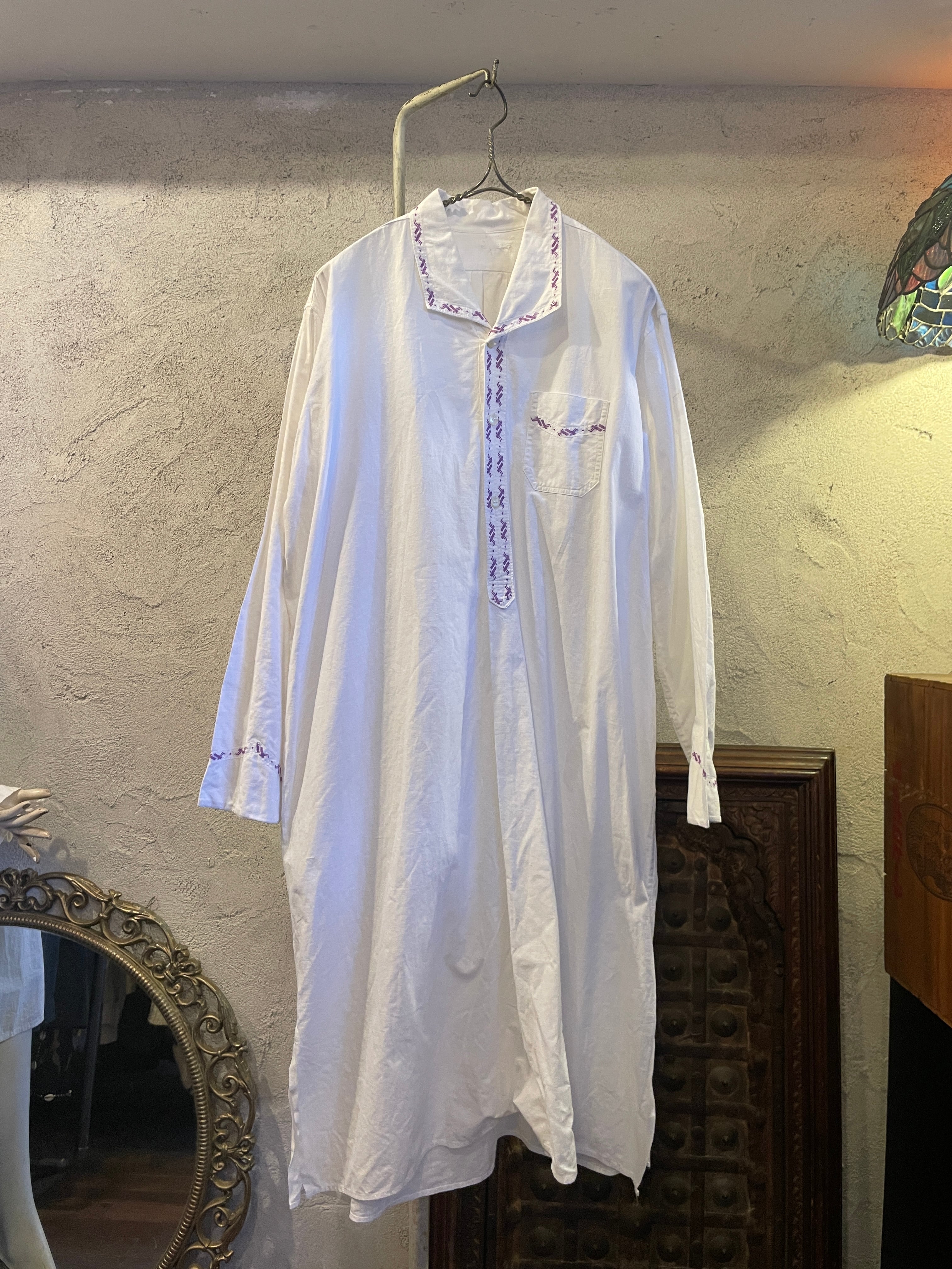 スリーピング ロングシャツ パープル刺繍 ヴィンテージ 古着