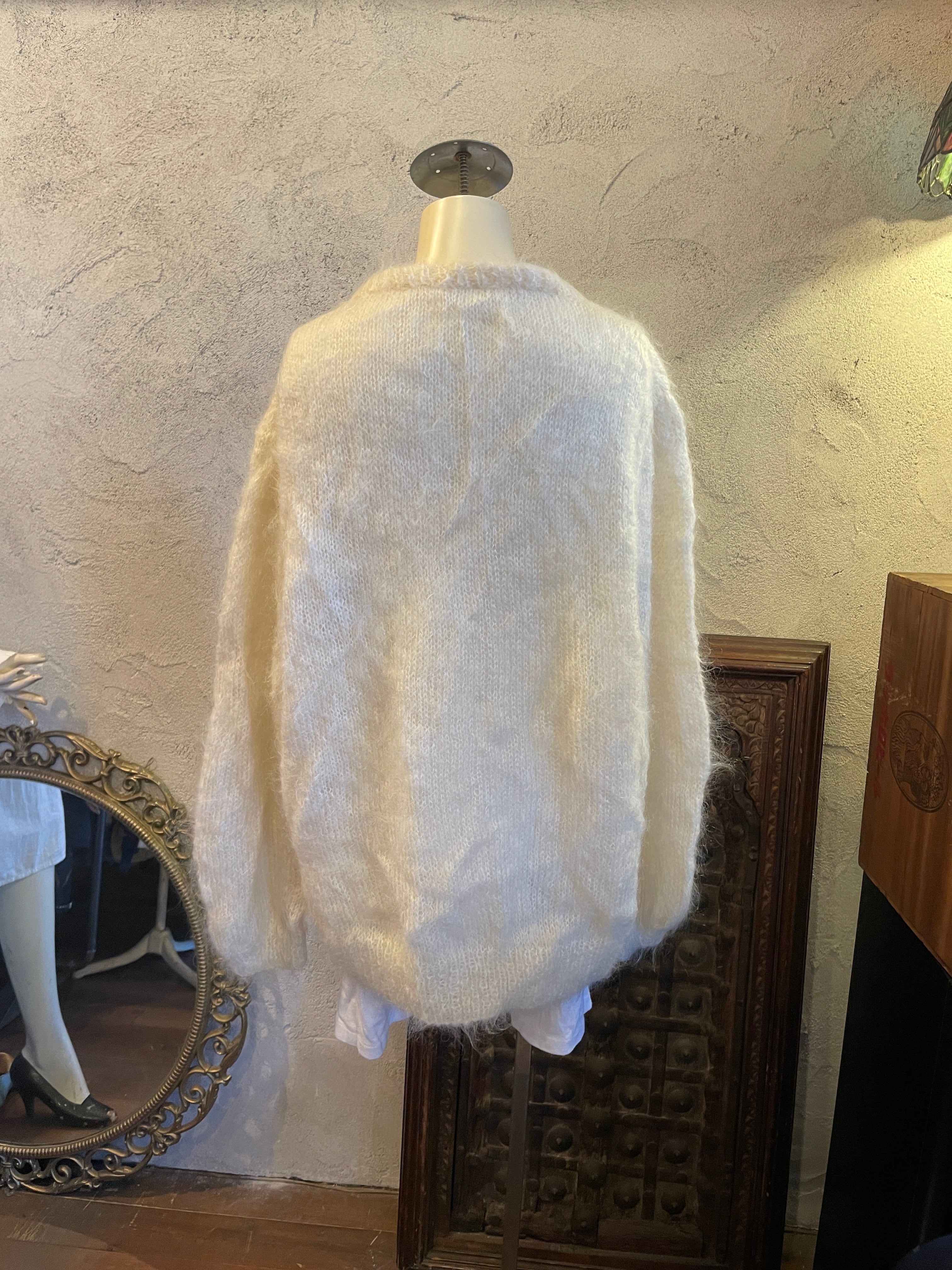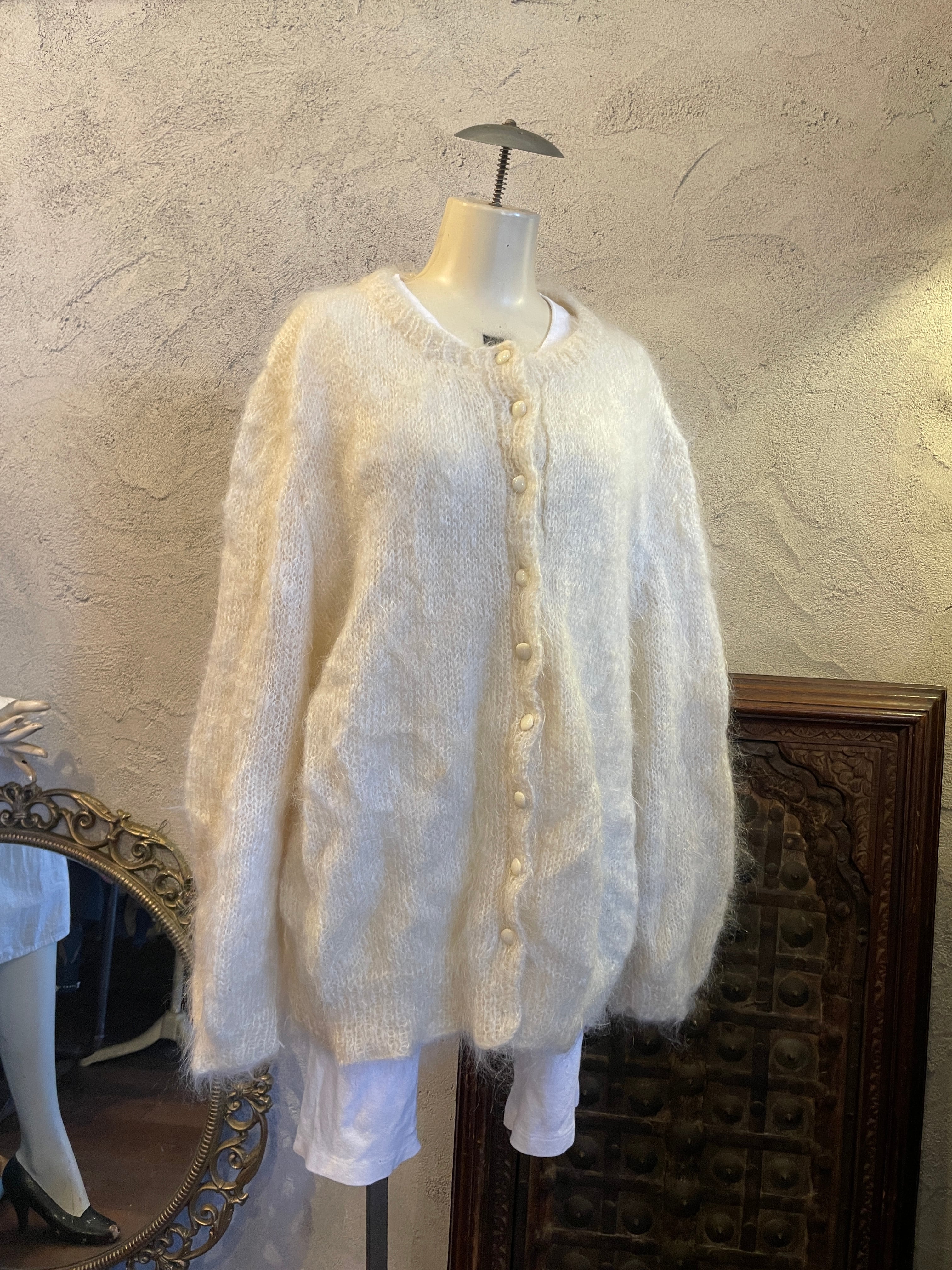 モヘア ホワイト ニット カーディガン ヴィンテージ 古着