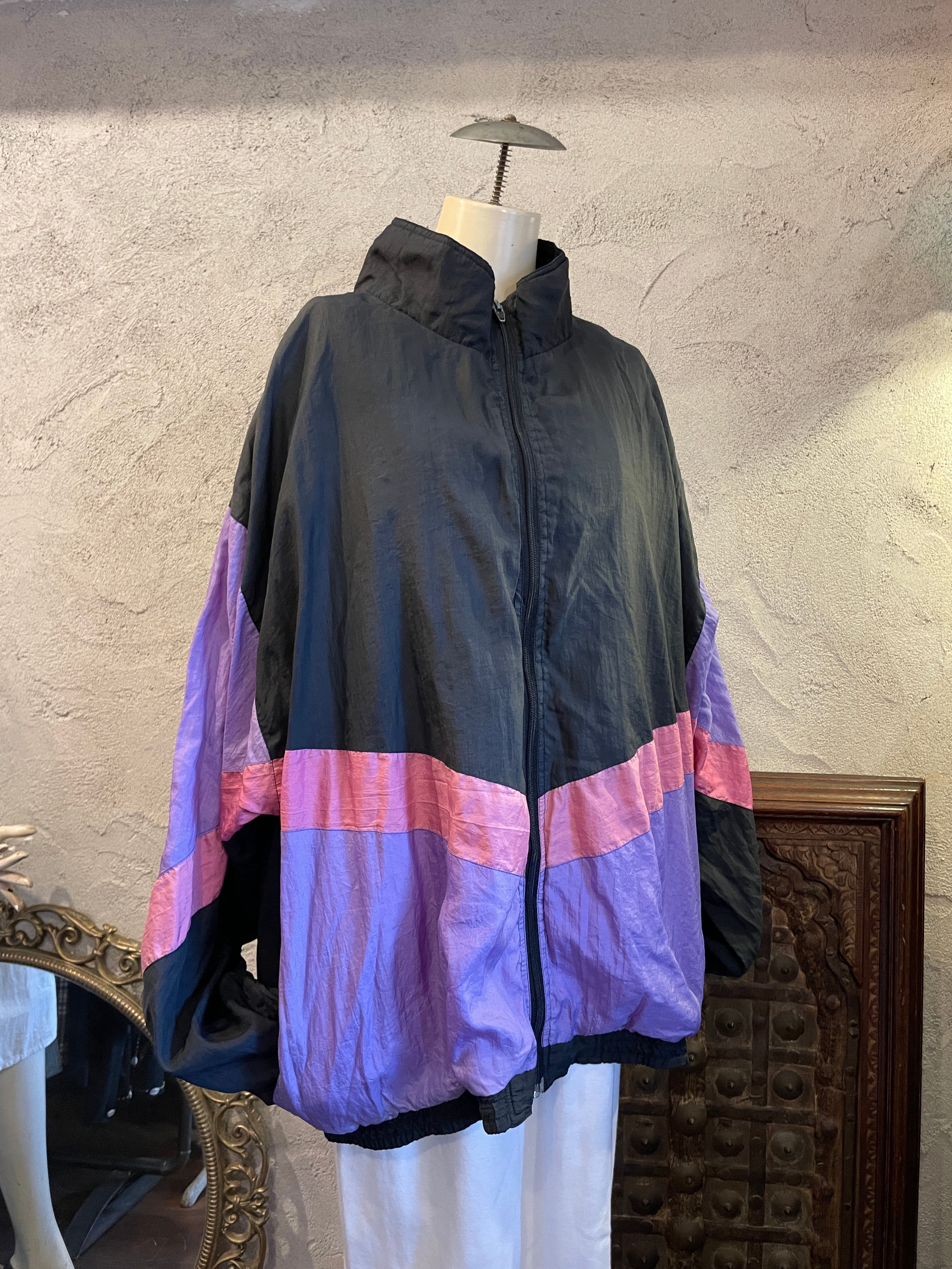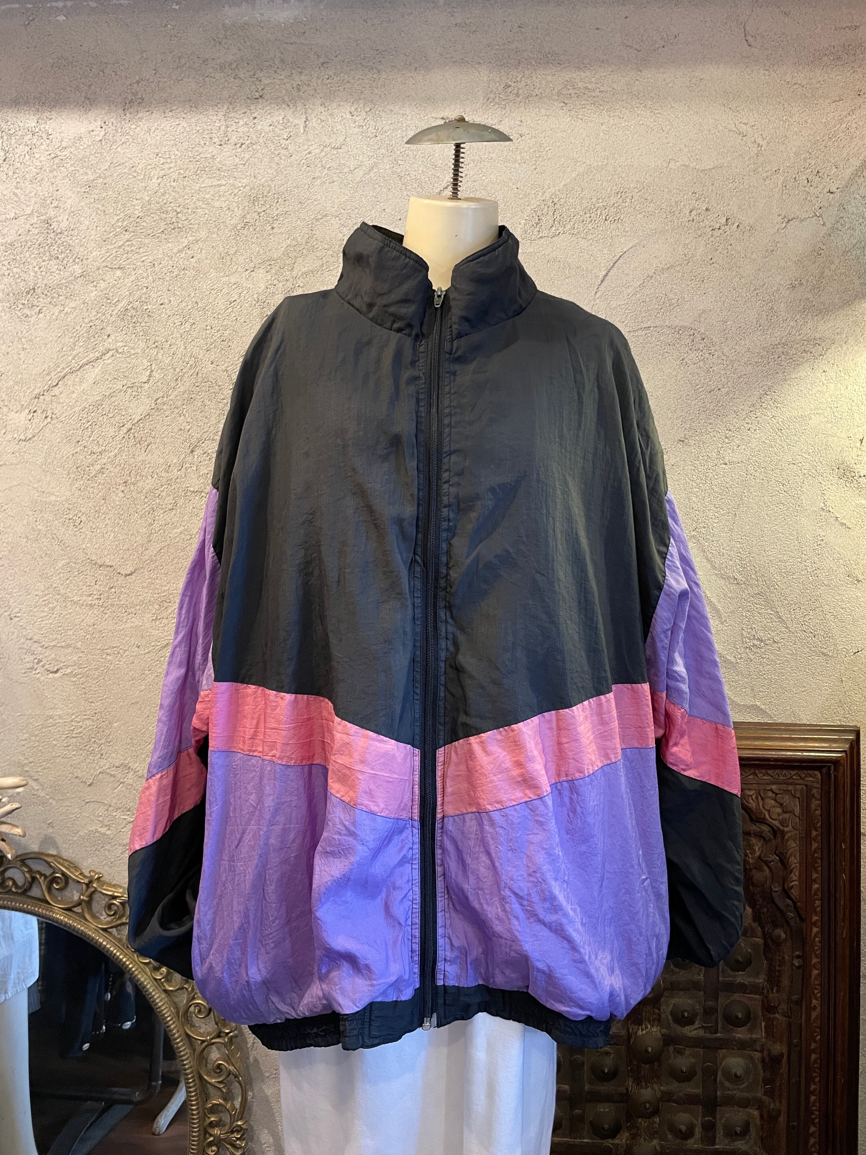 ブラック×ピンクパープル ナイロンジャケット ヴィンテージ 古着