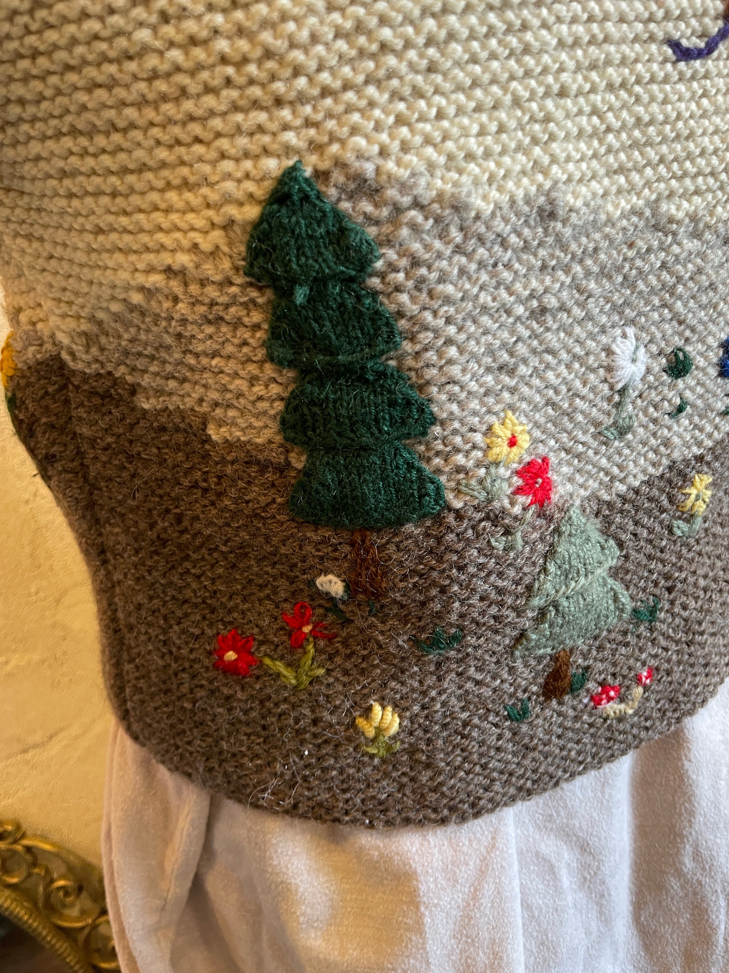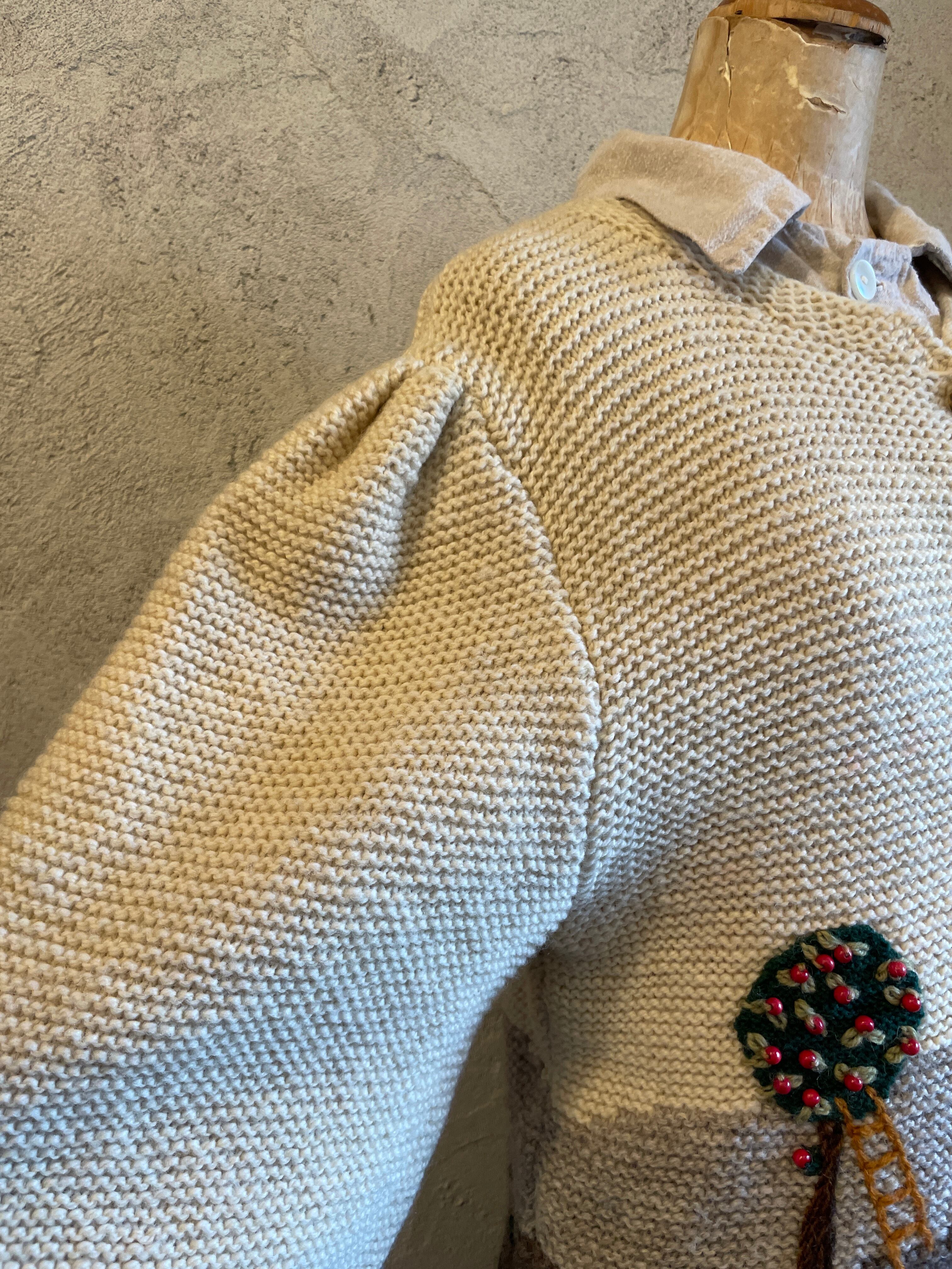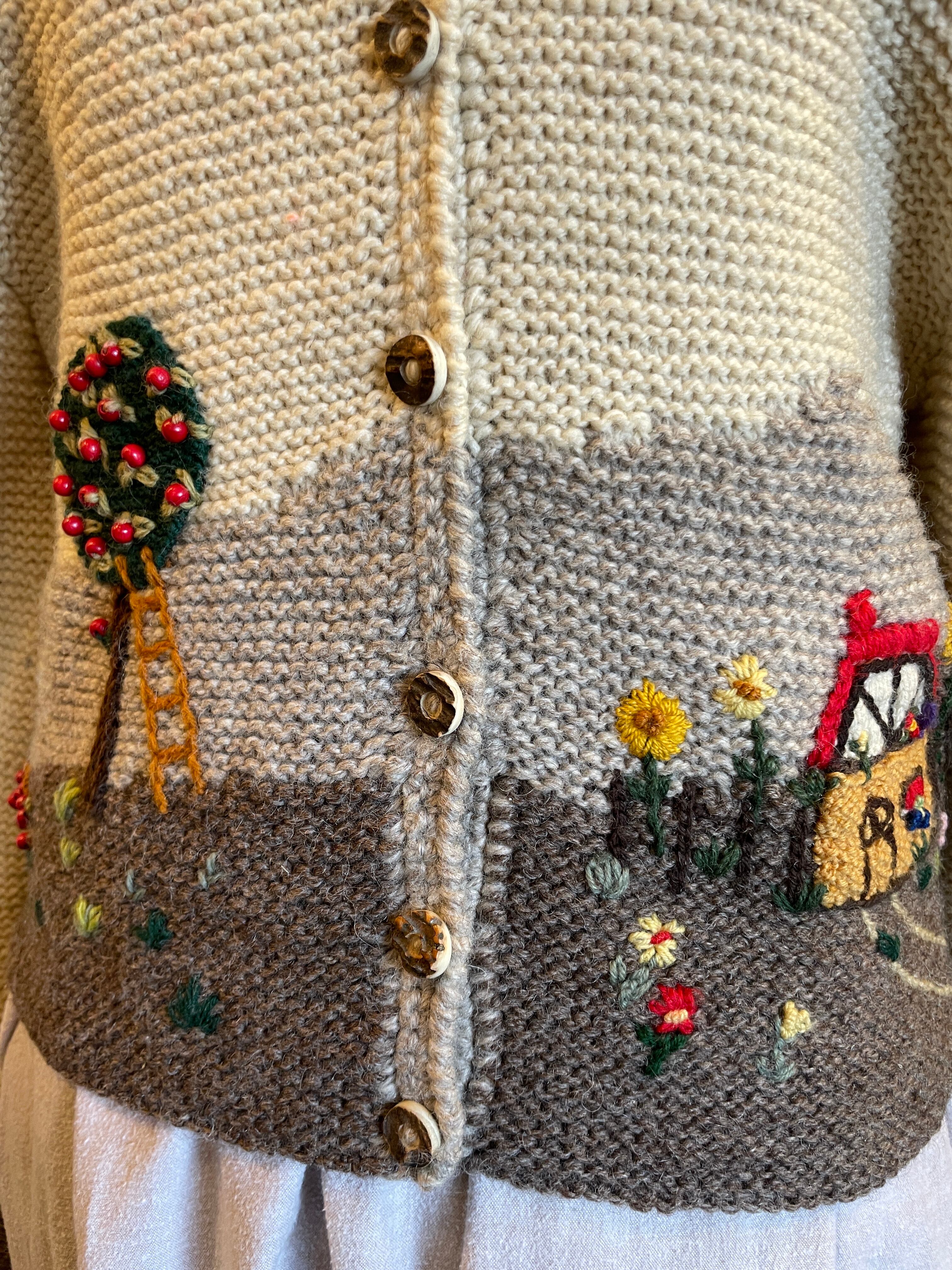 ハンドニット チロルカーディガン 風景柄 刺繍 ビーズ ヴィンテージ 古着