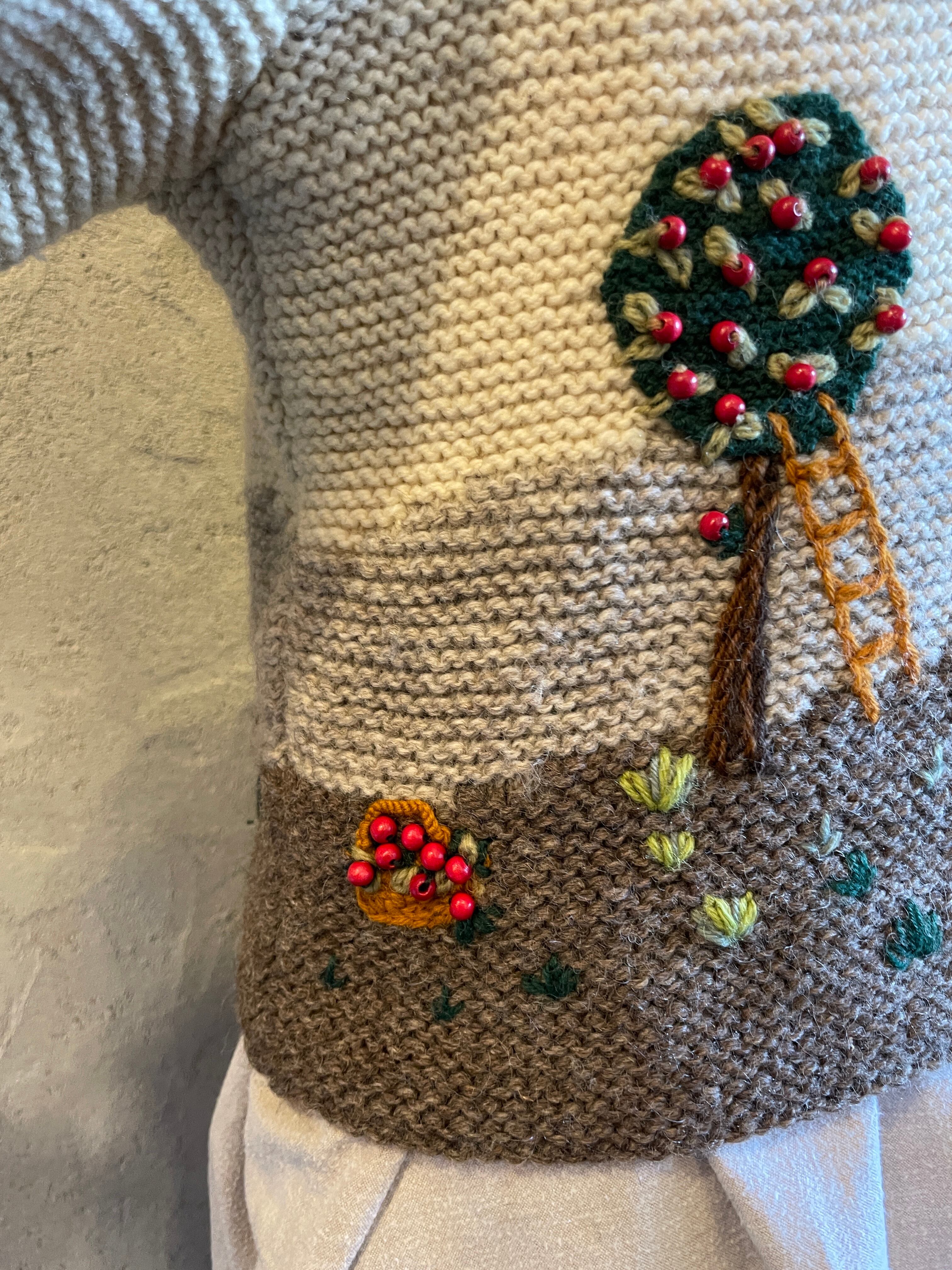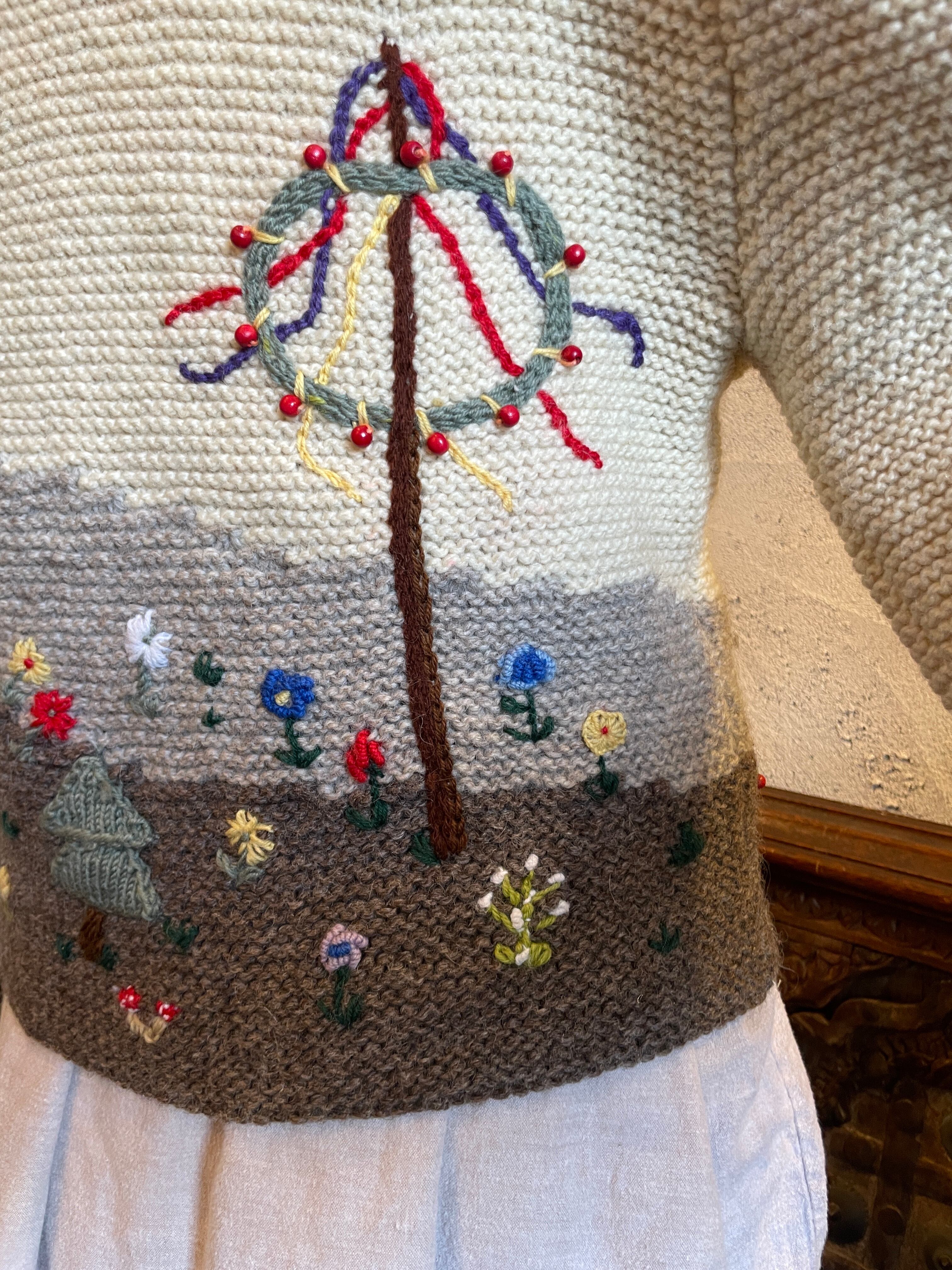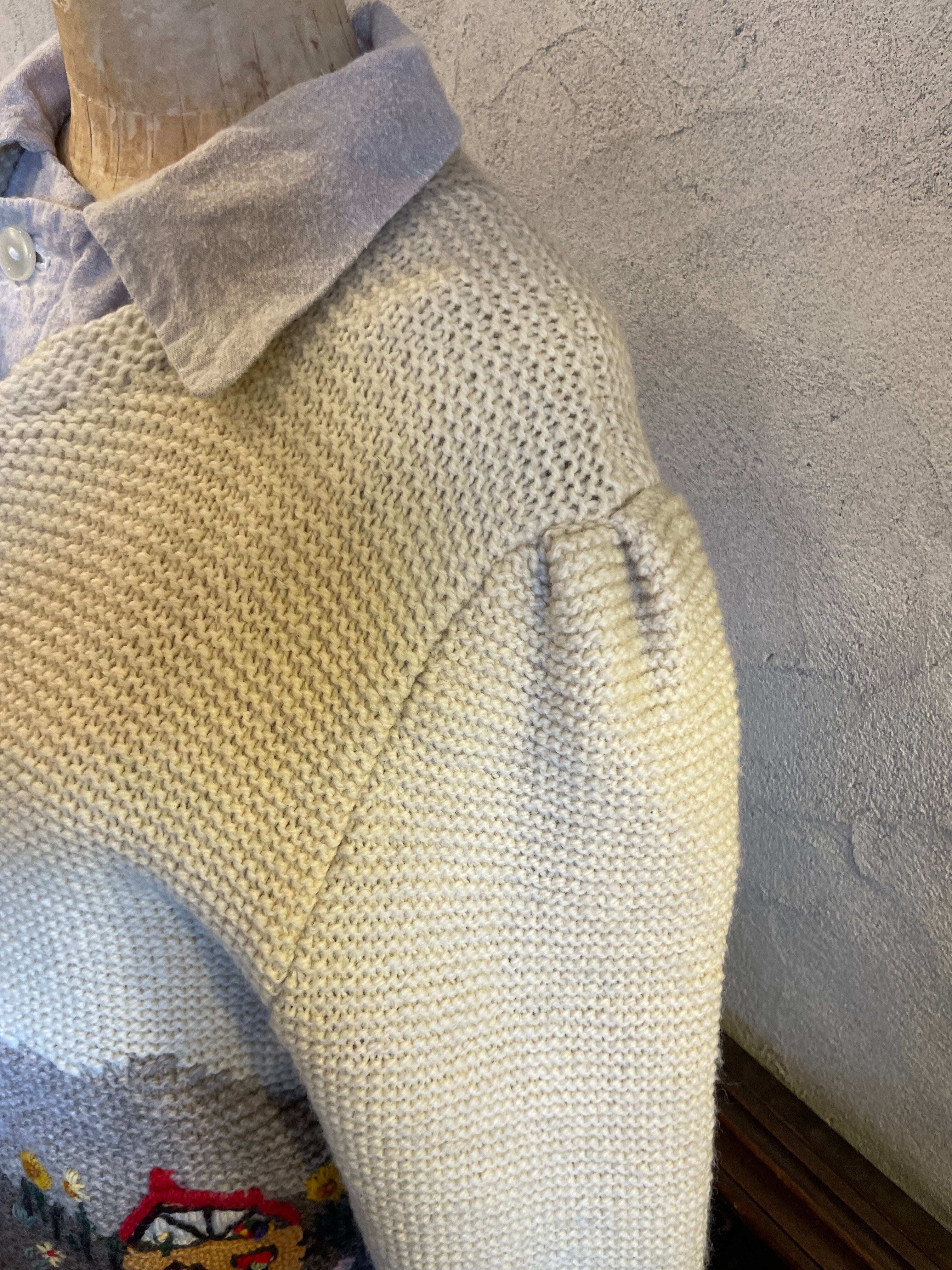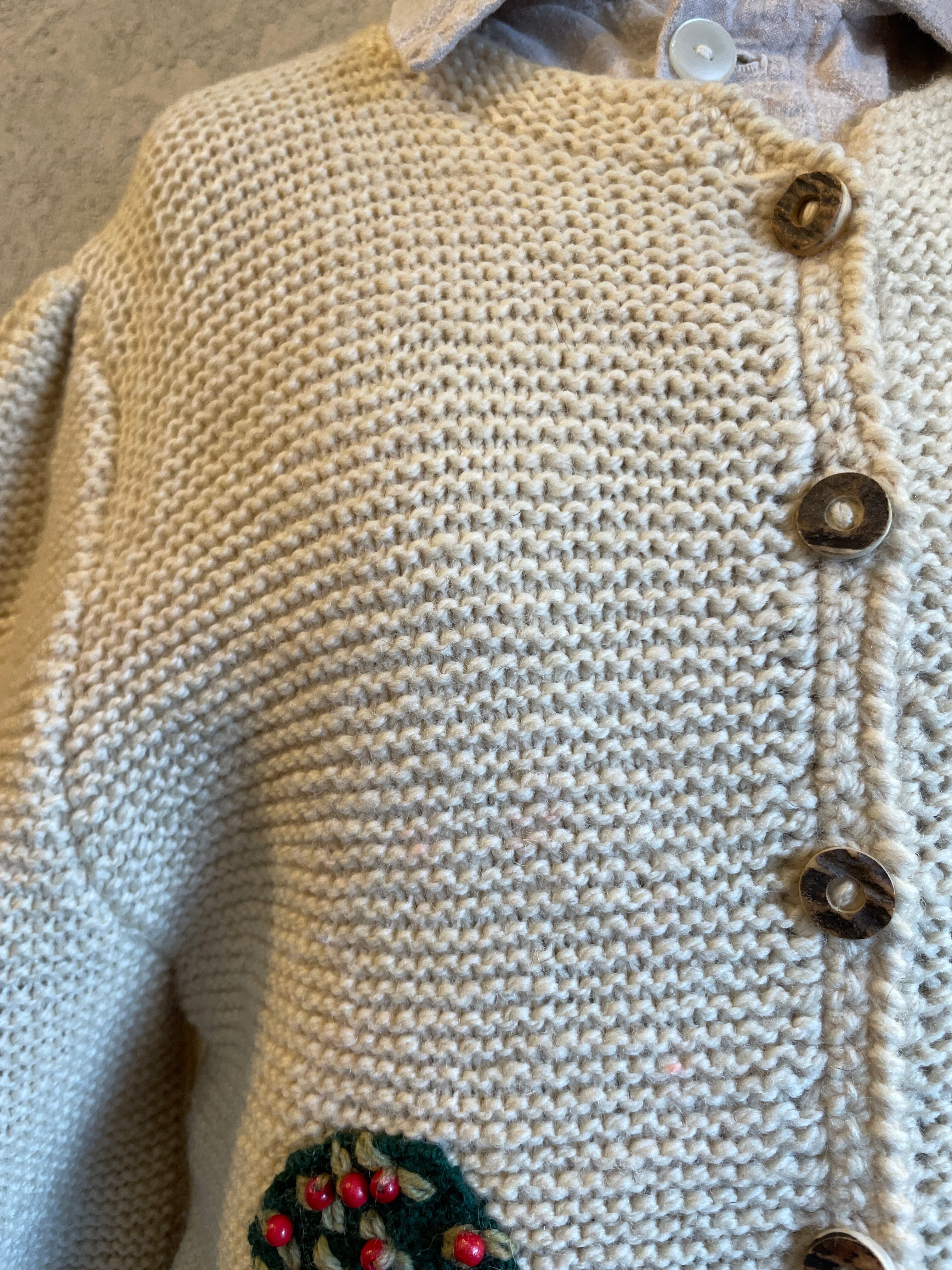 ハンドニット チロルカーディガン 風景柄 刺繍 ビーズ ヴィンテージ 古着