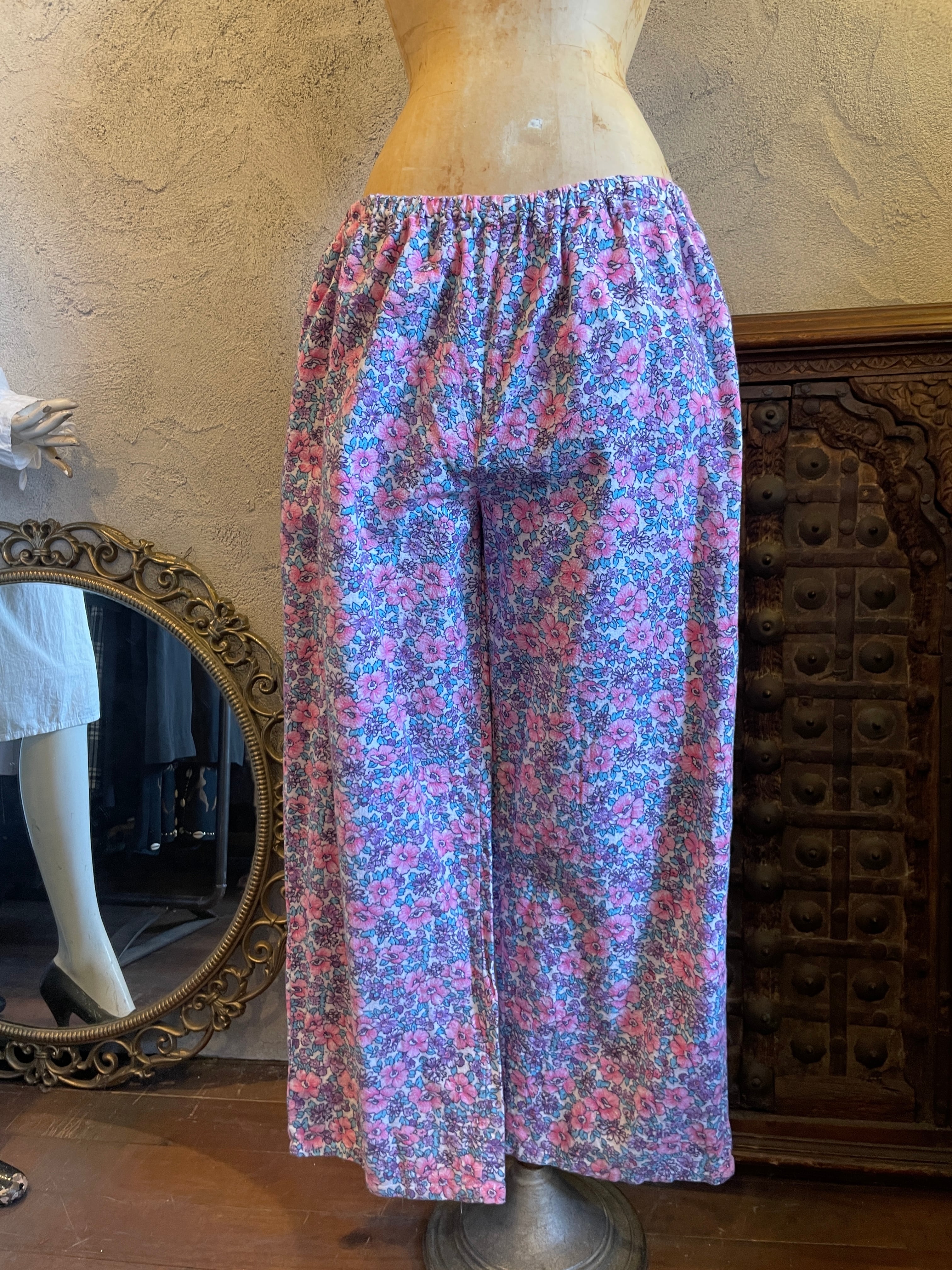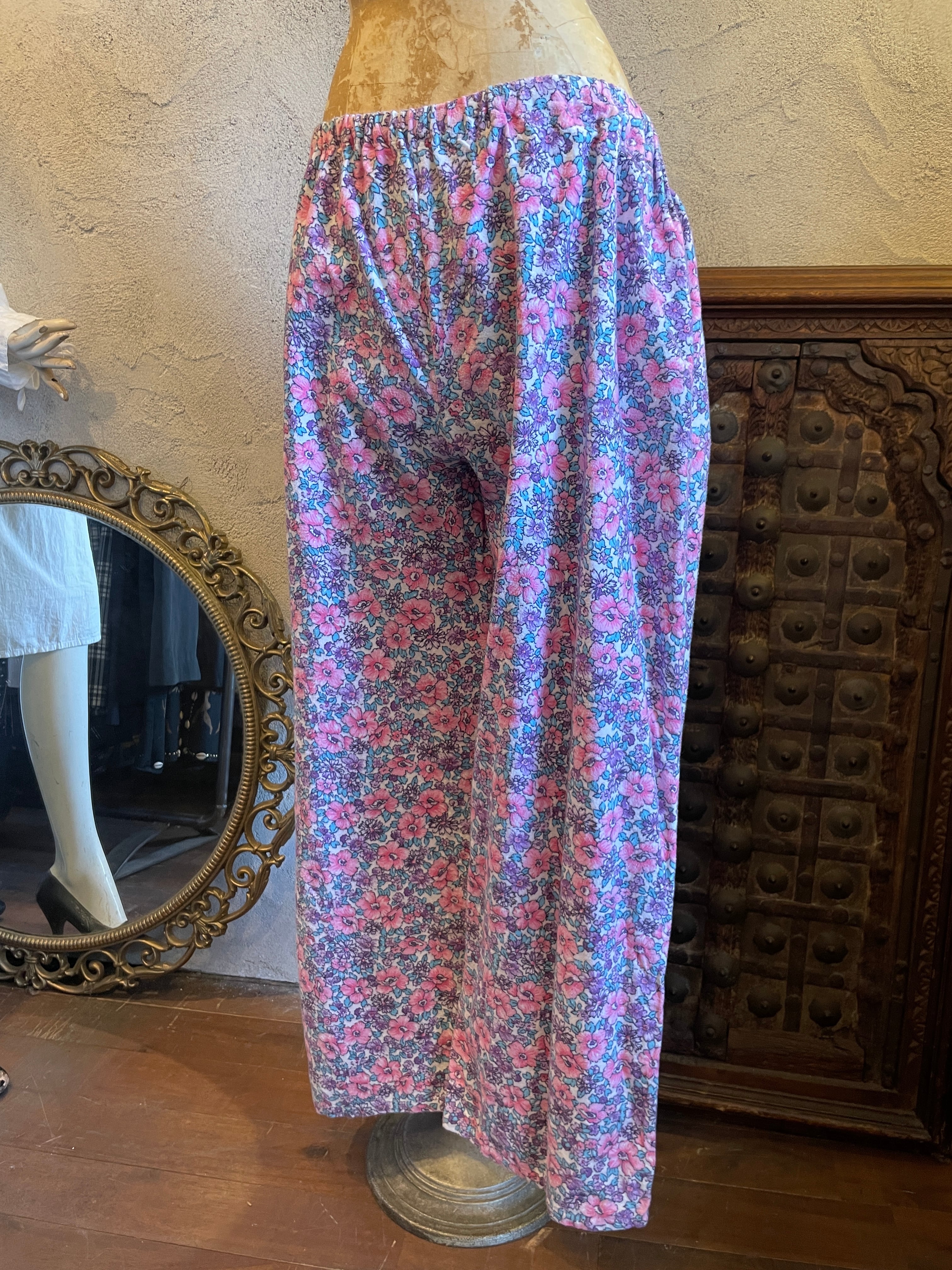 総花柄 フラワープリント イージーパンツ パジャマパンツボトムス ヴィンテージ 古着