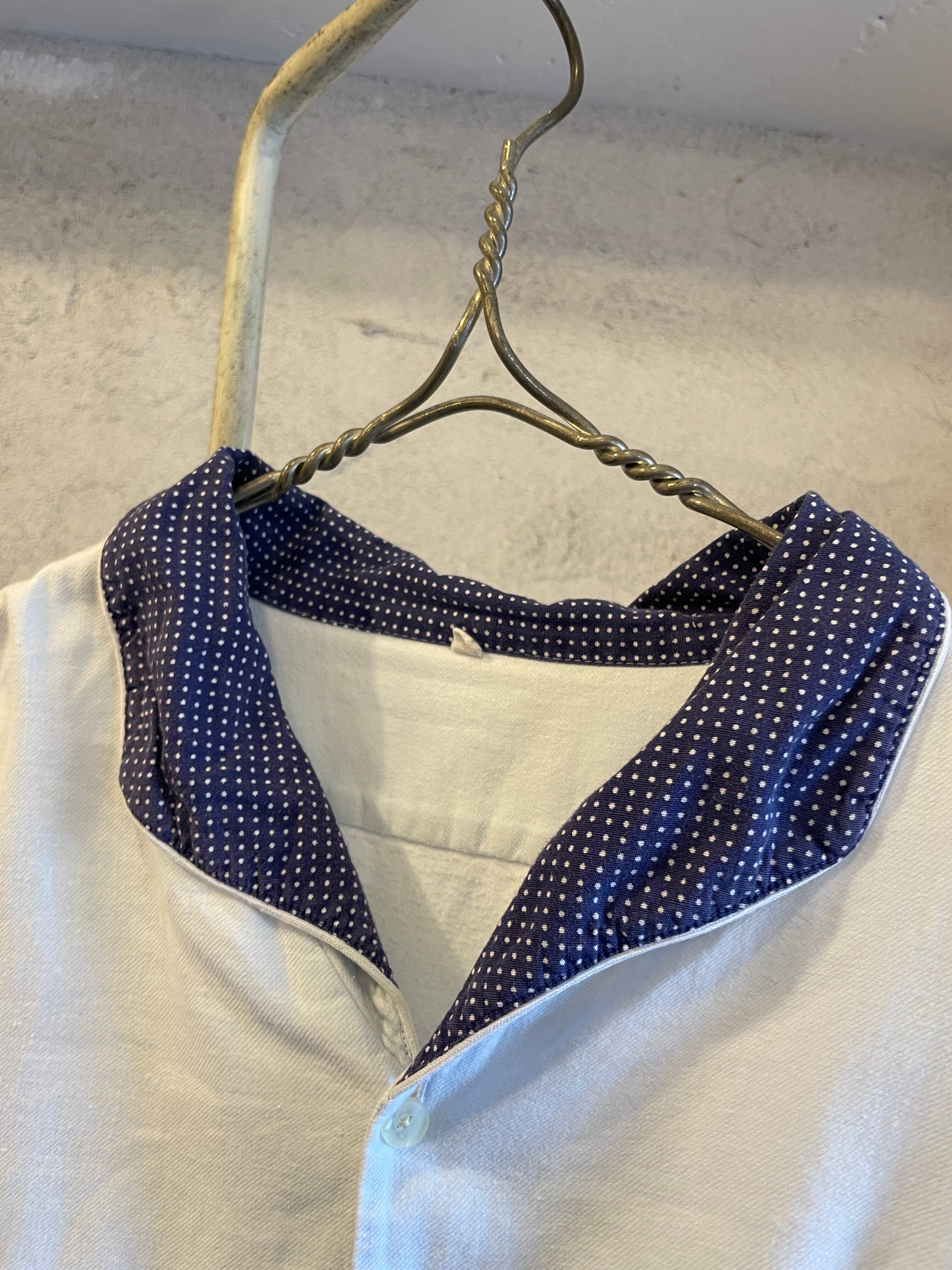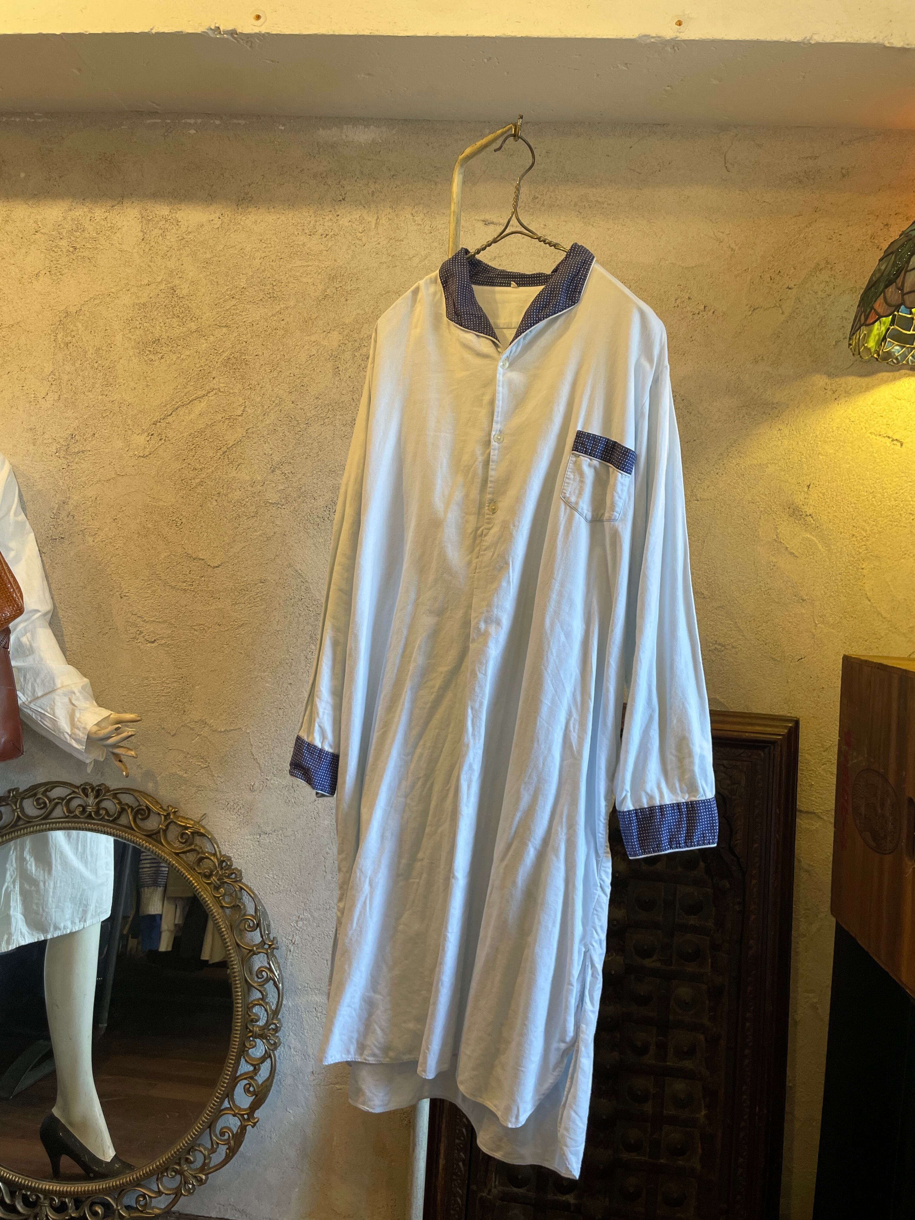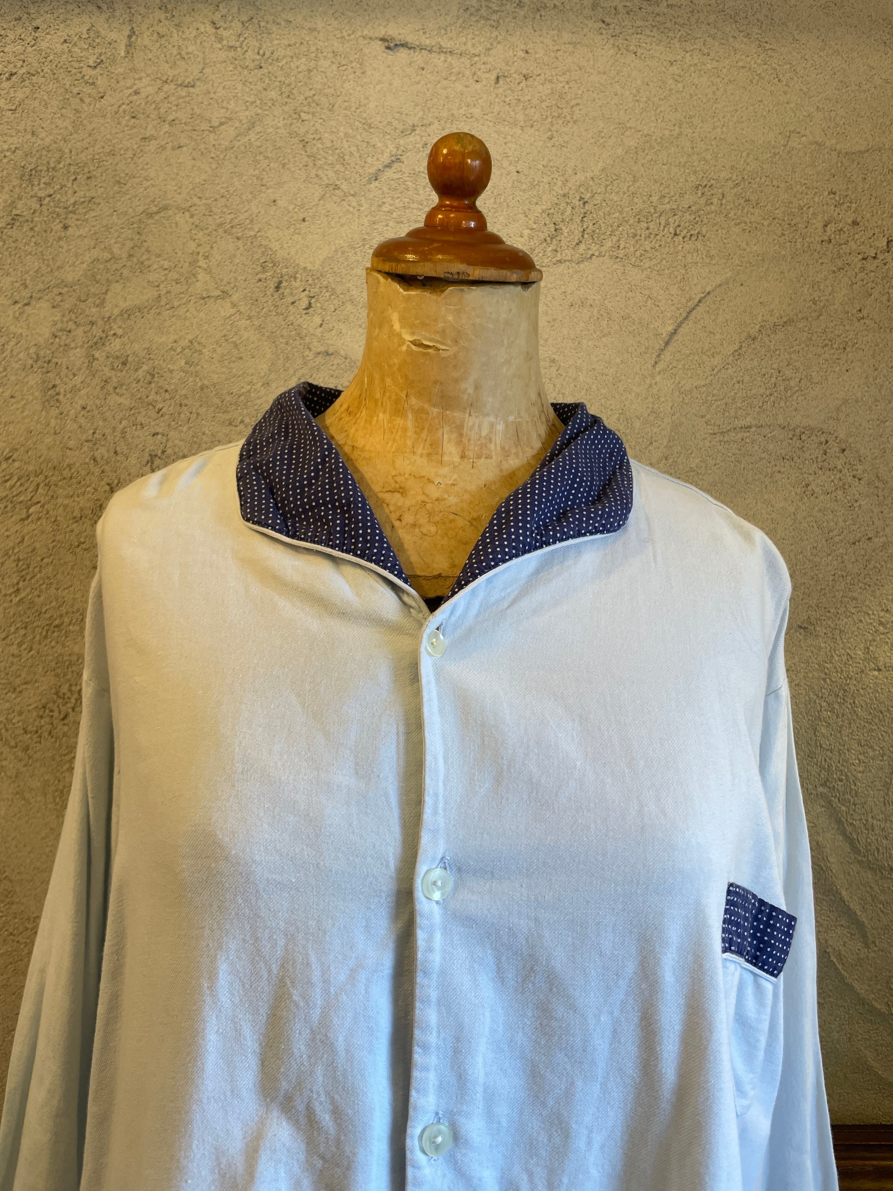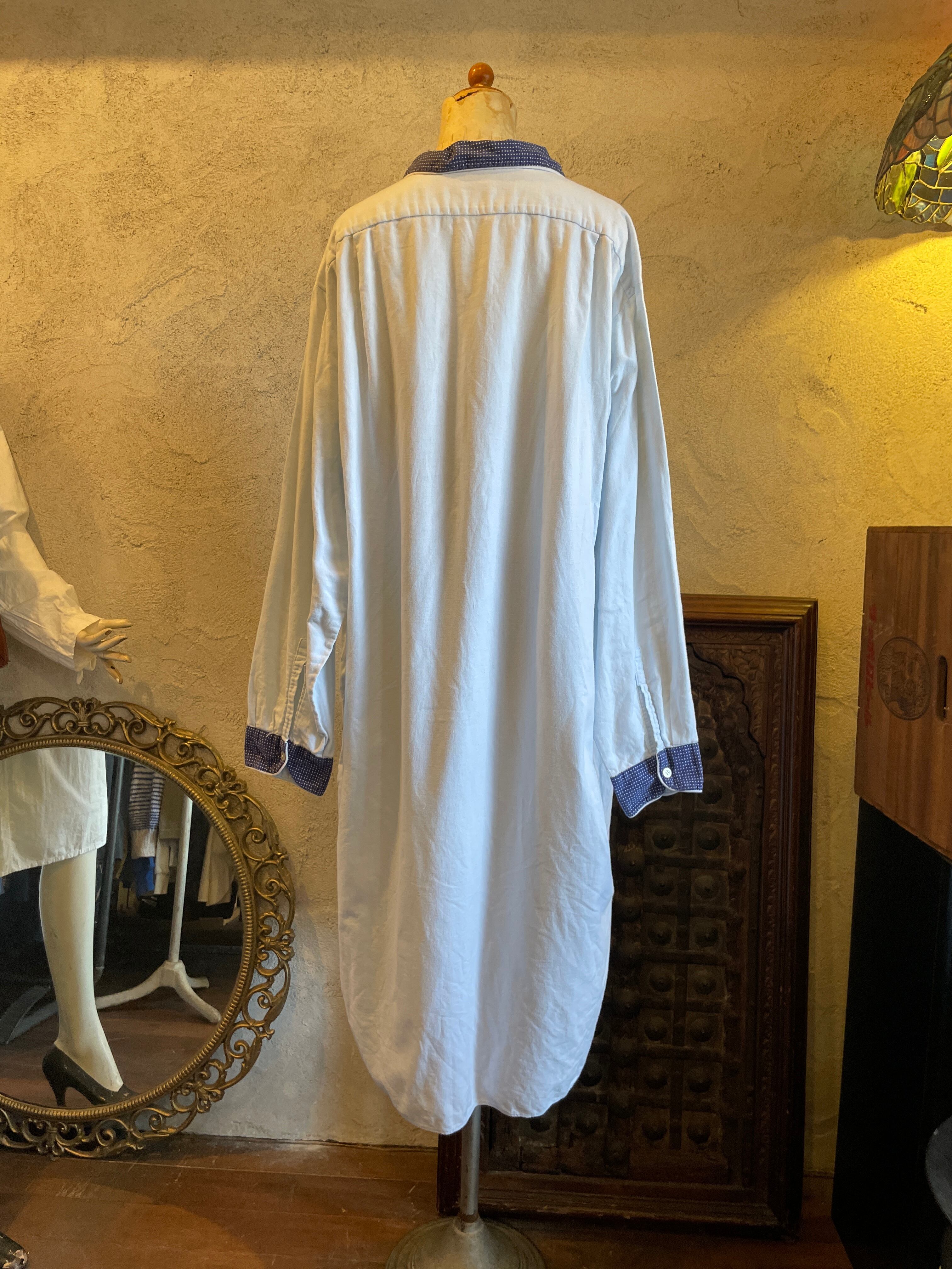 襟水玉 ドット スリーピング ロングシャツ グランパシャツ ヴィンテージ 古着