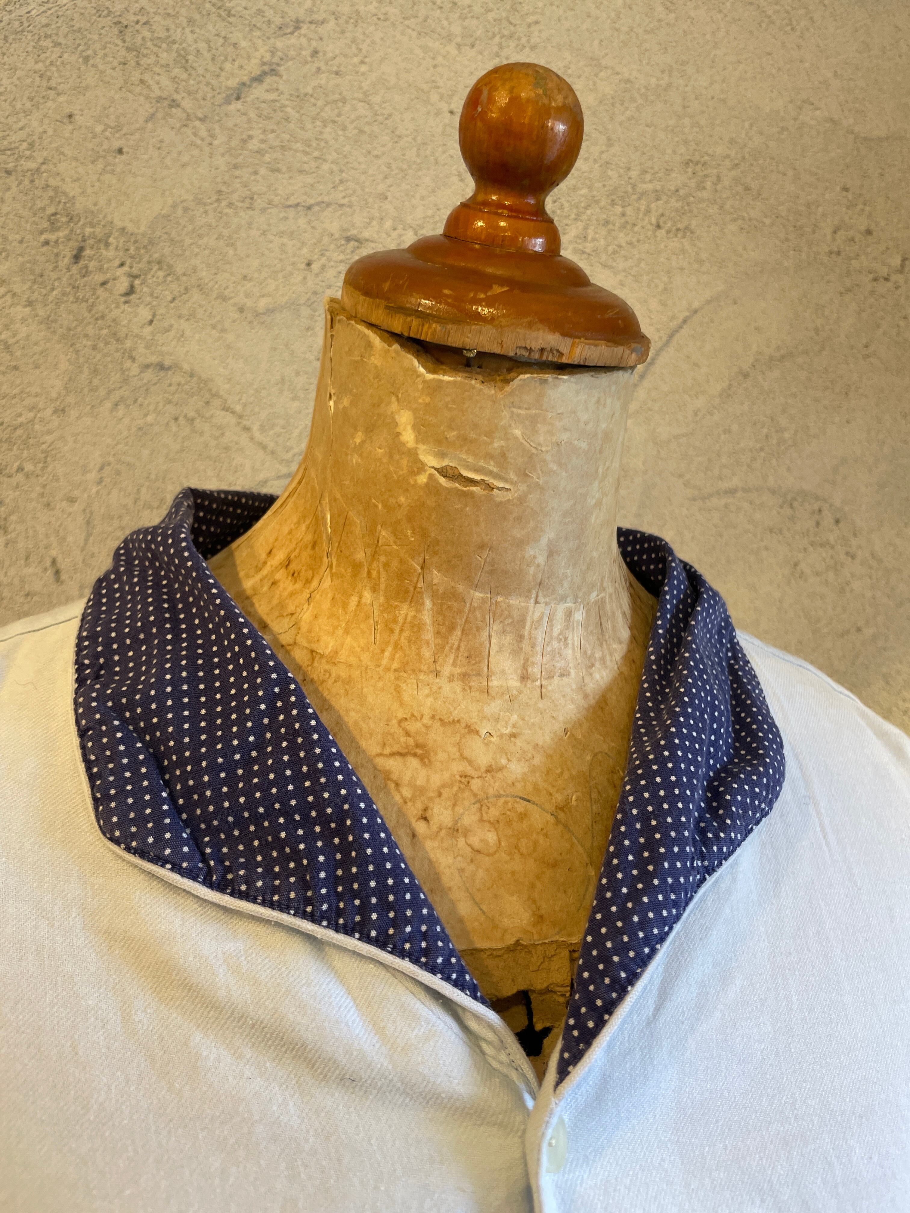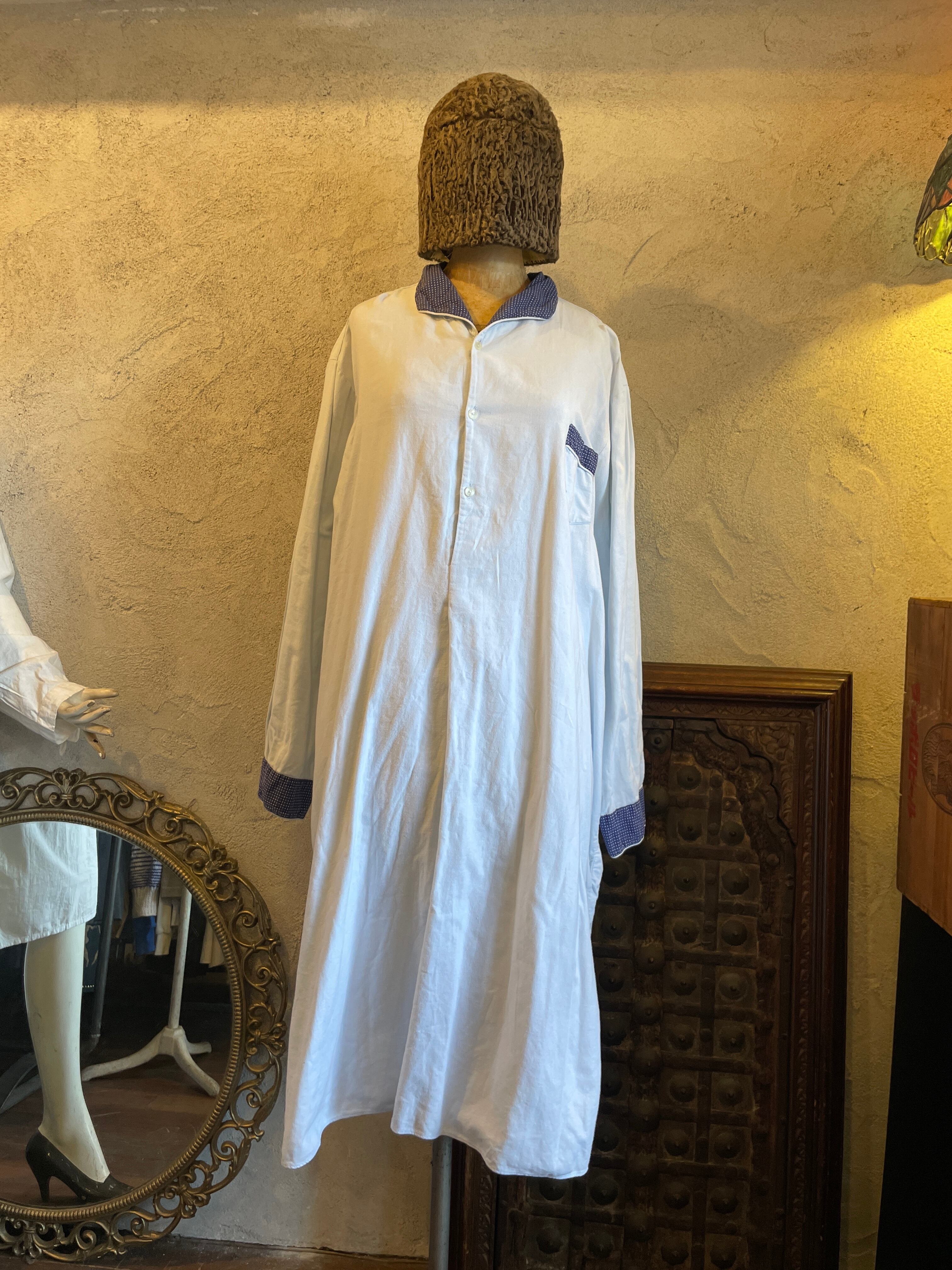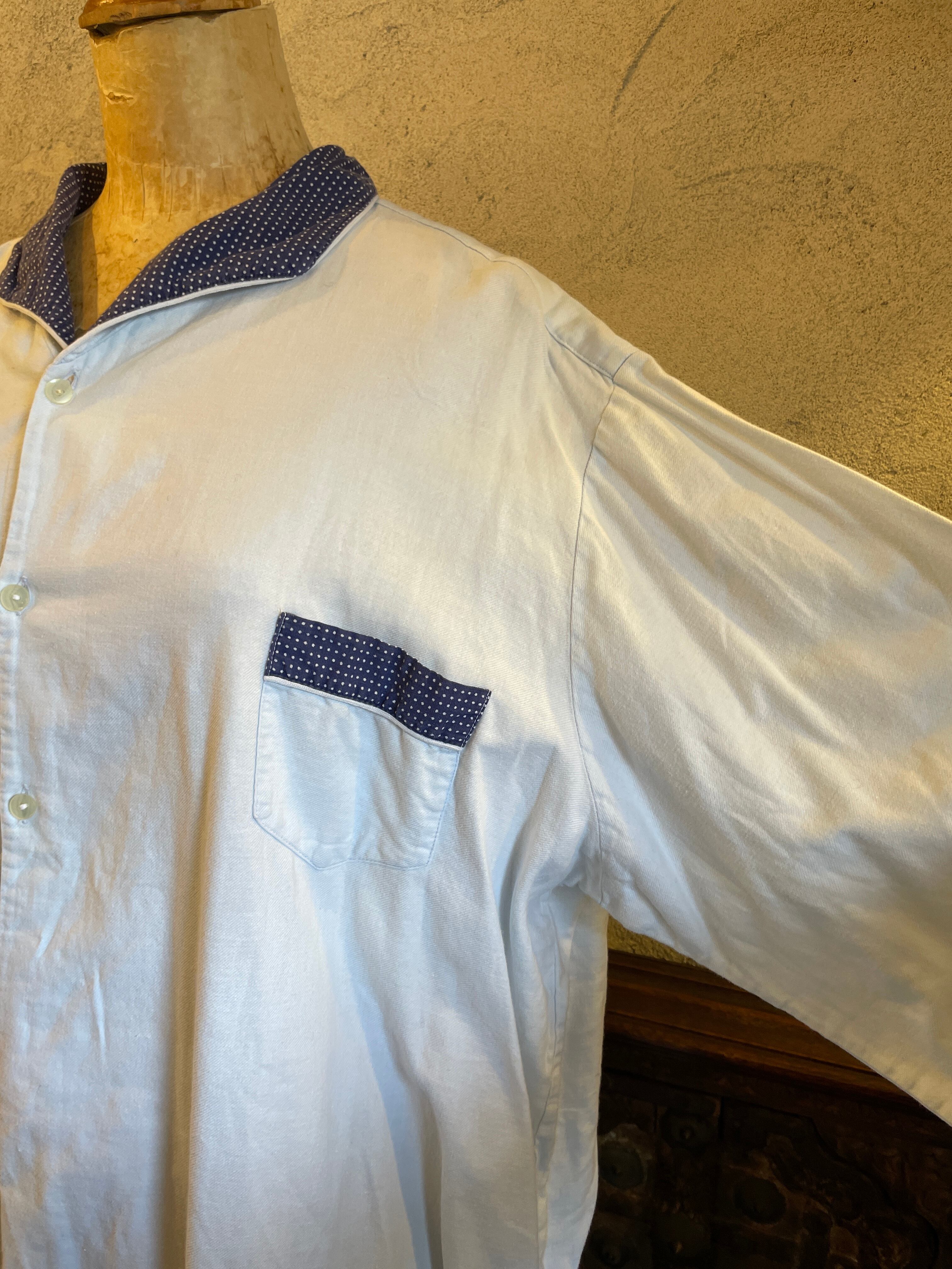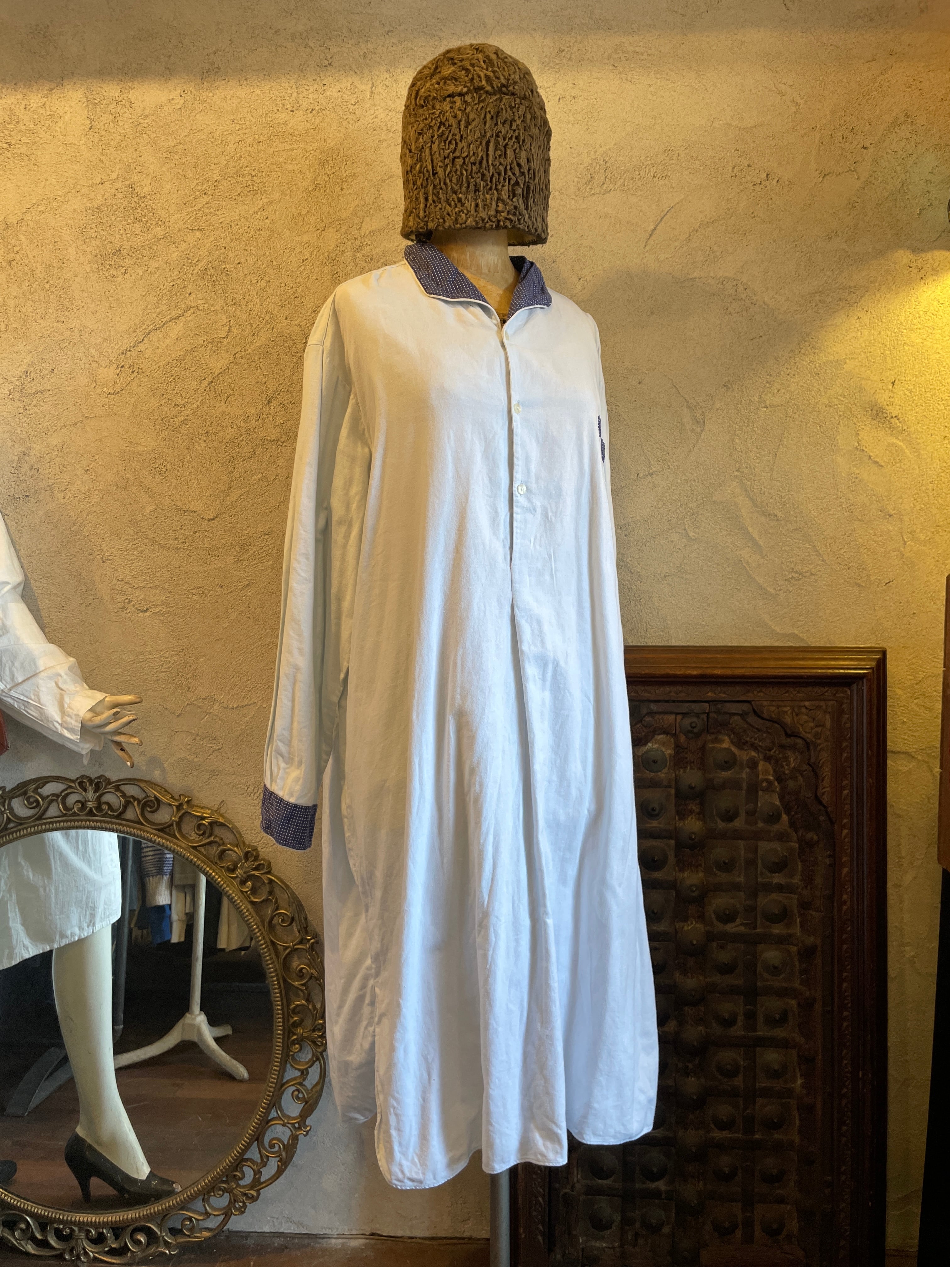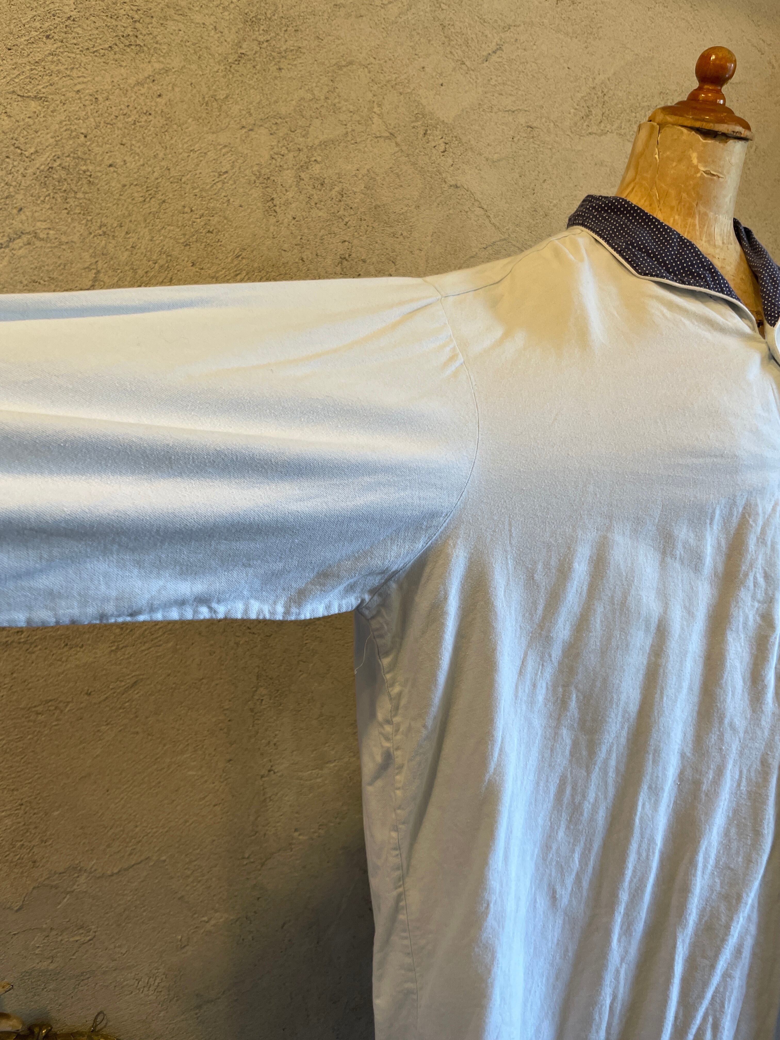 襟水玉 ドット スリーピング ロングシャツ グランパシャツ ヴィンテージ 古着