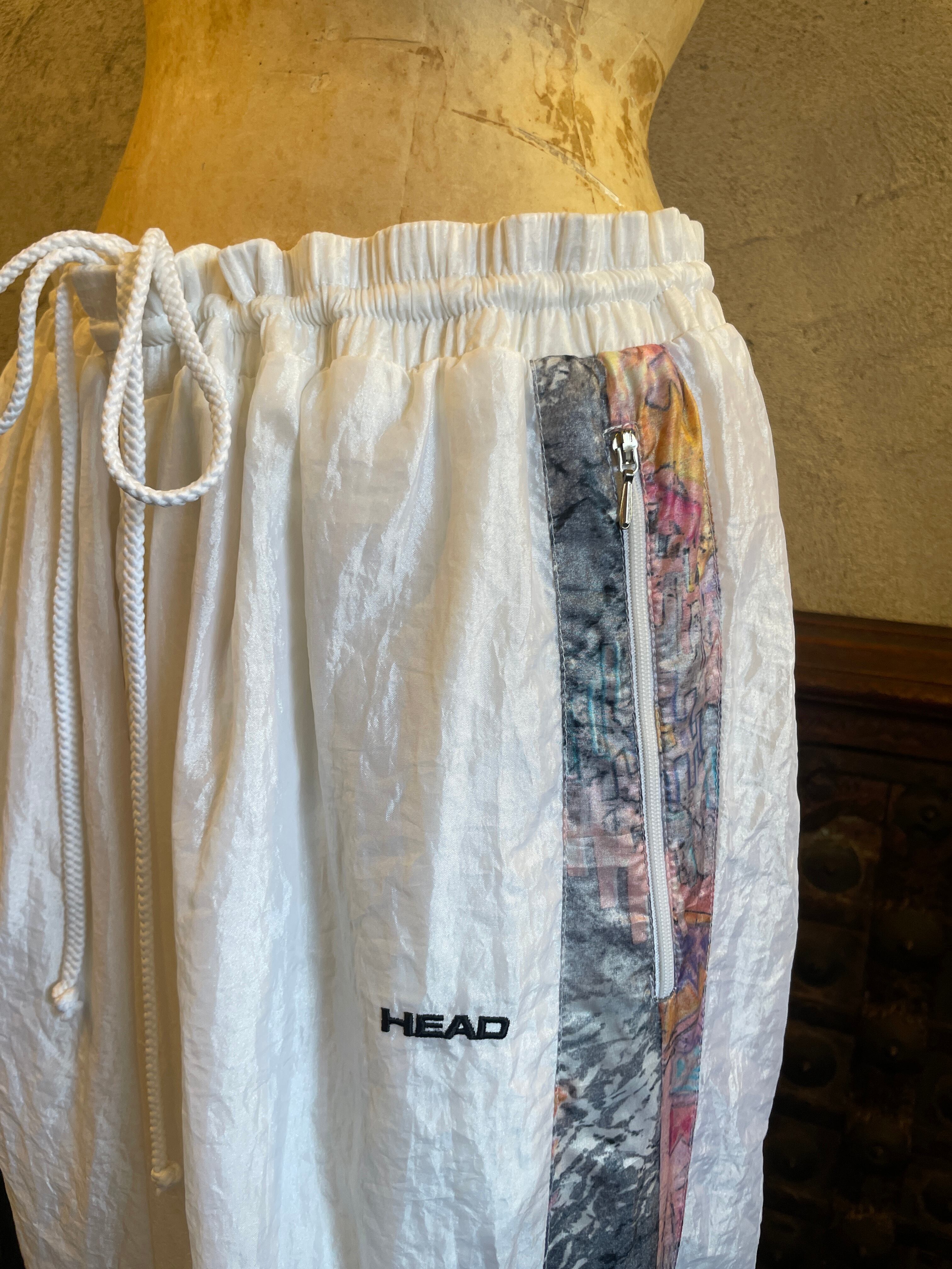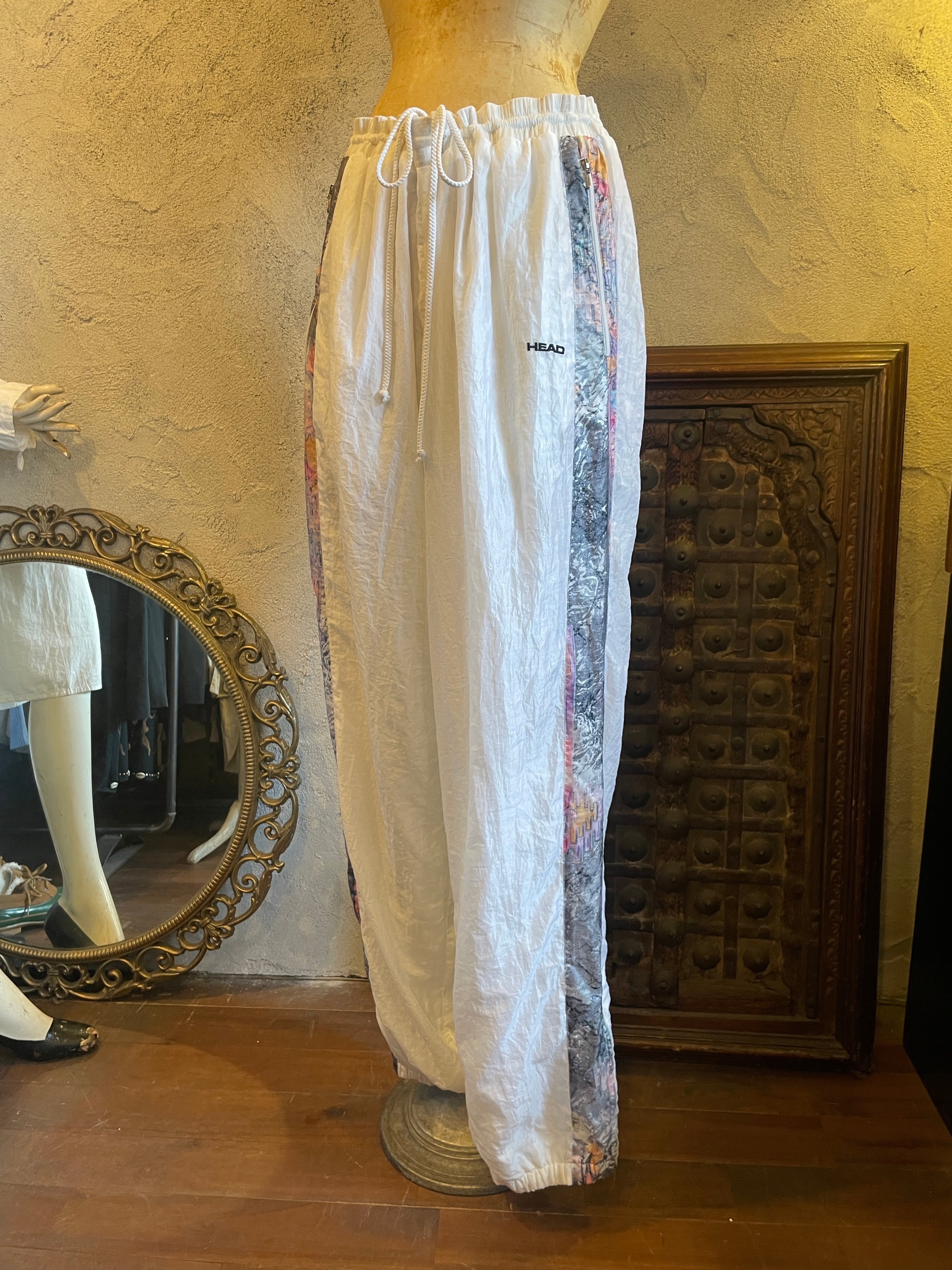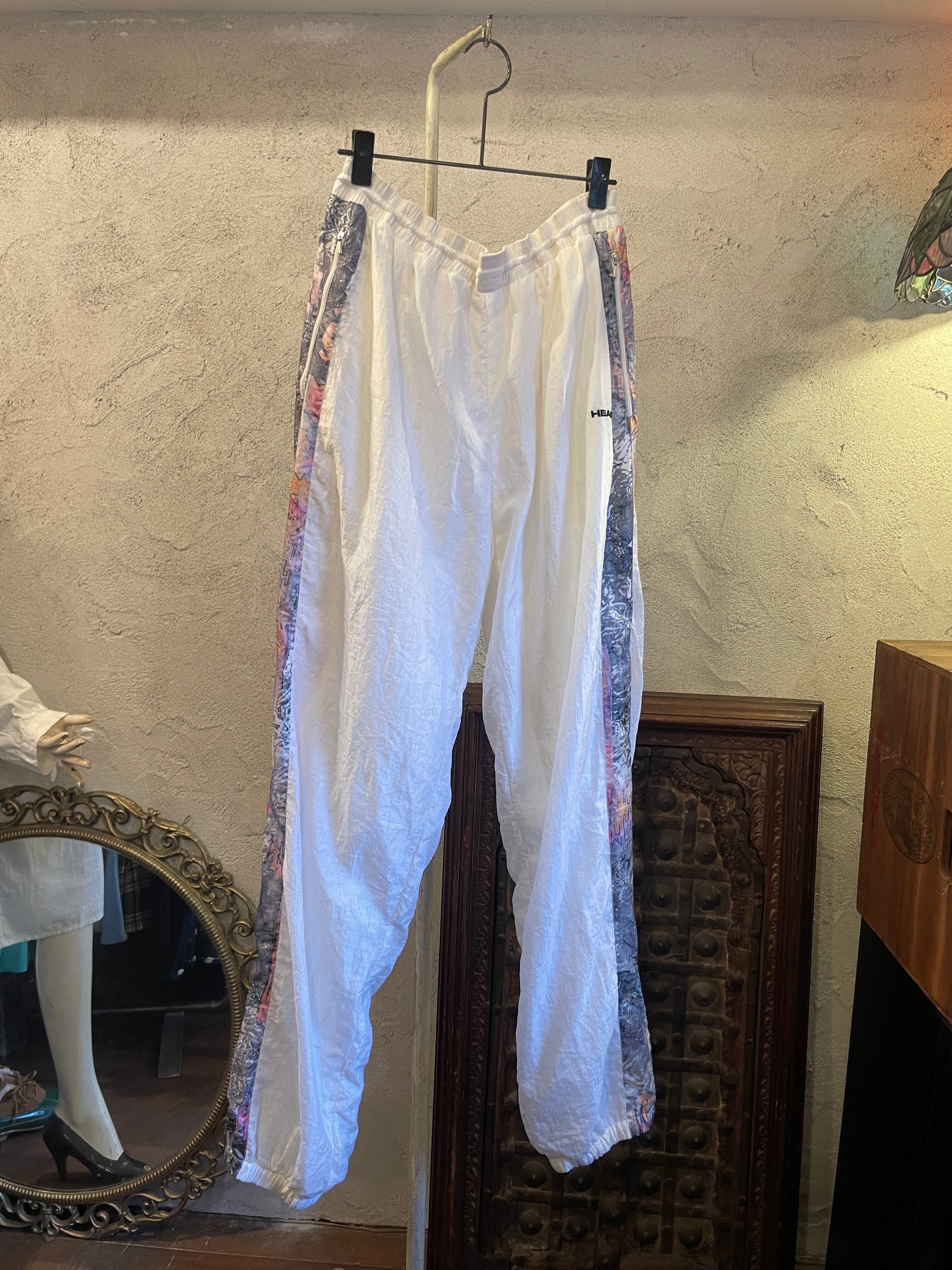 ホワイト サイド総柄 ウインドブレーカーパンツ ナイロンパンツ ボトムス ヴィンテージ 古着