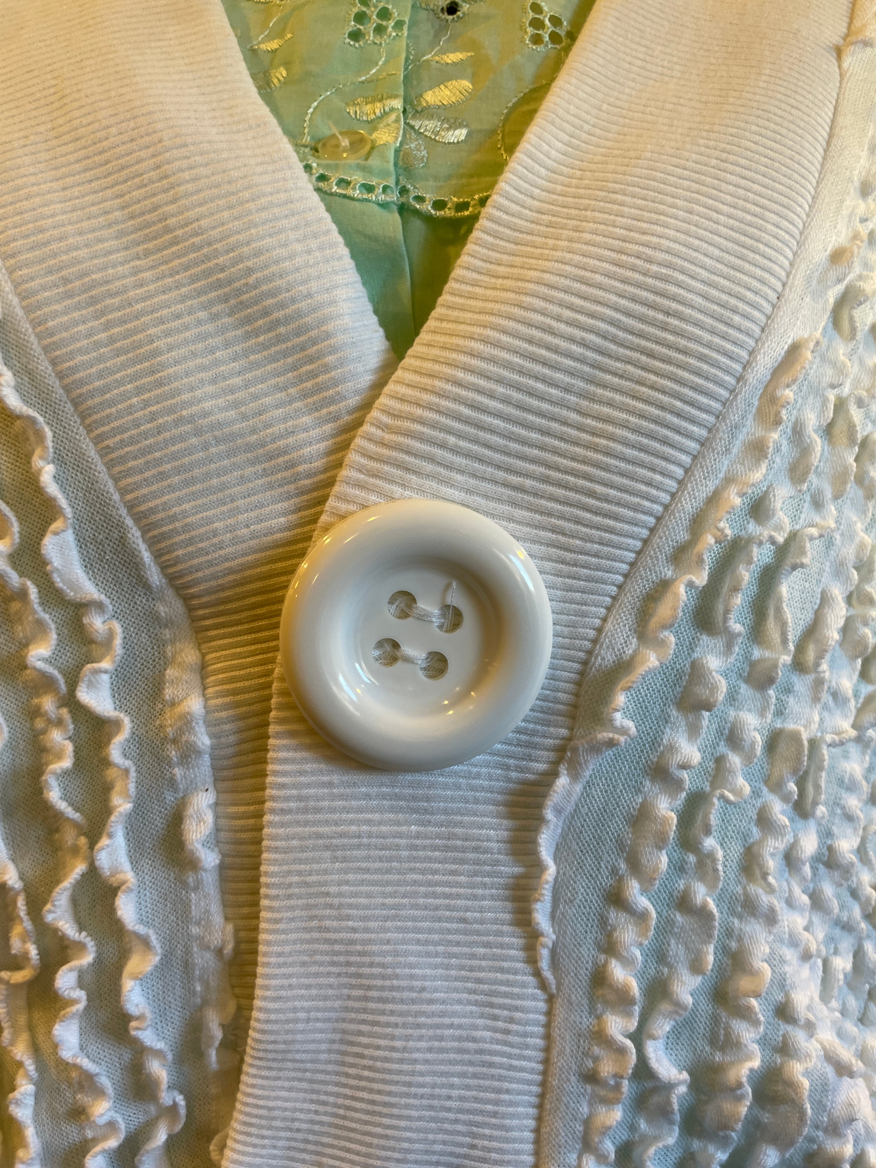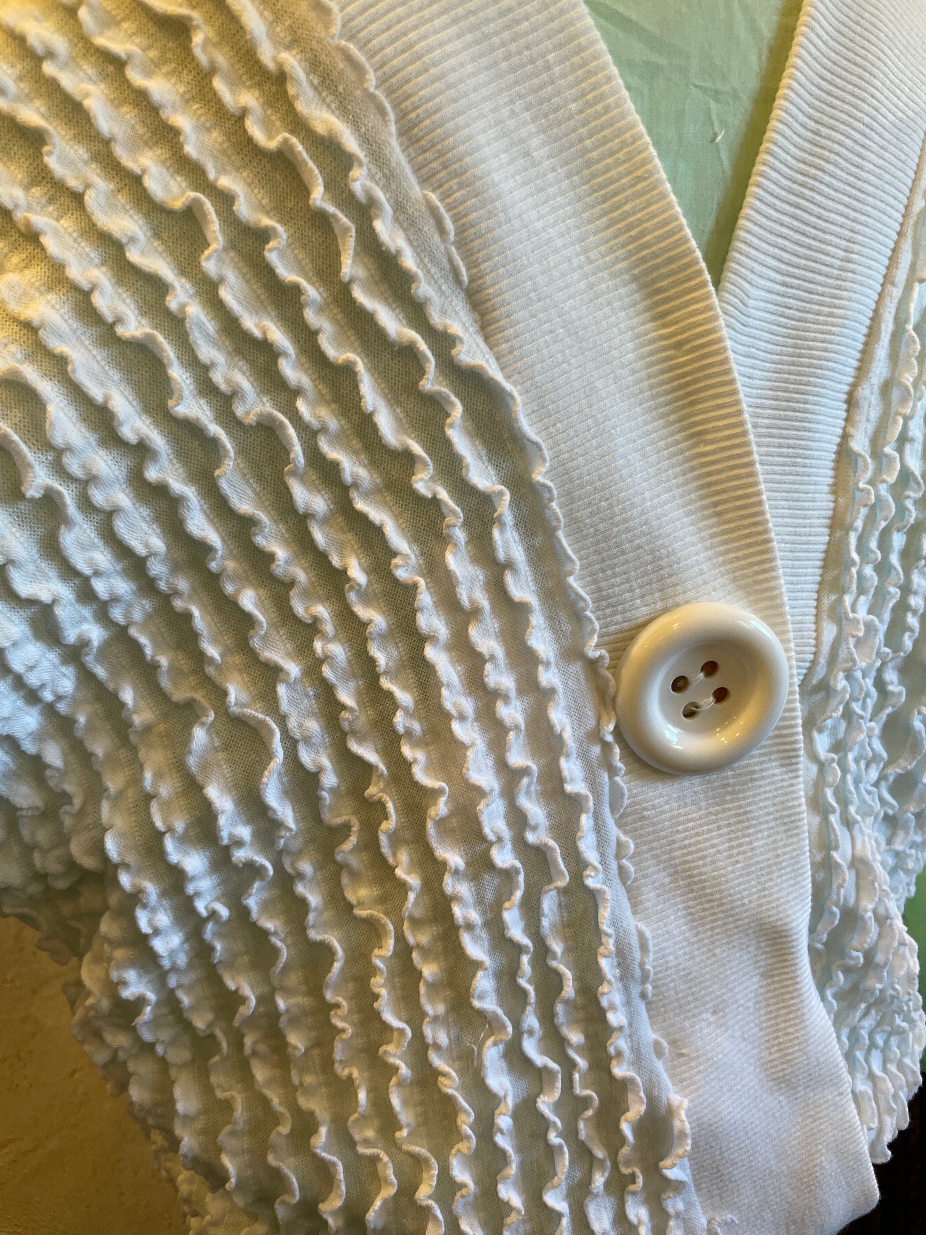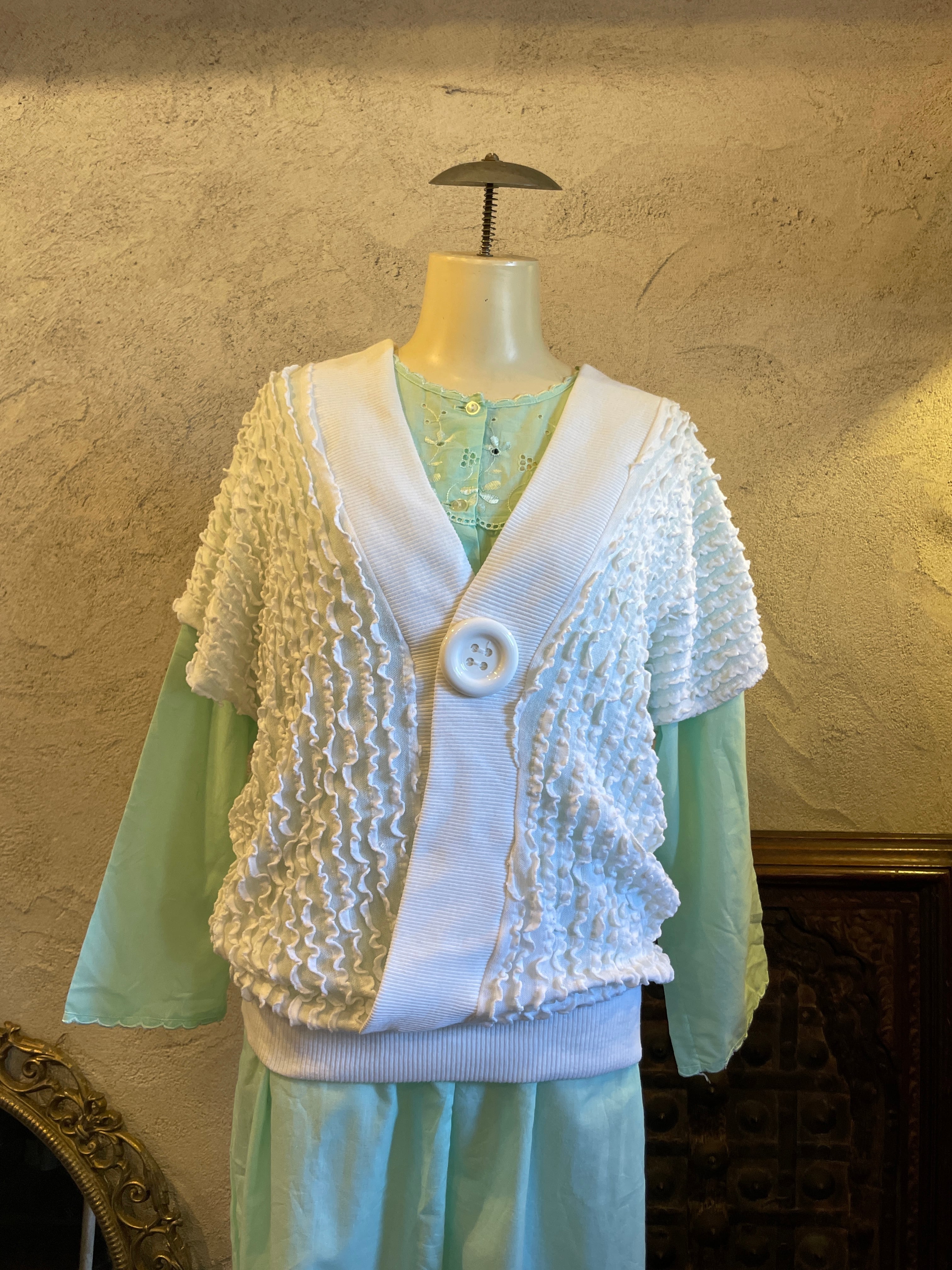 ビッグボタン レース ホワイトトップス ジャージ ヴィンテージ 古着