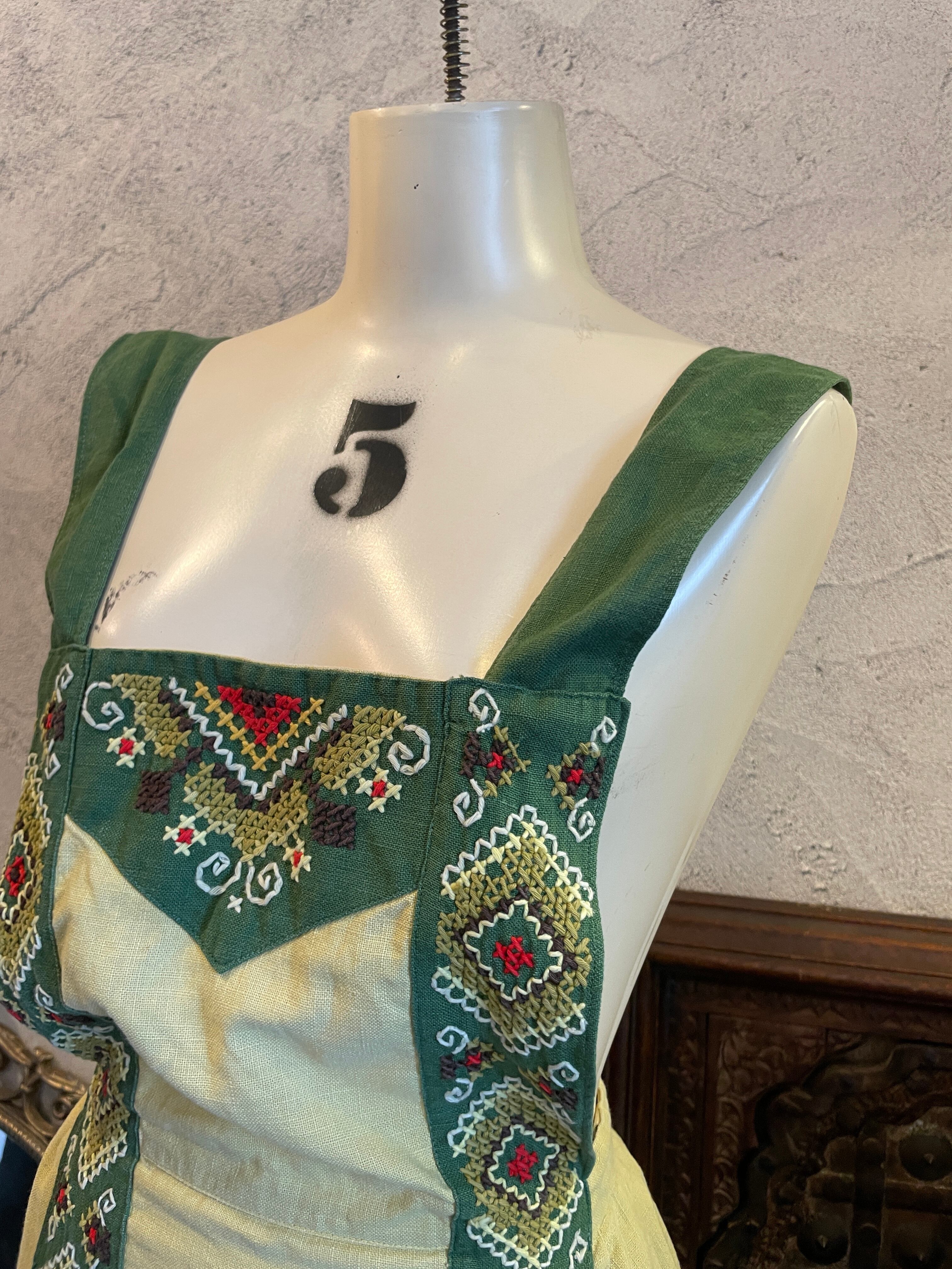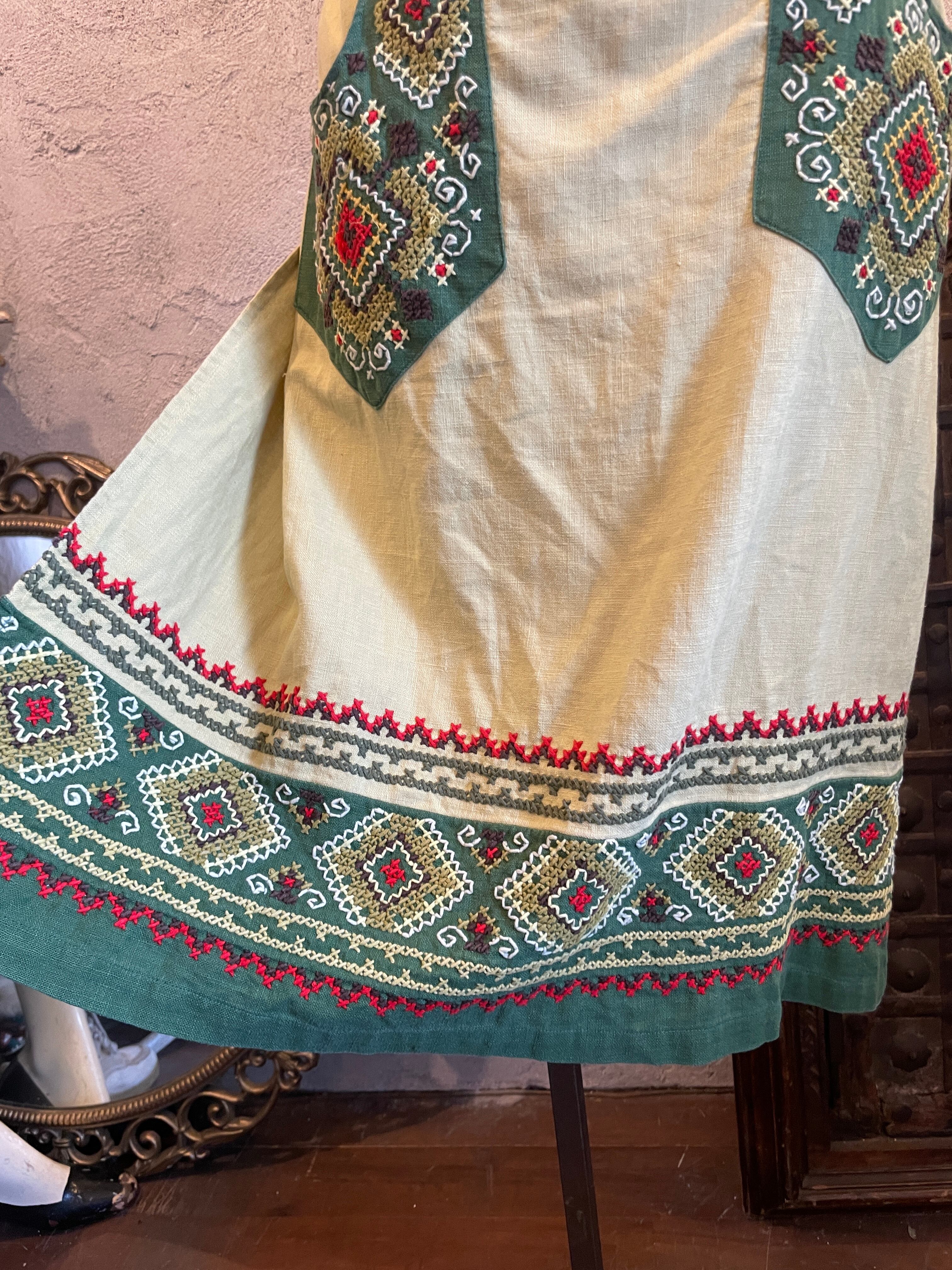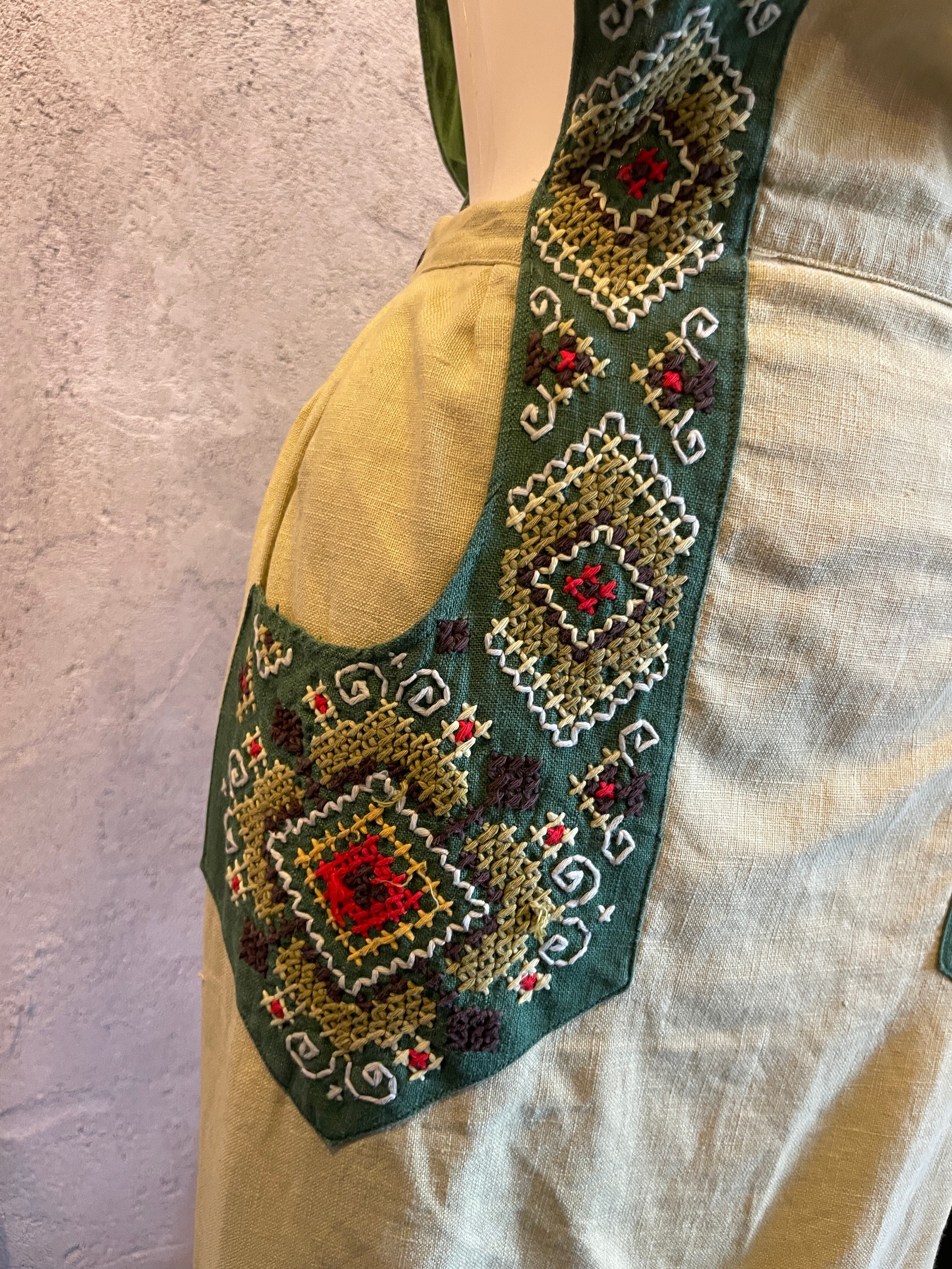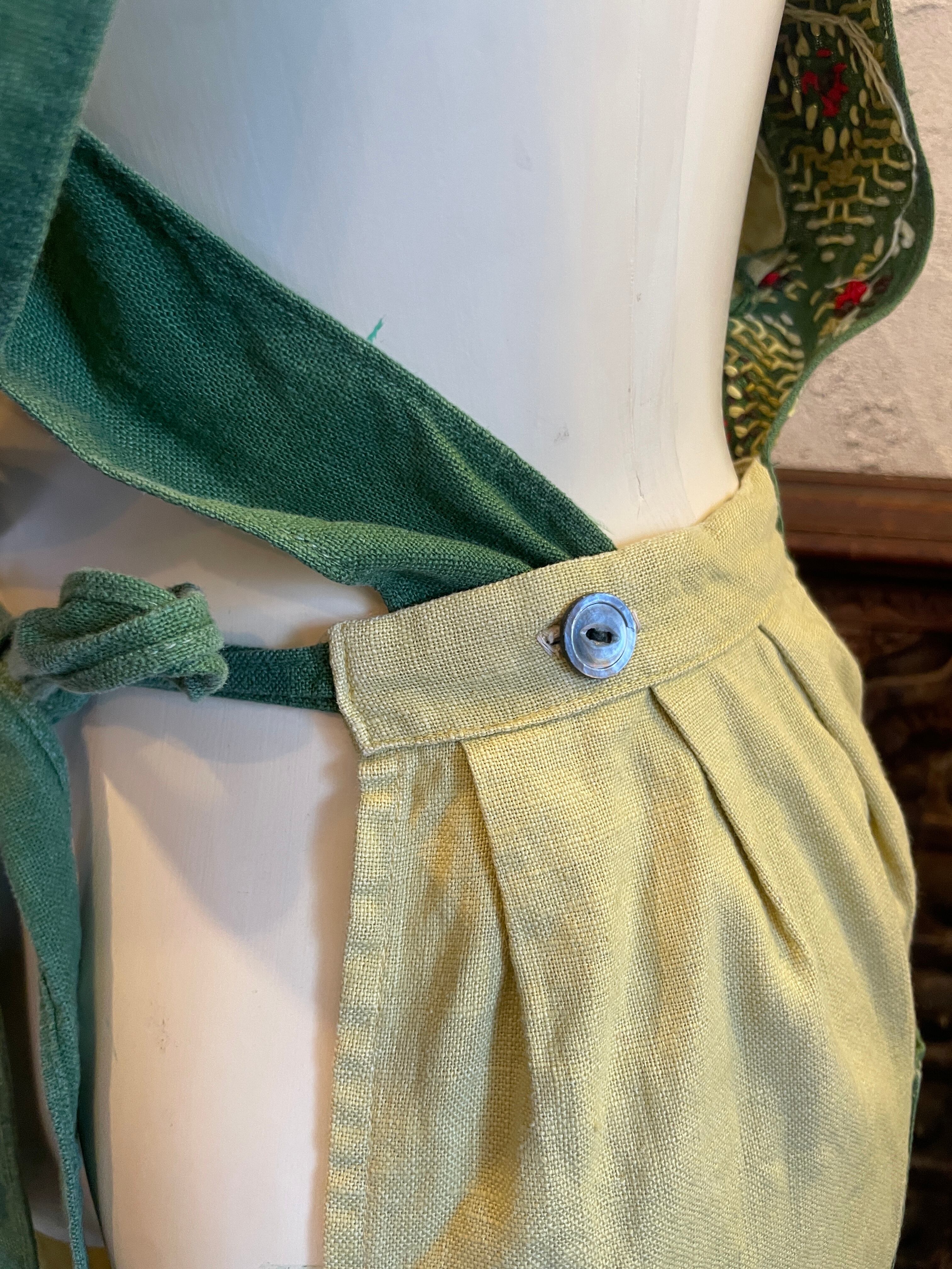 グリーン 刺繍 ステッチ エプロン ヴィンテージ 古着