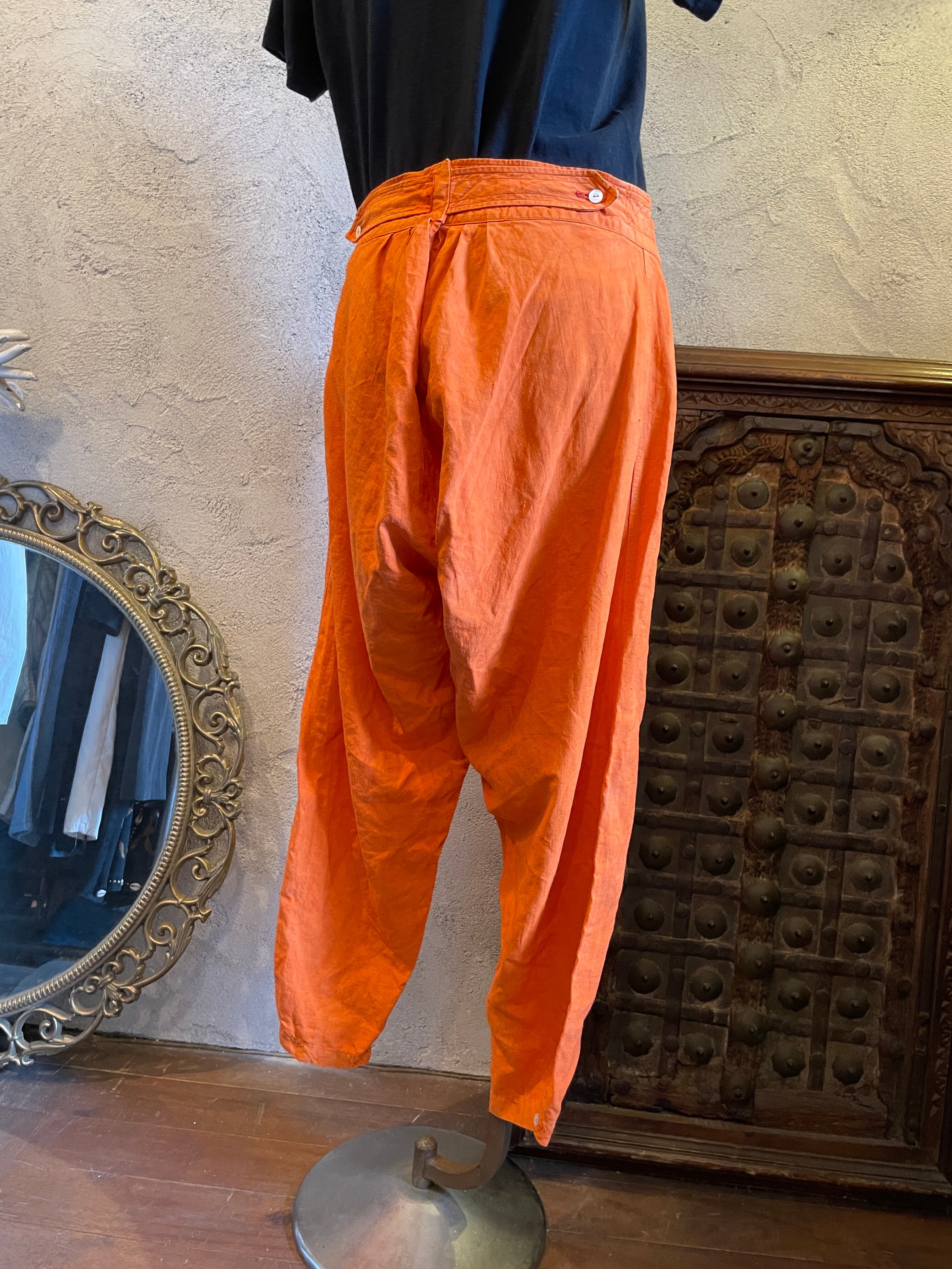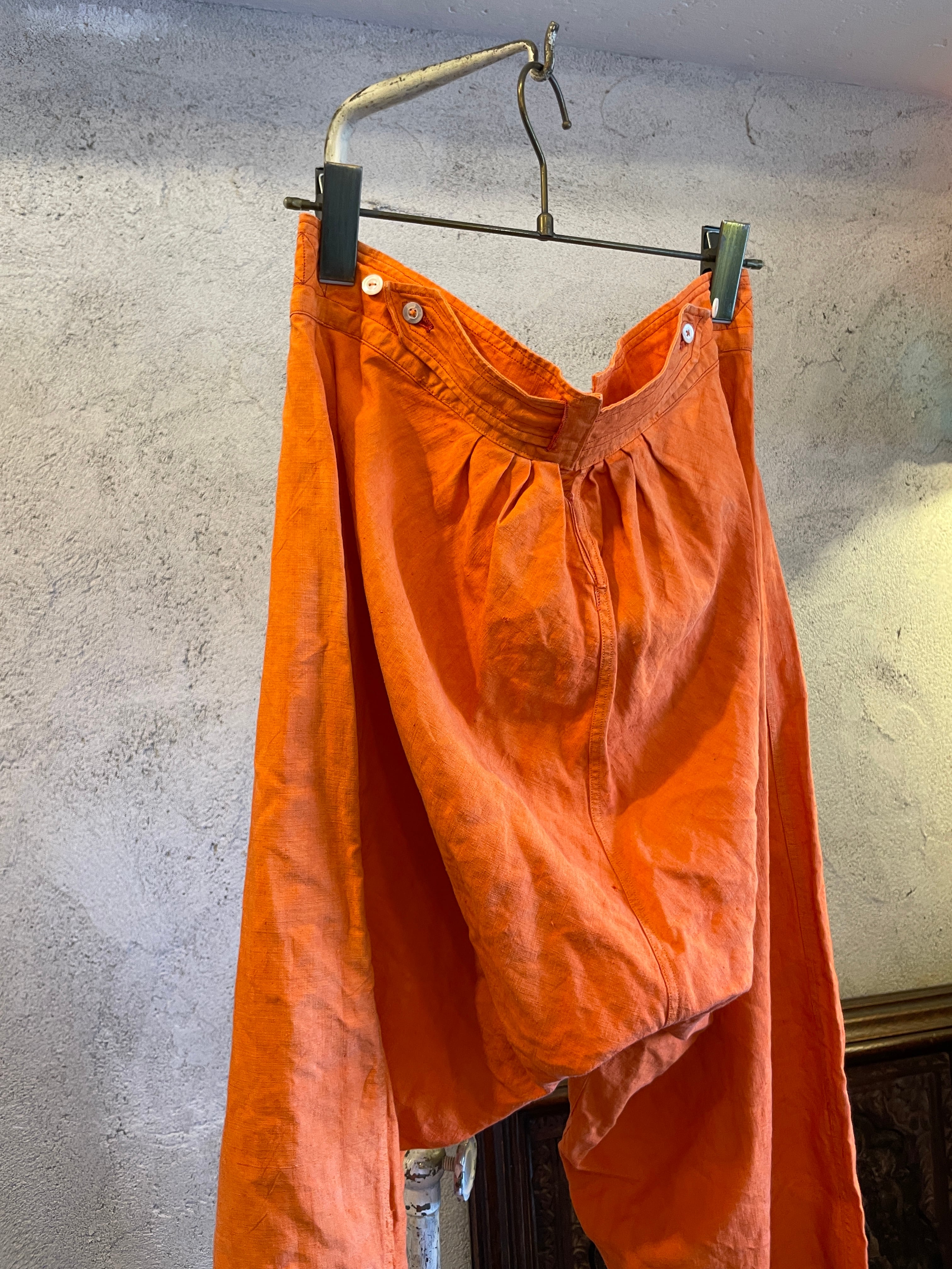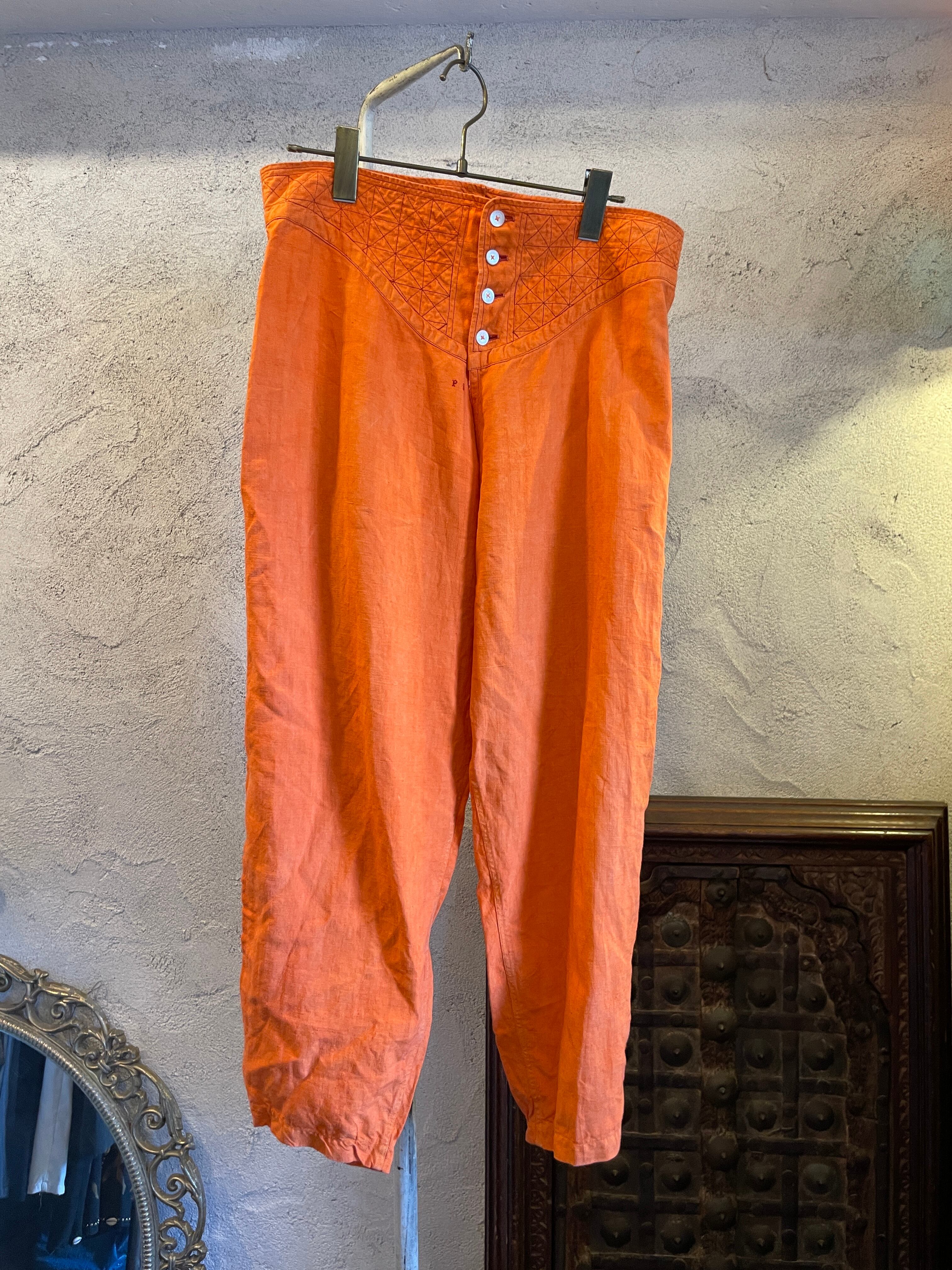 リネン 刺繍 オレンジ パンツ ボトムス ヴィンテージ 古着