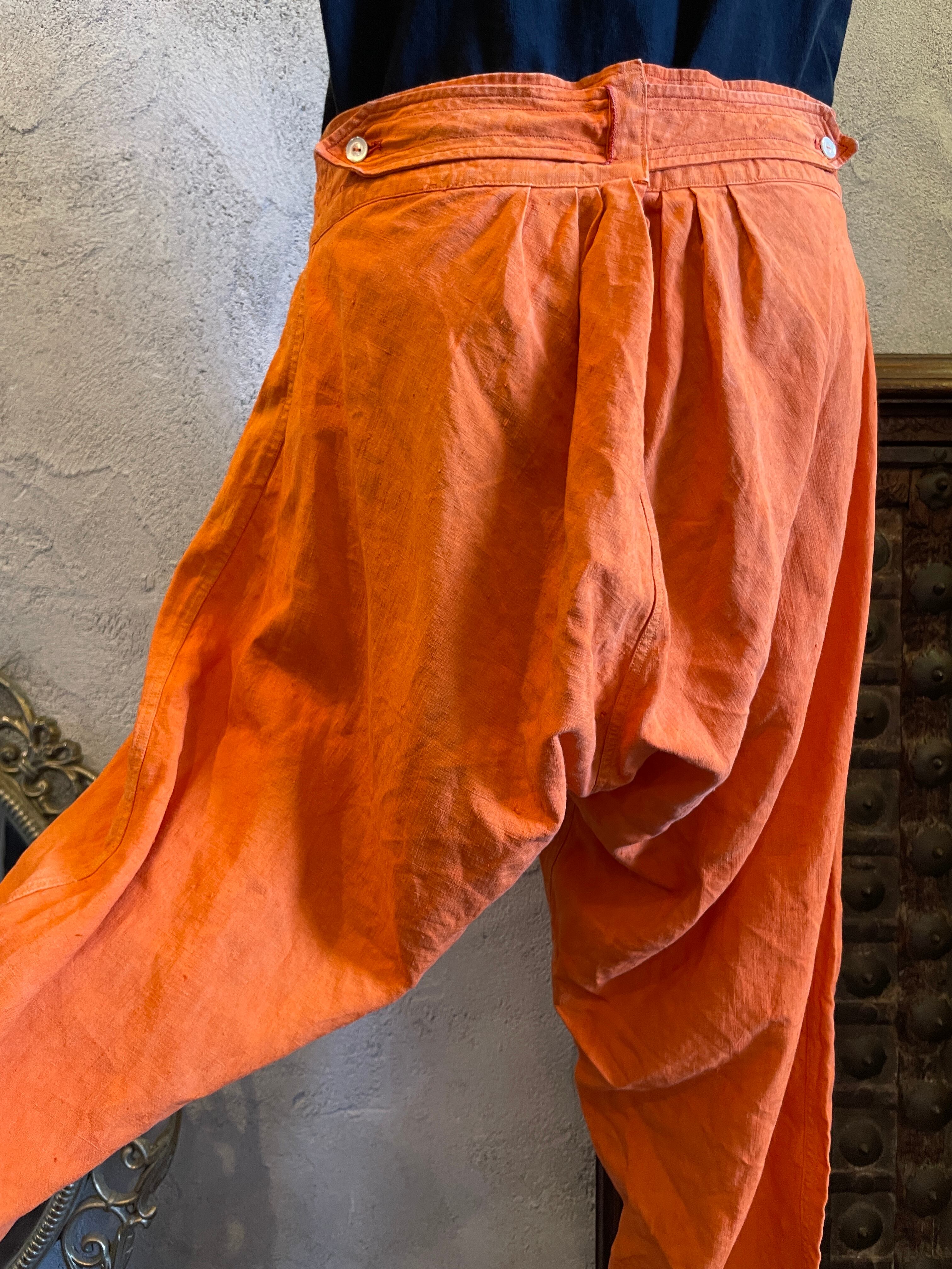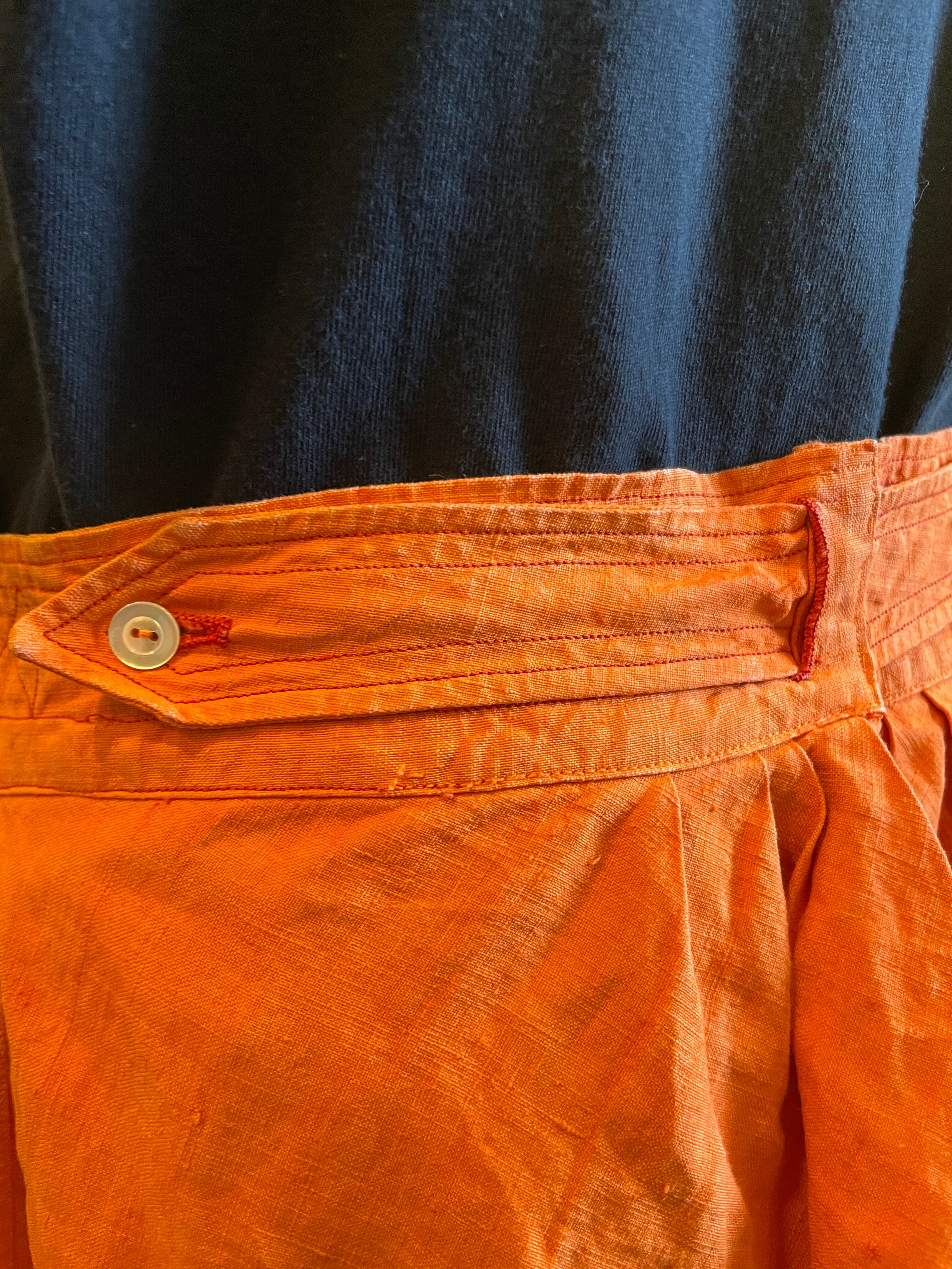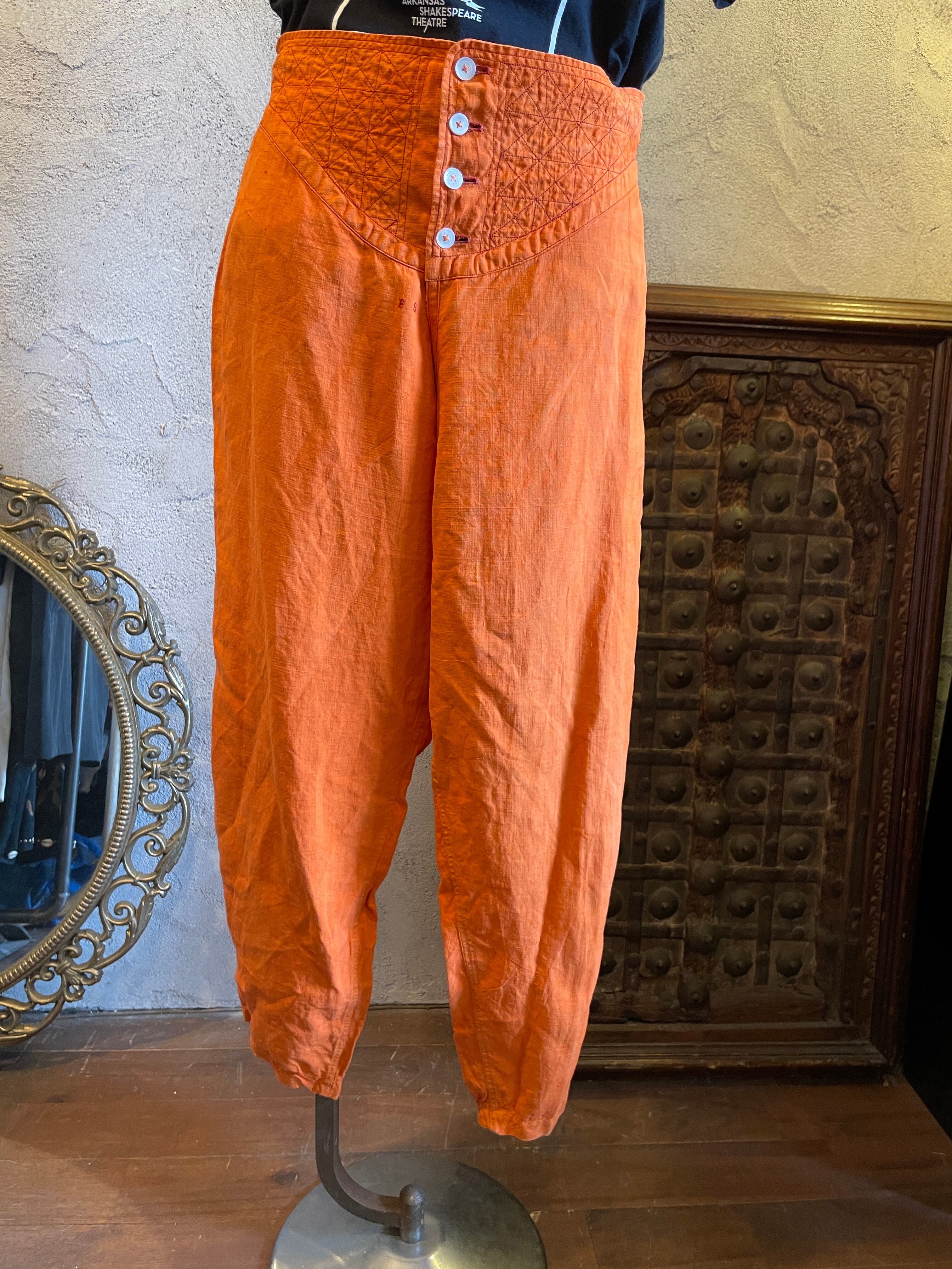 リネン 刺繍 オレンジ パンツ ボトムス ヴィンテージ 古着