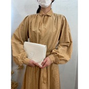 フレアプリーツワンピース ボリューム袖 ドルマンスリーブ フレアスカート ベージュ ヴィンテージ 古着