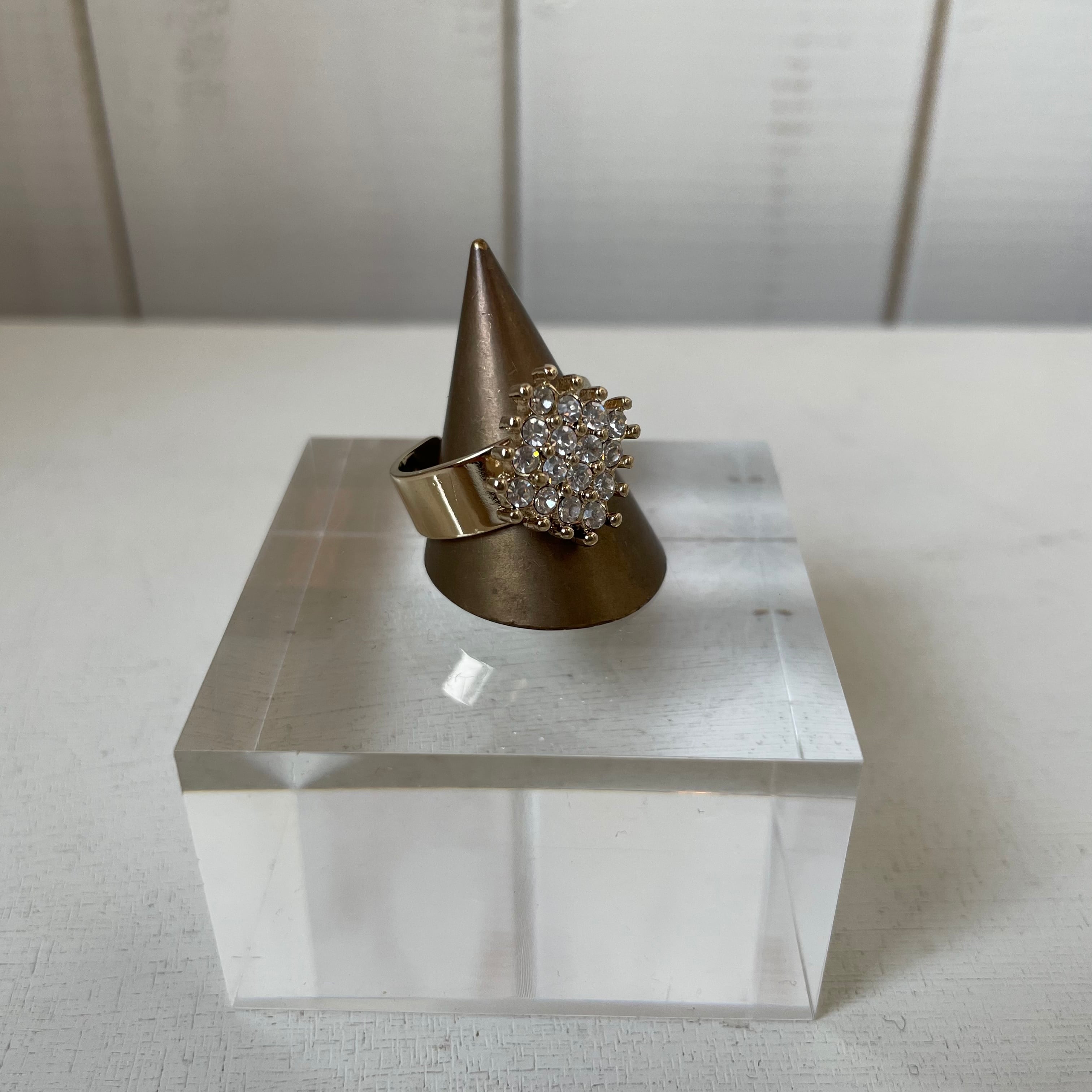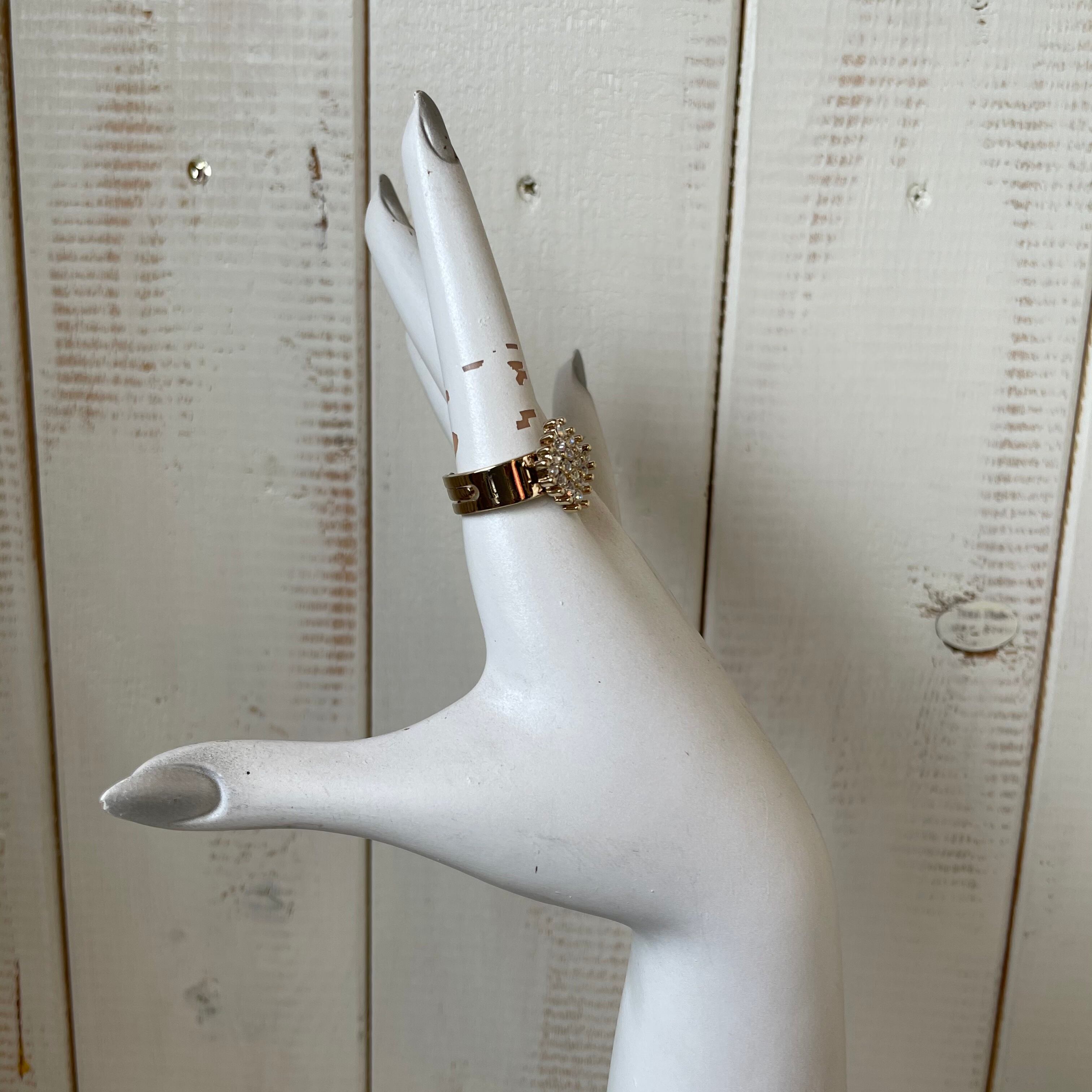 リング 指輪 ラインストーン フリーサイズ ゴールド色 ヴィンテージ デッドストック