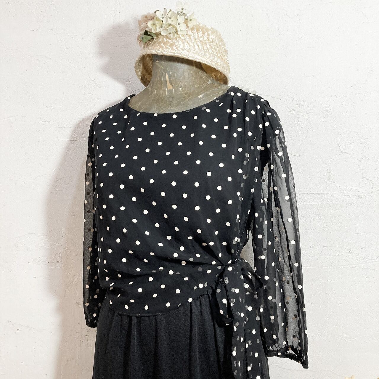 シースルー レイヤード ワンピース ドット リボン ブラック 黒 ヴィンテージ 古着