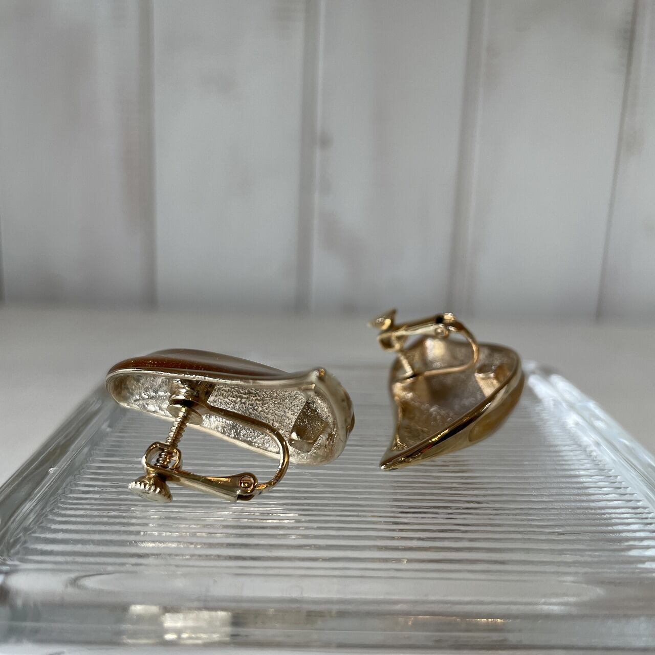 クリアイエロー×ベージュ マーブル イヤリング ヴィンテージ アクセサリー