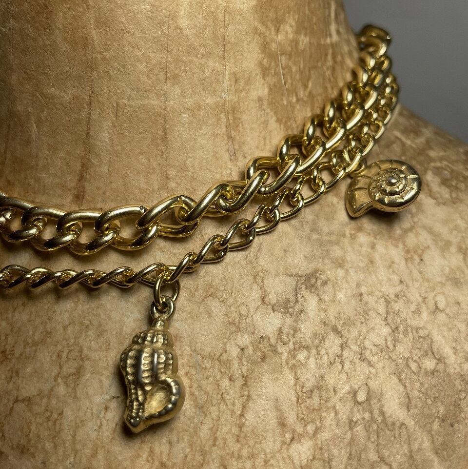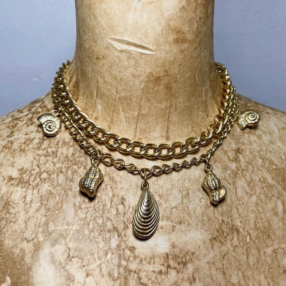 ゴールド マリンモチーフ チェーン2連ネックレス ヴィンテージ アクセサリー