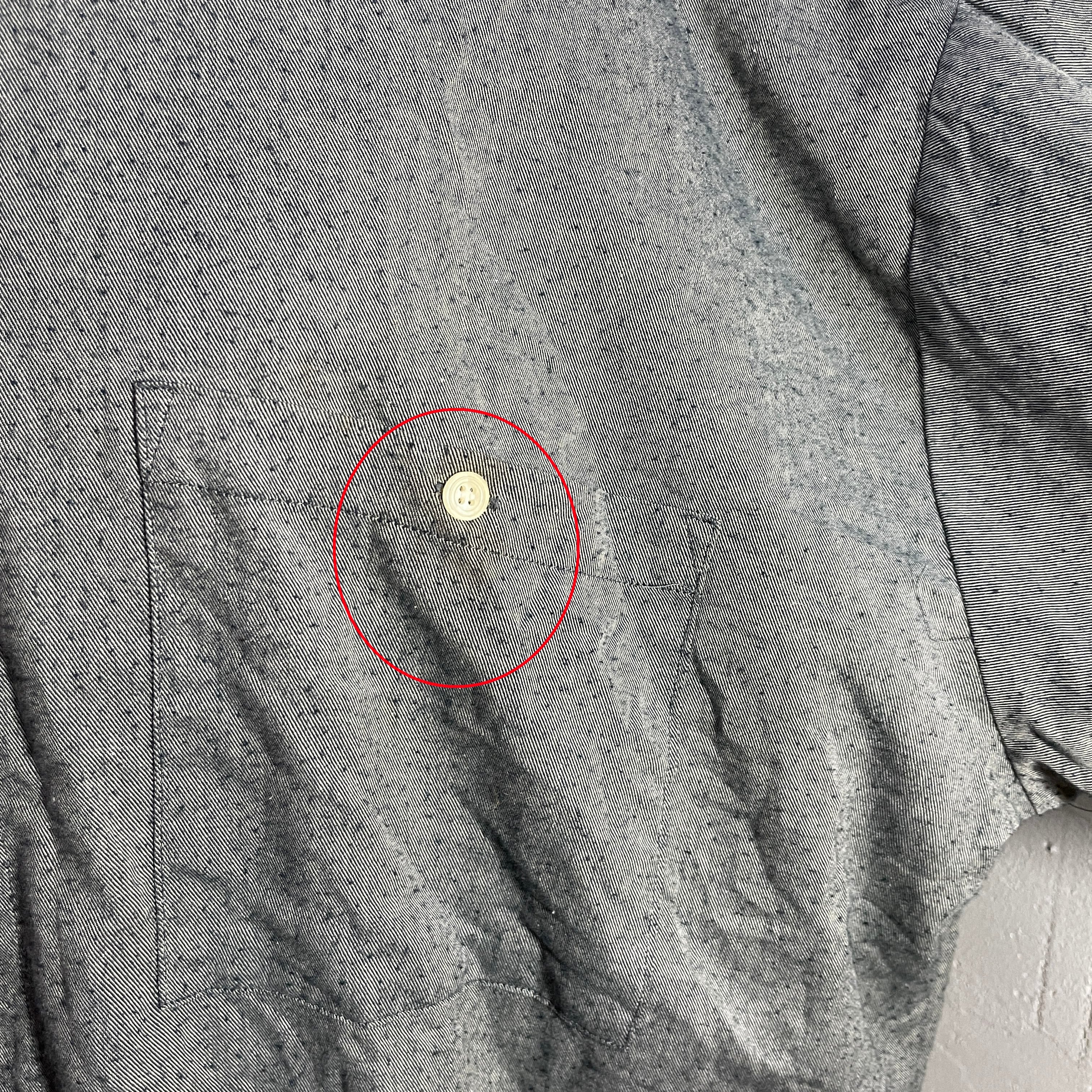 胸ポケットにシミ、襟周りにも汚れございます。