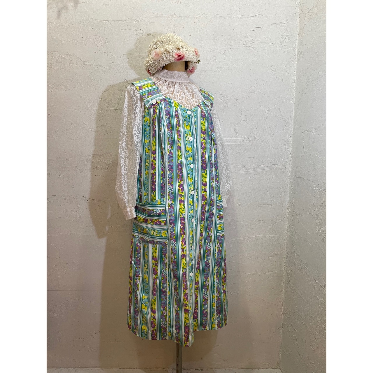 グリーンフラワーワンピース ノースリーブ ヴィンテージ 古着