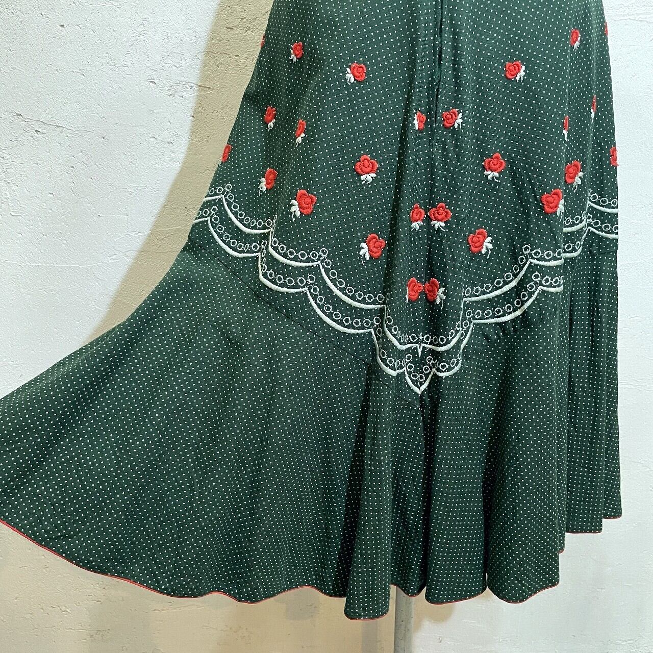 花刺繍 ロングスカート ピンドット ヴィンテージ 古着
