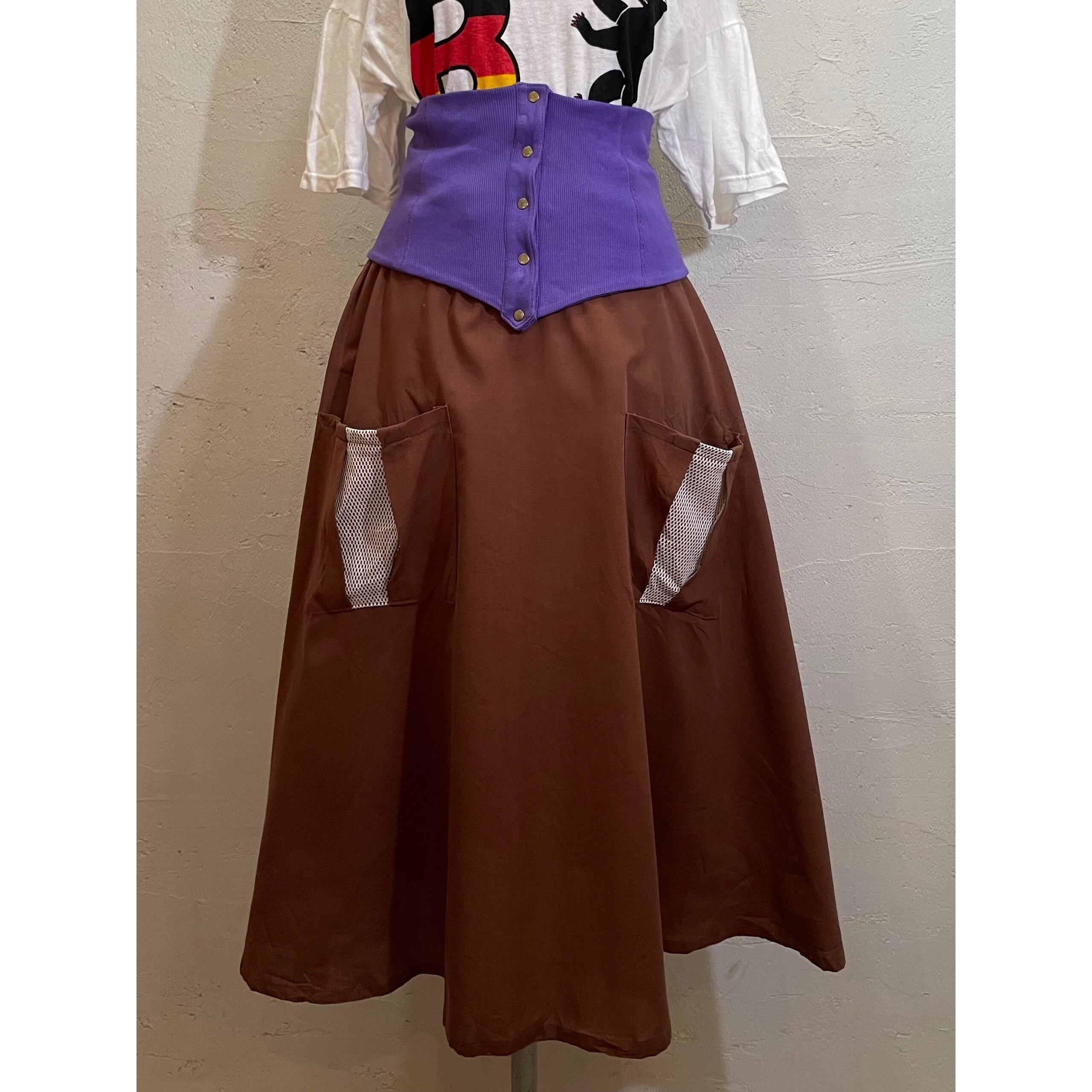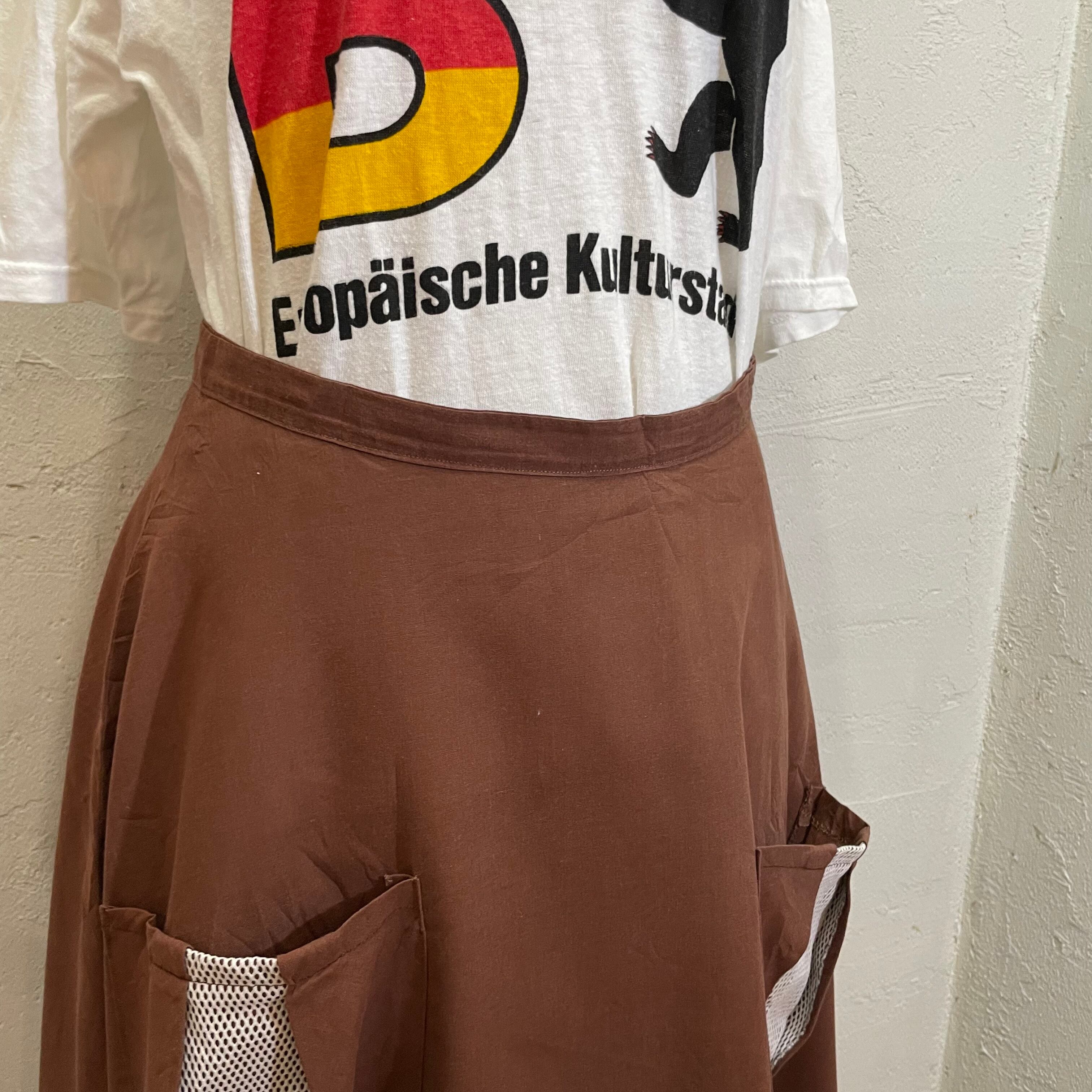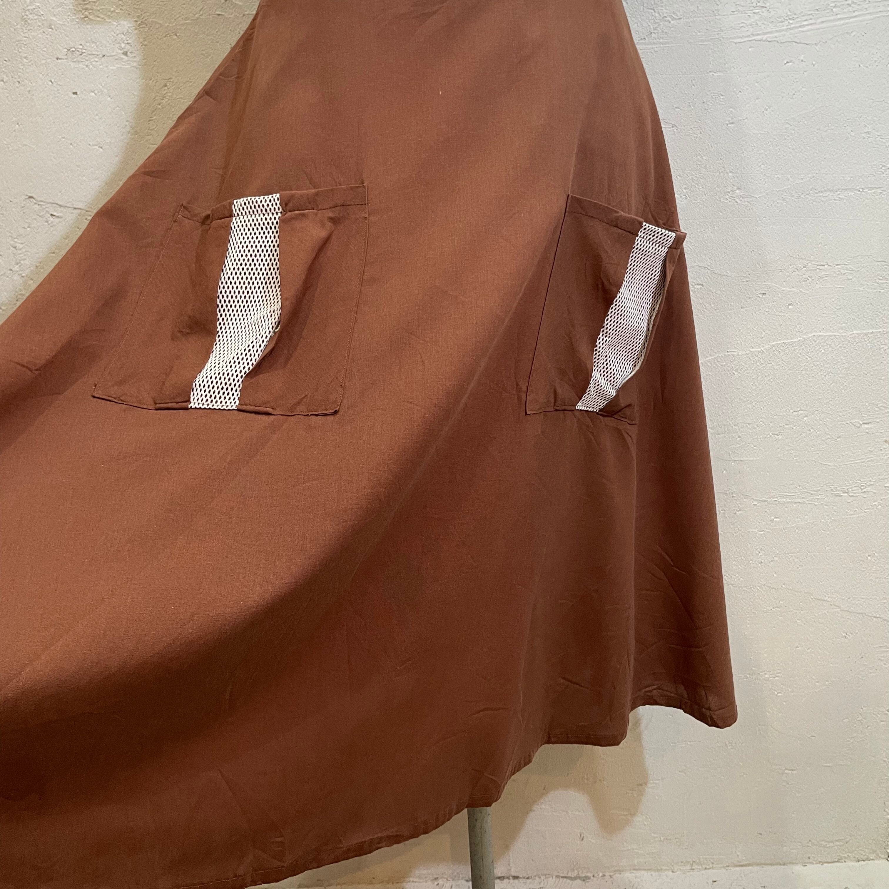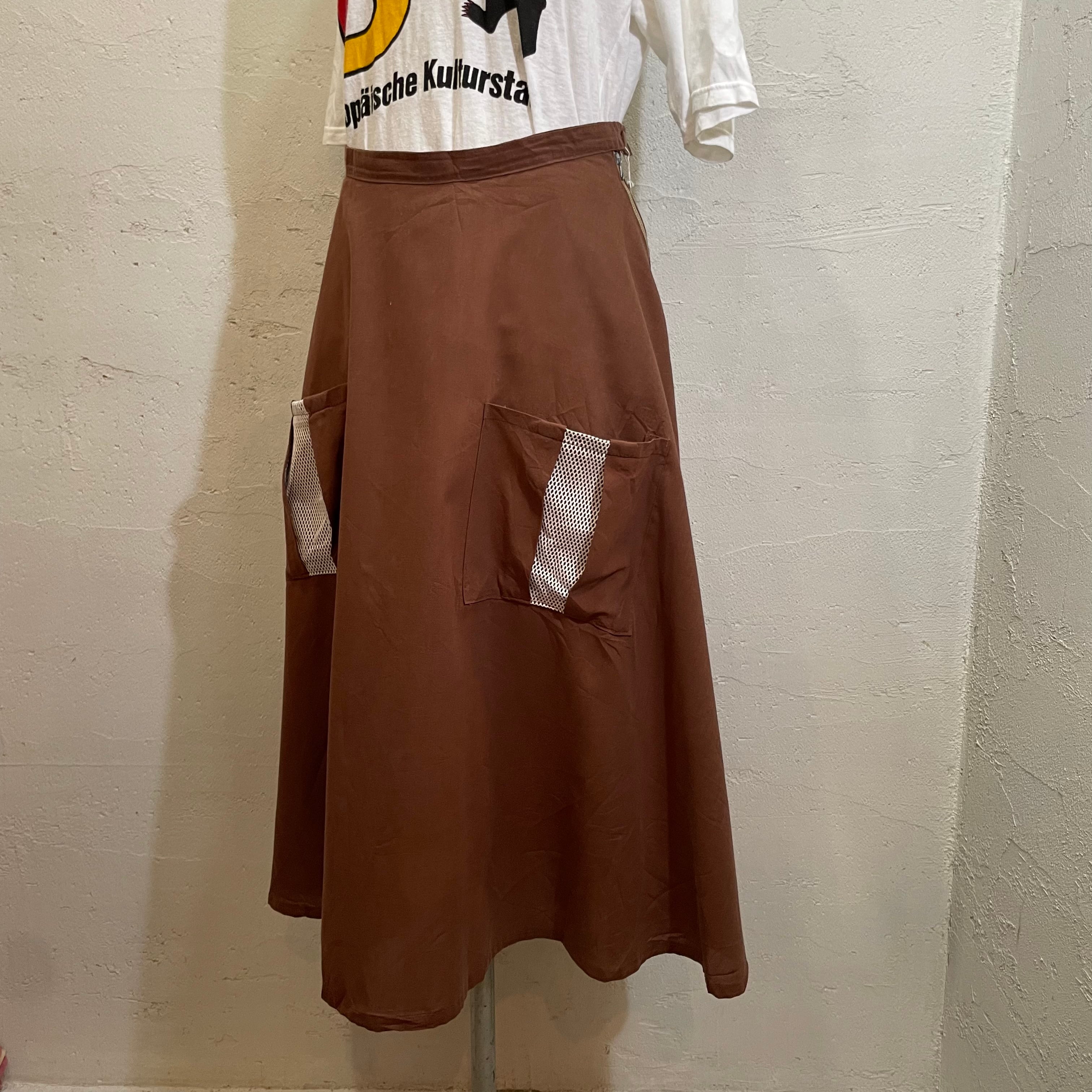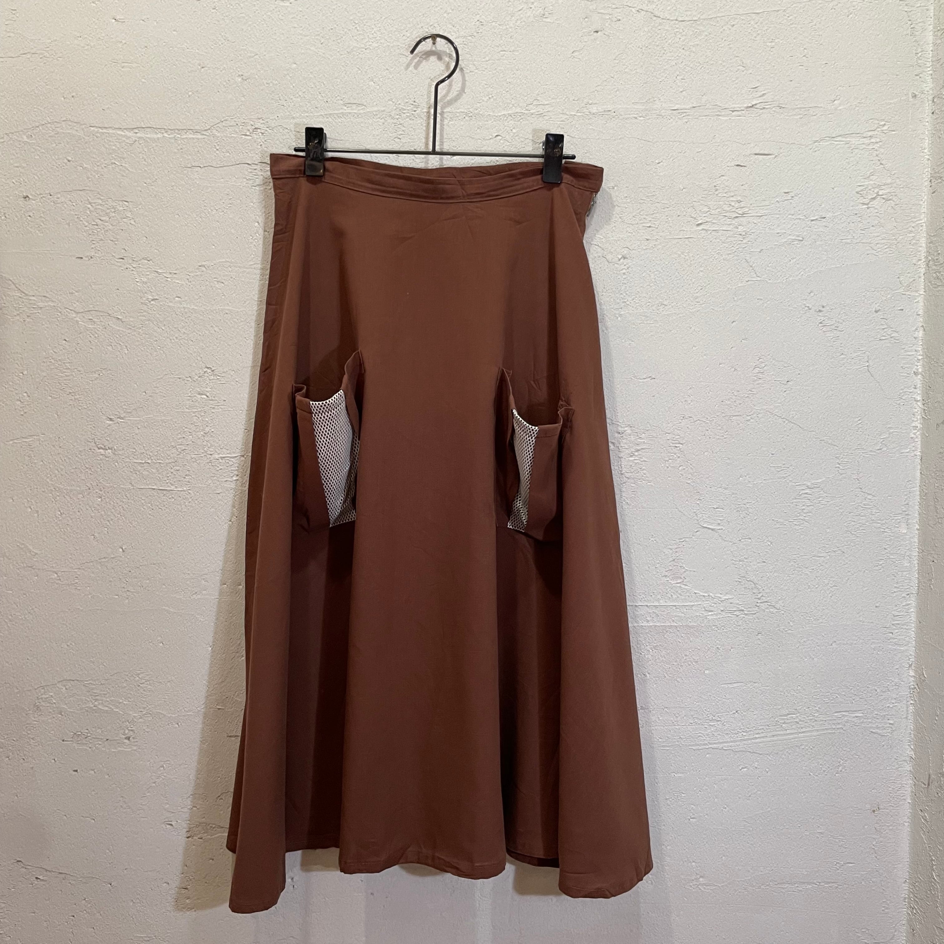 Aライン フレアスカート ポケットメッシュデザイン ブラウンヴィンテージ 古着