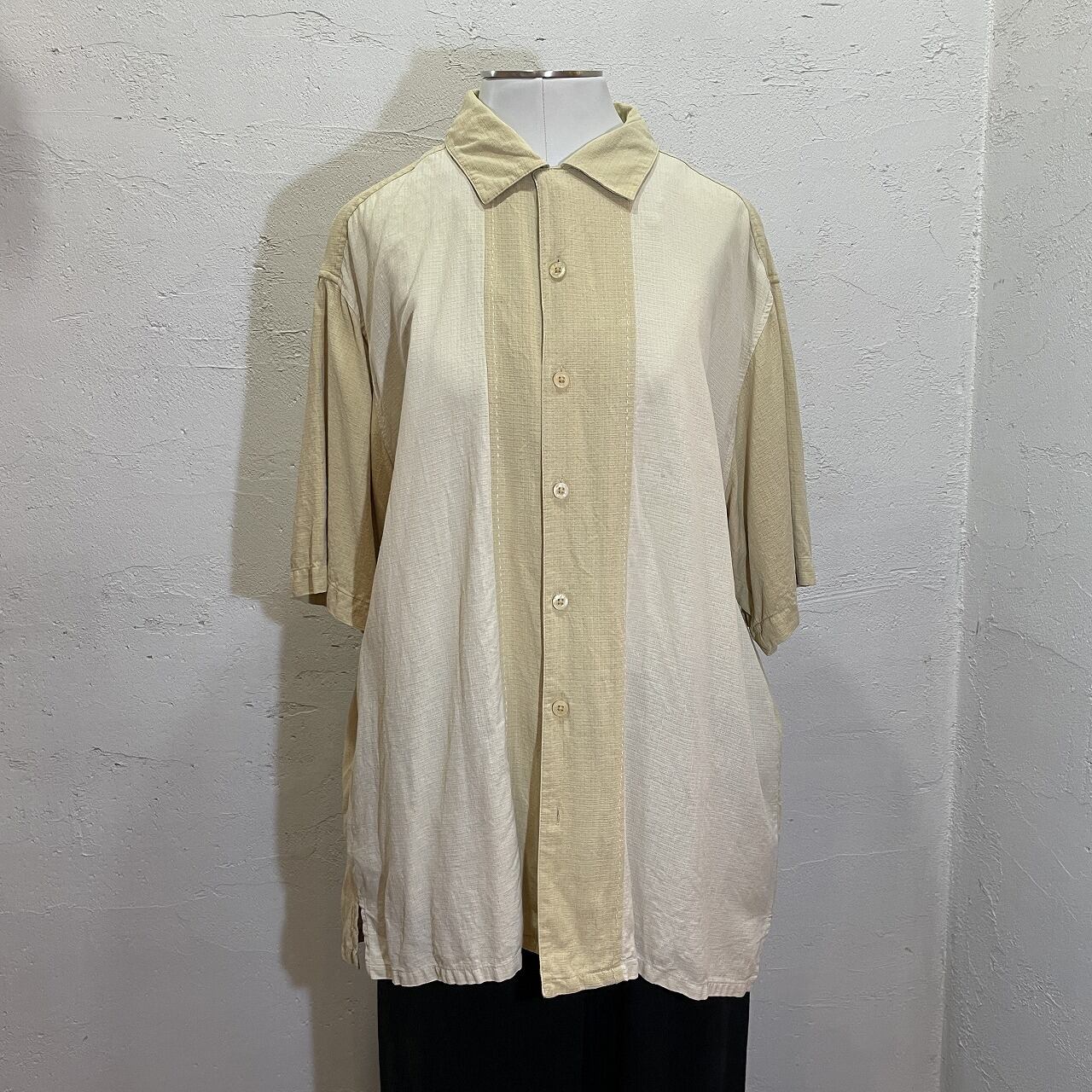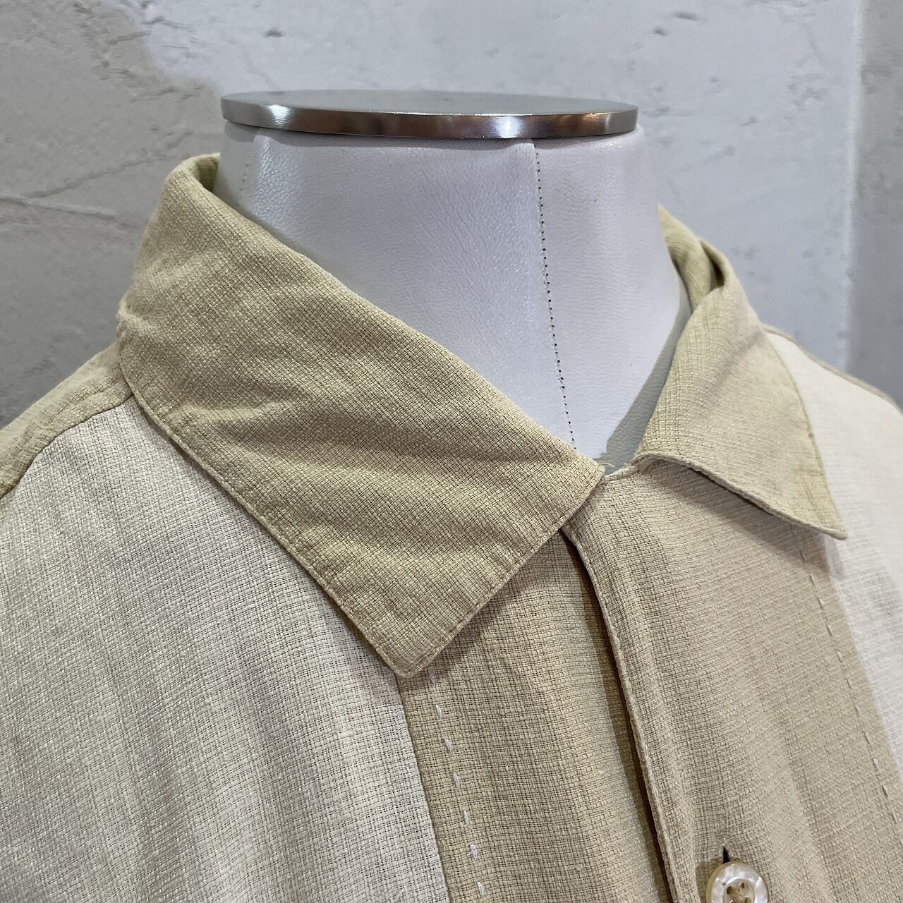 シルク 切替シャツ ベージュ メンズ ヴィンテージ 古着