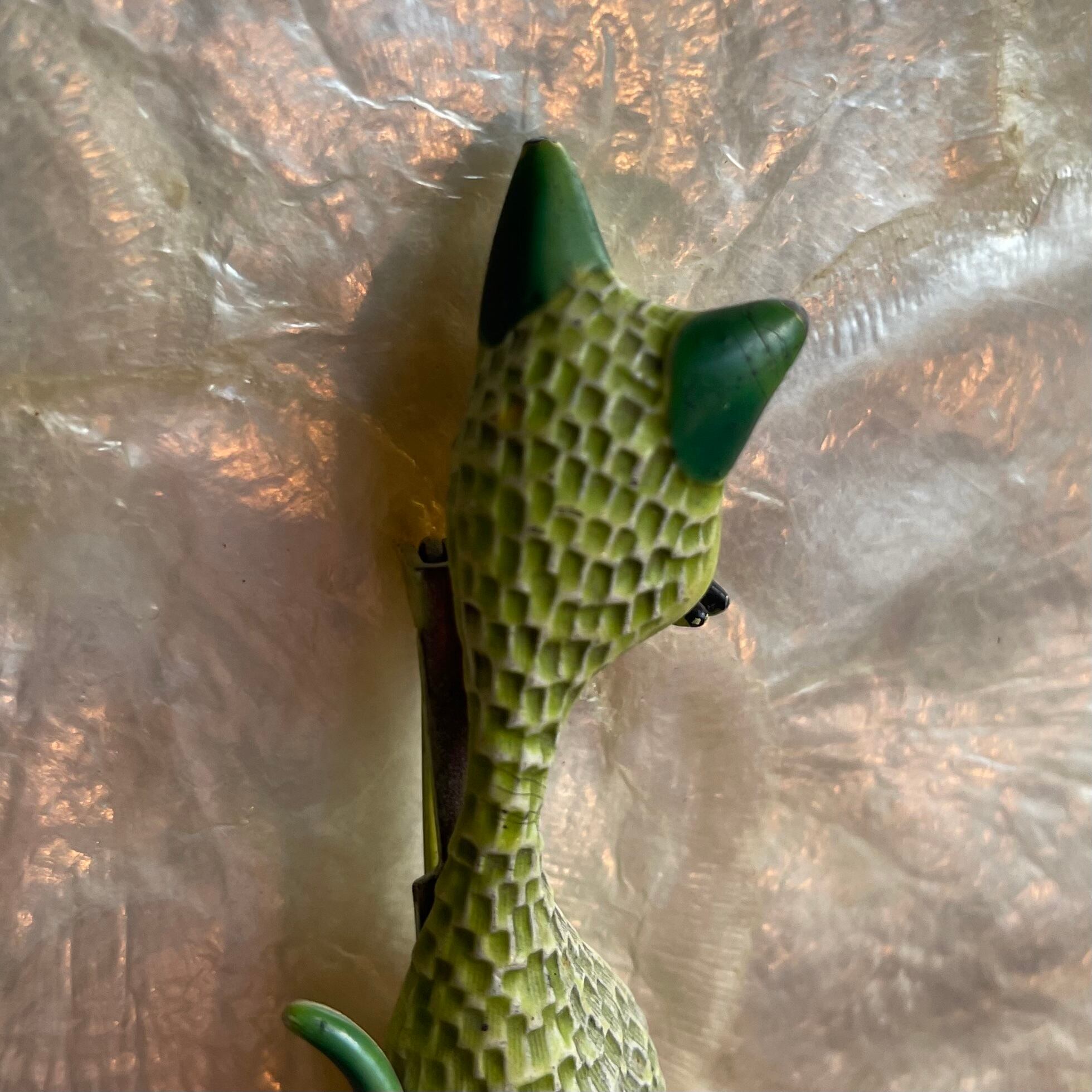 横顔ネコブローチ グリーン猫 キャット ヴィンテージ アクセサリー