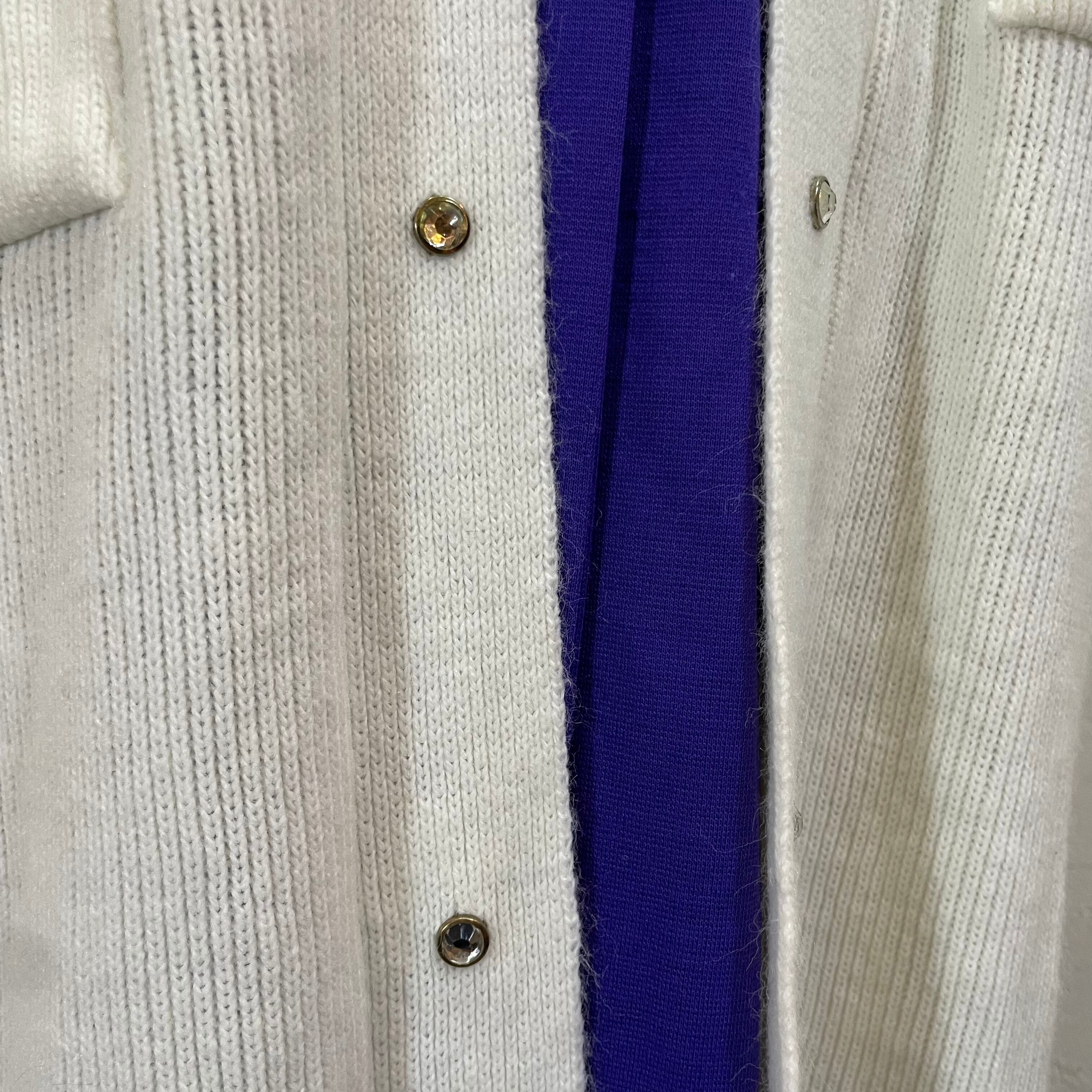 ニットロングカーディガン ビーズ刺繍 ホワイト アウター 羽織 ヴィンテージ 古着