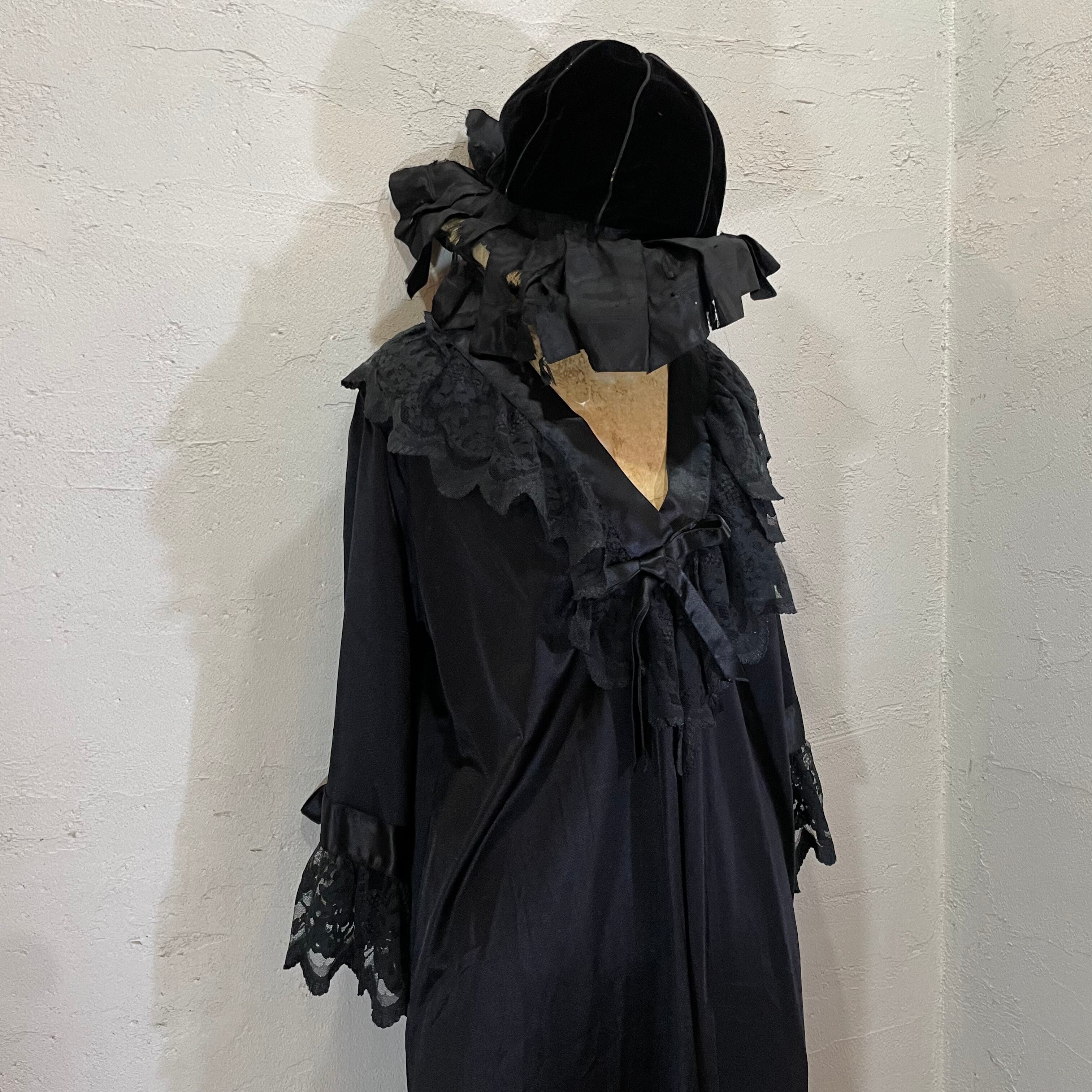 ブラック ガウン フリル リボン 羽織 ヴィンテージ 古着